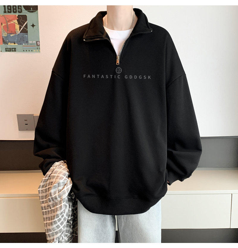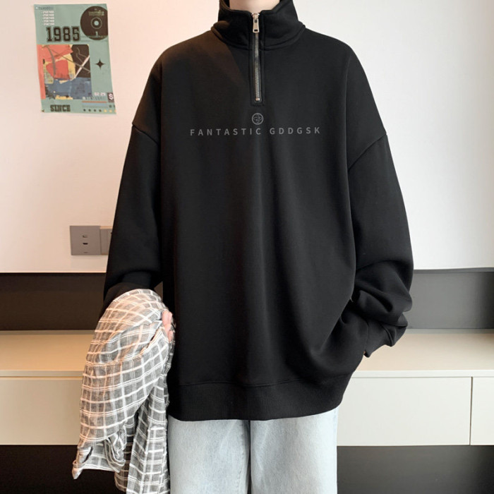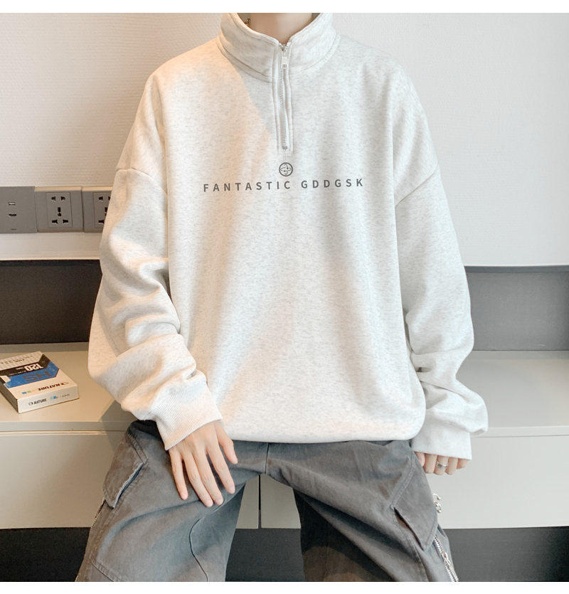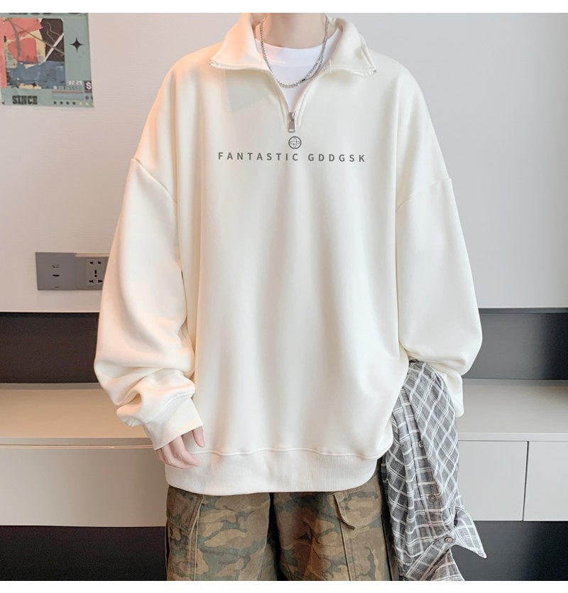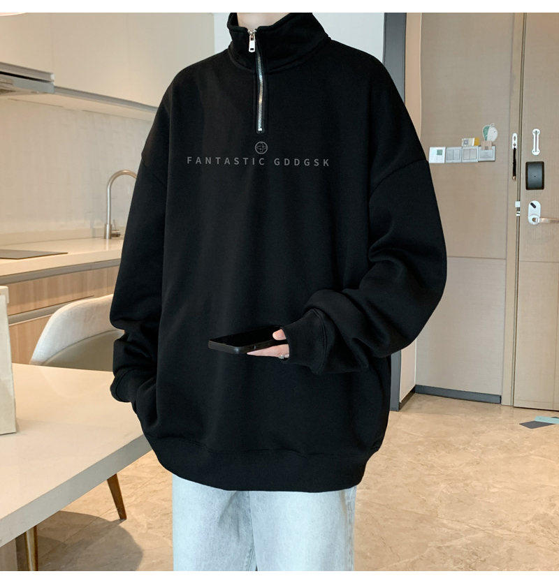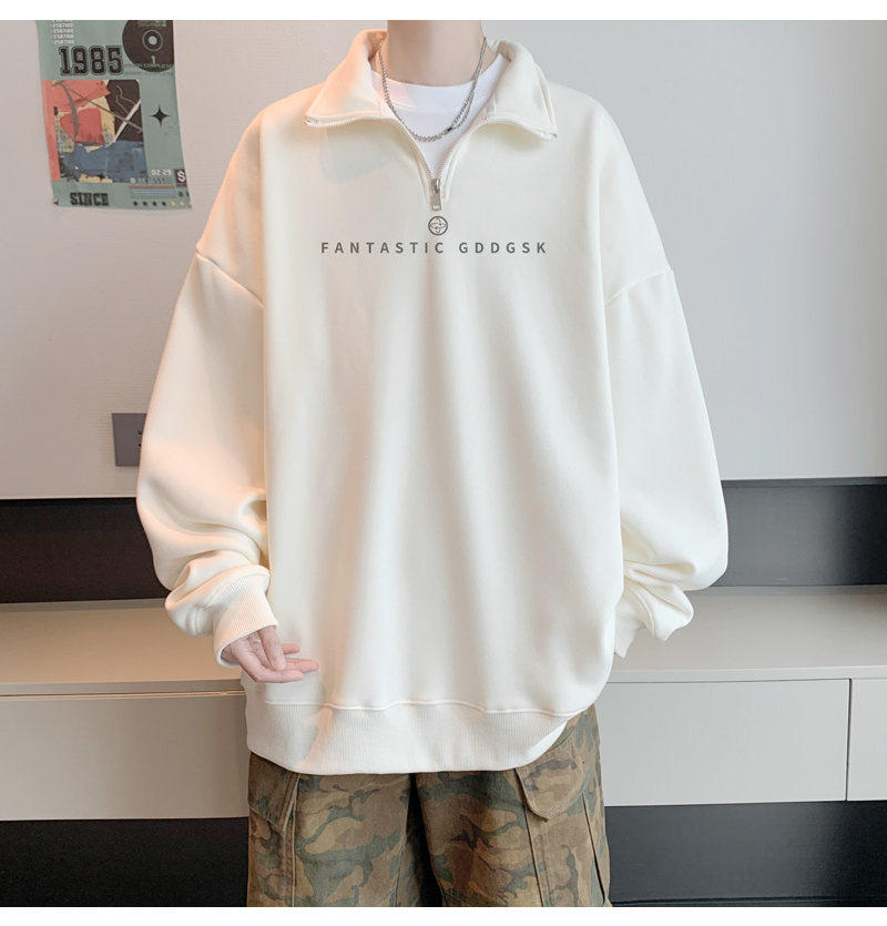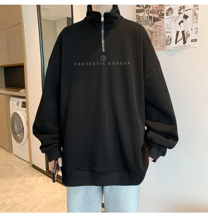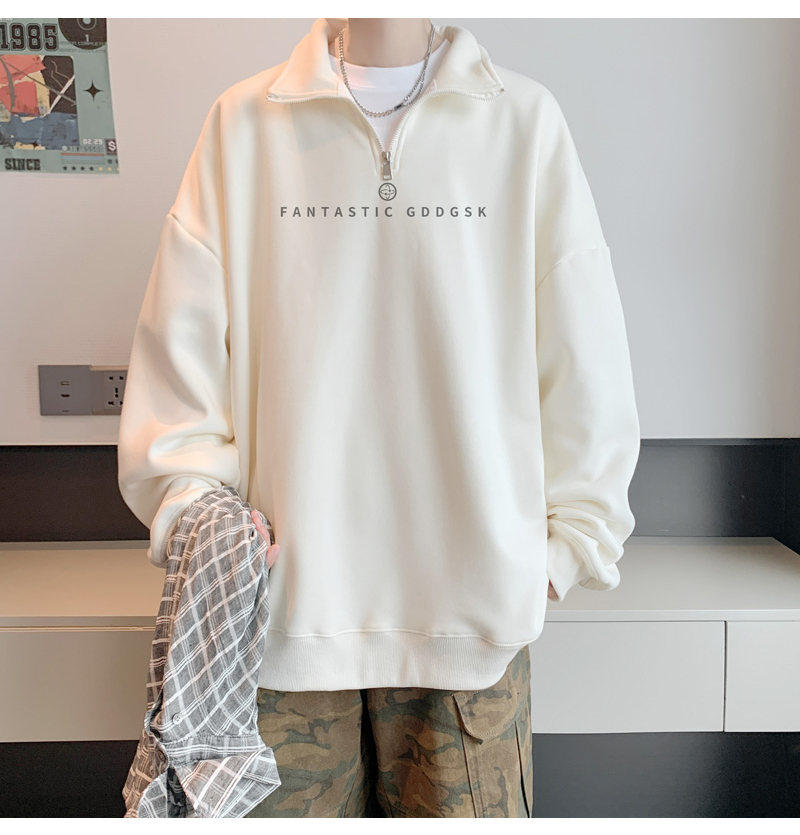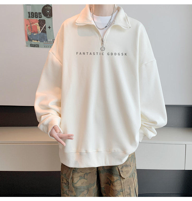 秋冬季半拉鍊繙領衛衣男寬鬆情侶美式打底衫潮牌純棉針織港風外套