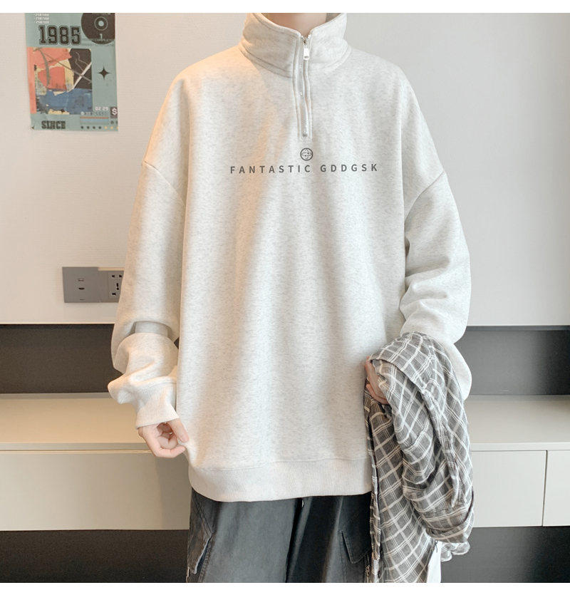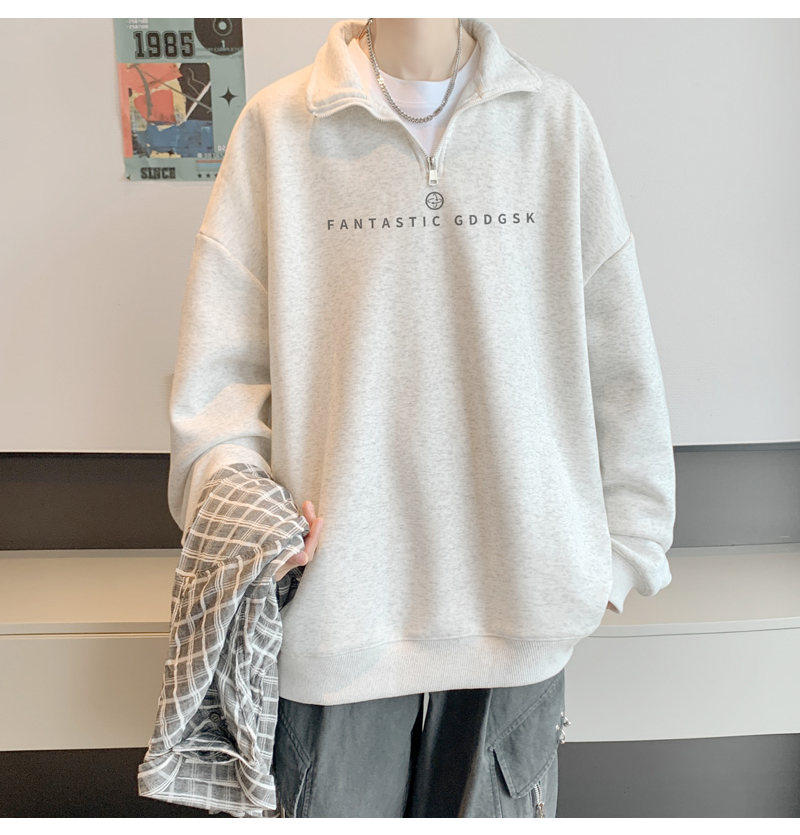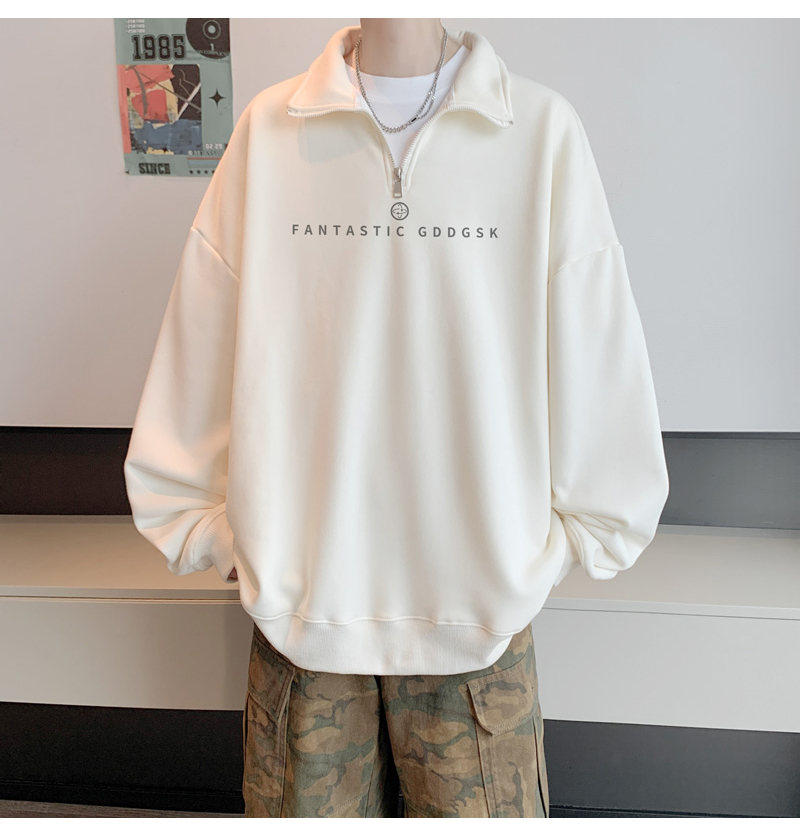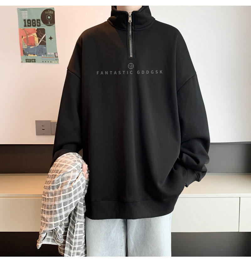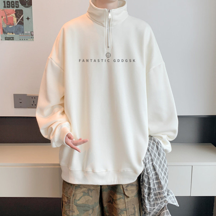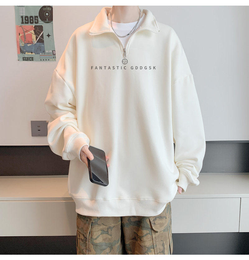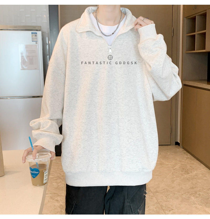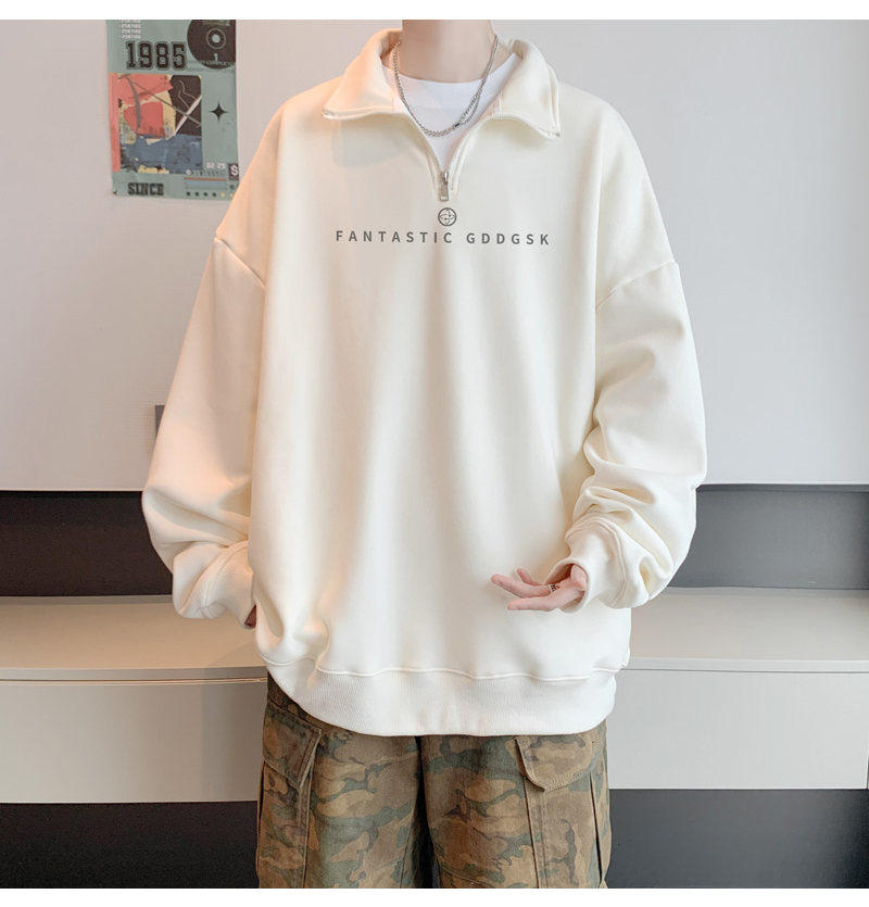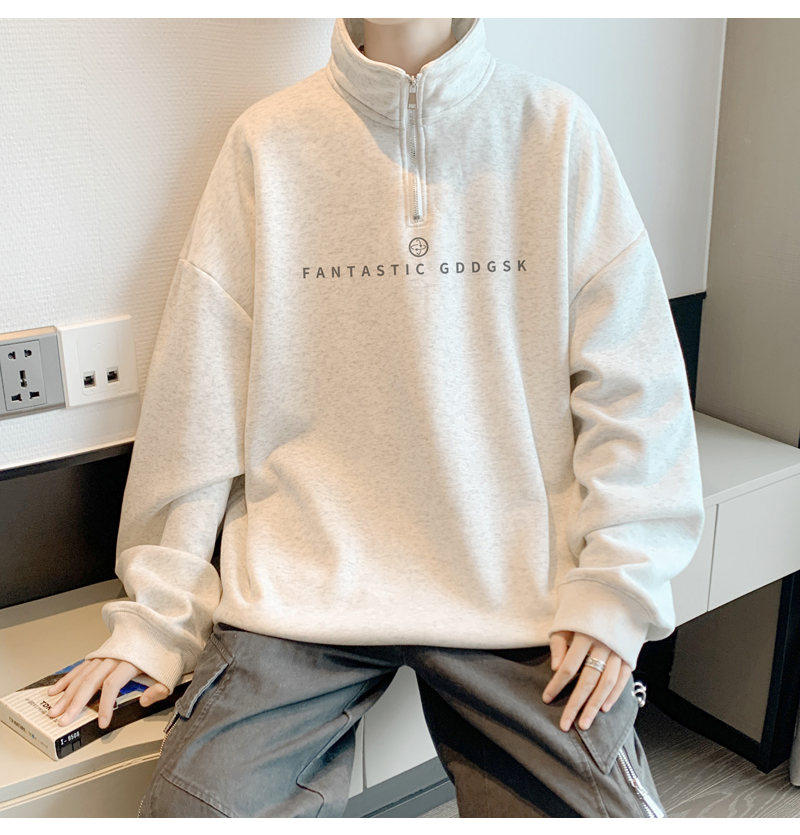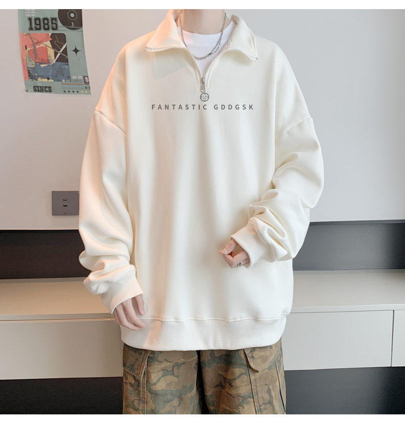 秋冬季半拉鍊繙領衛衣男寬鬆情侶美式打底衫潮牌純棉針織港風外套