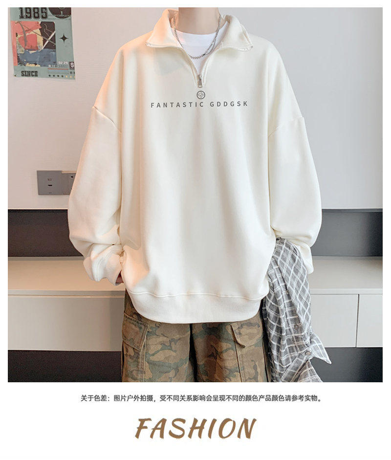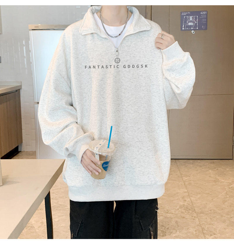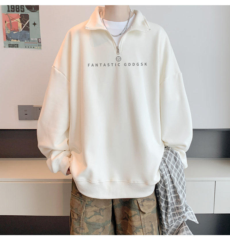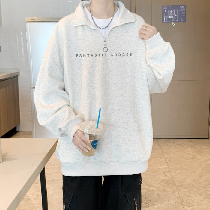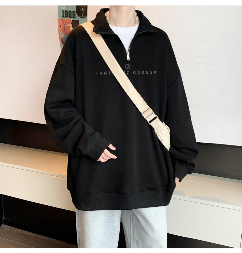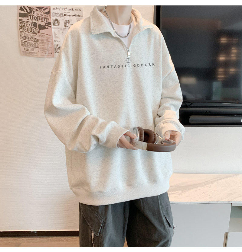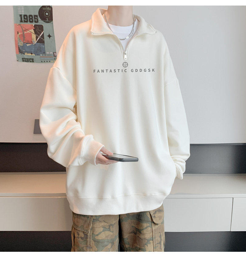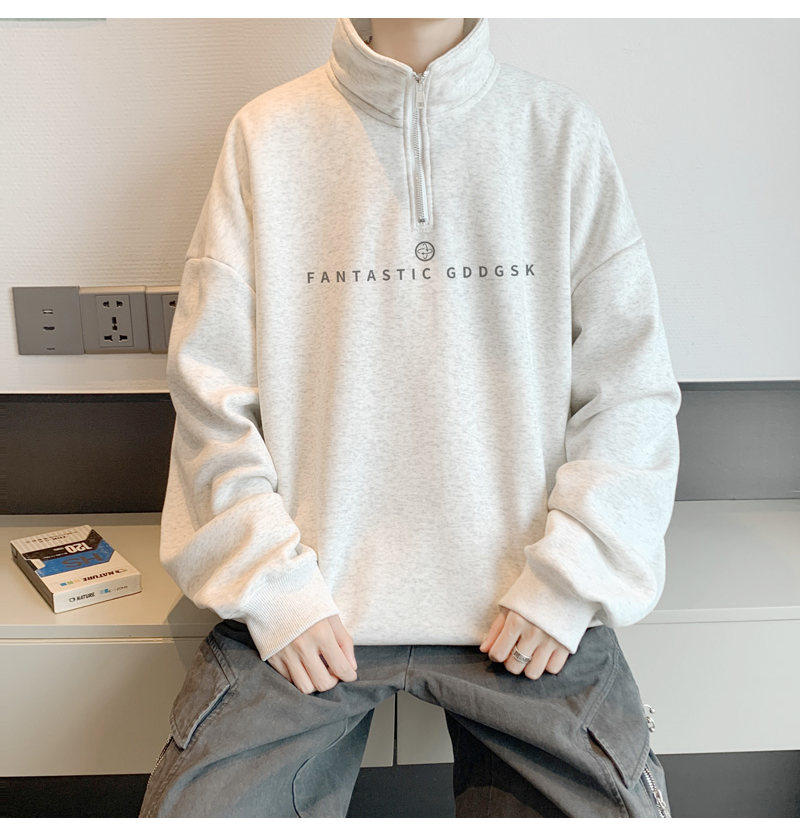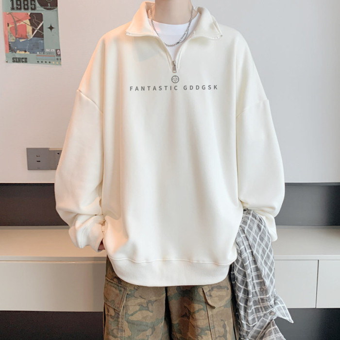 秋冬季半拉鍊繙領衛衣男寬鬆情侶美式打底衫潮牌純棉針織港風外套
