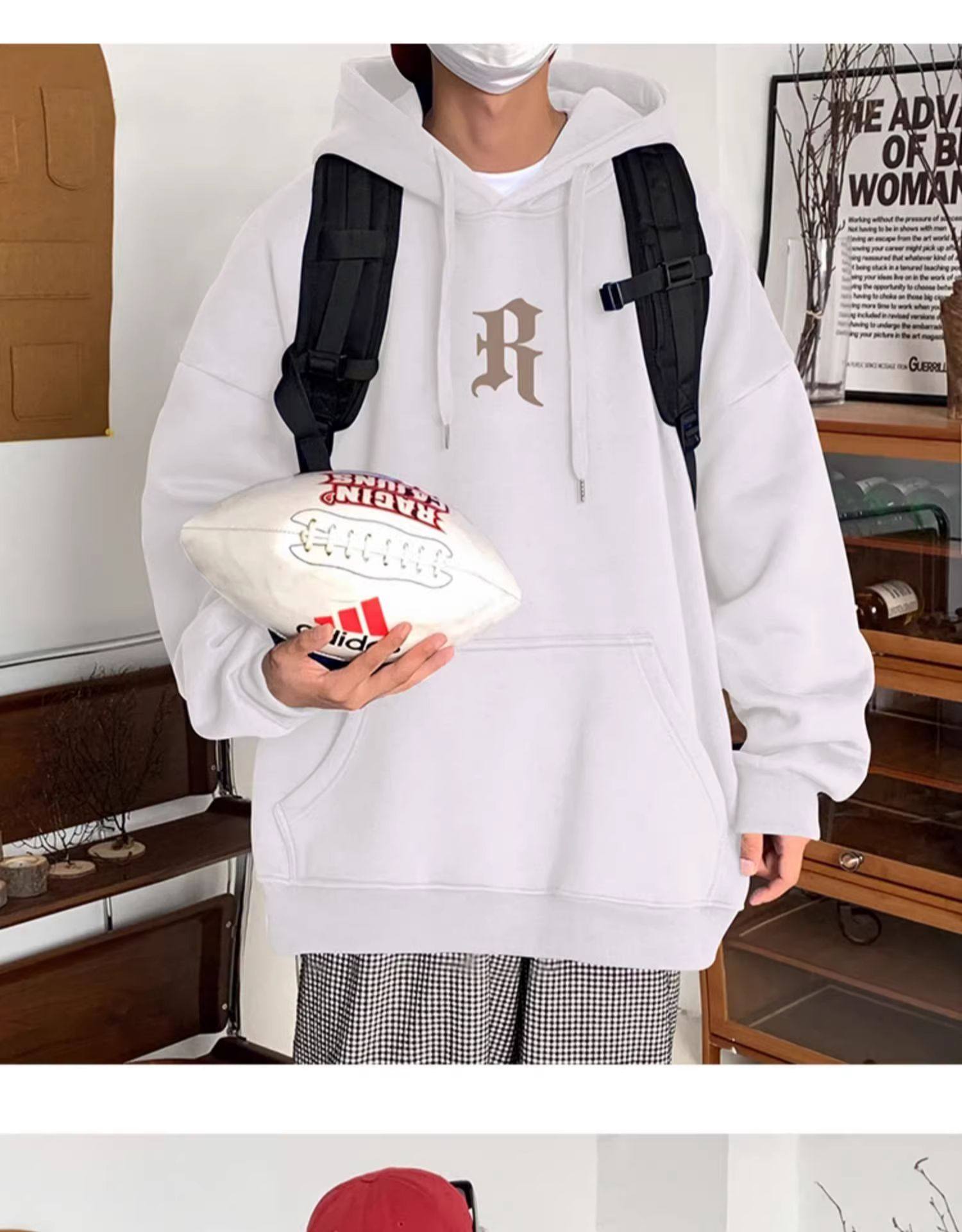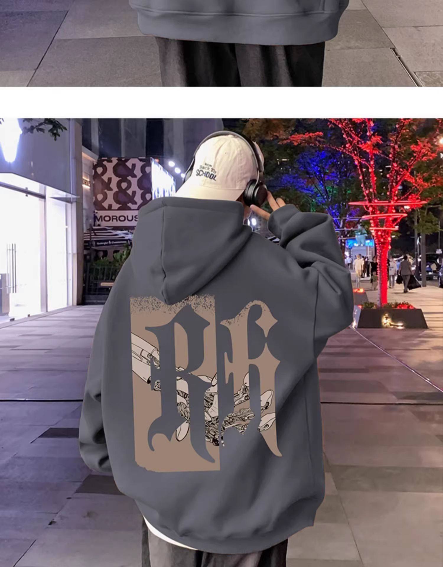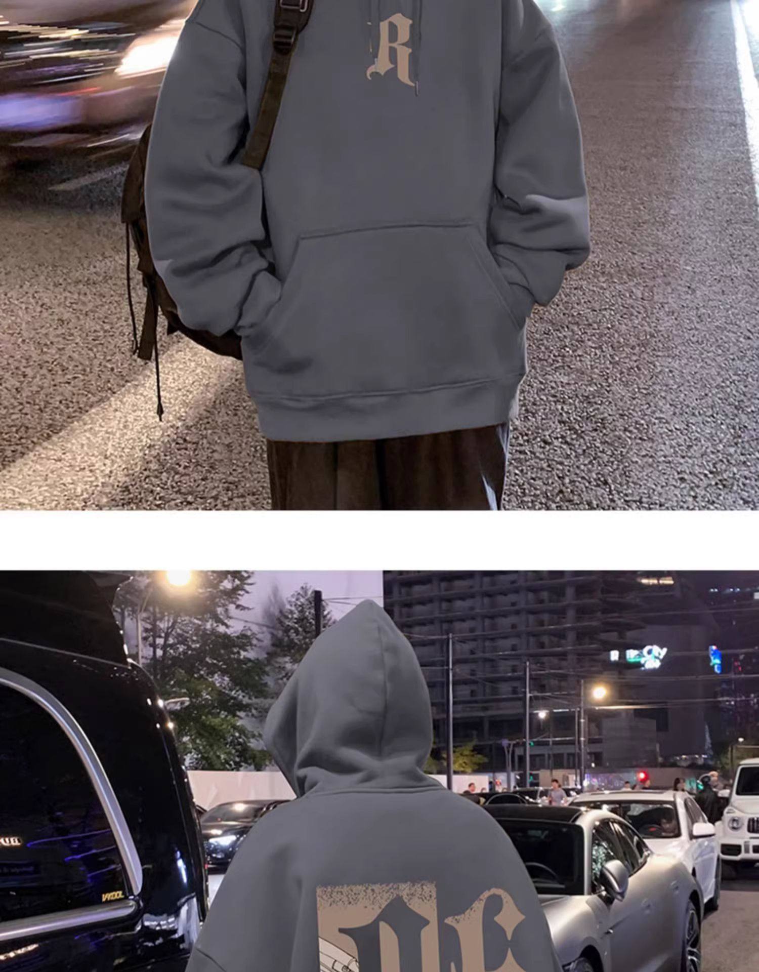 美式復古連帽衛衣男秋冬季加絨嘻哈套頭上衣ins潮牌重磅寬鬆外套