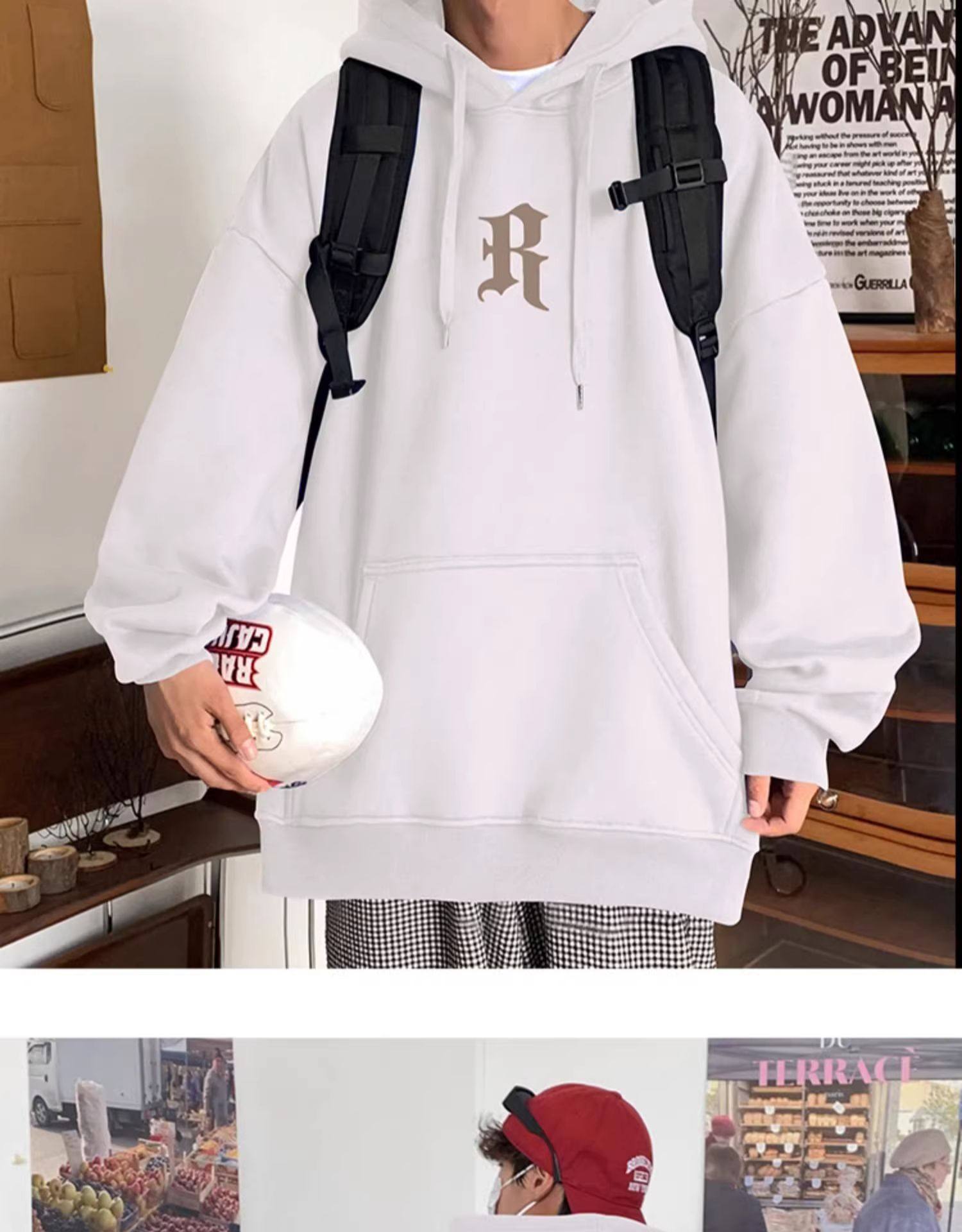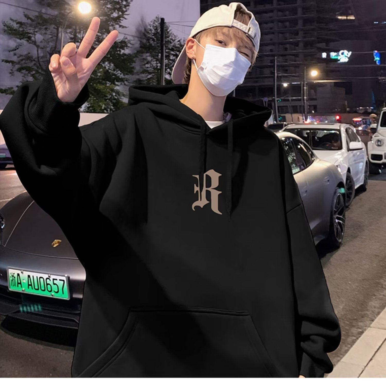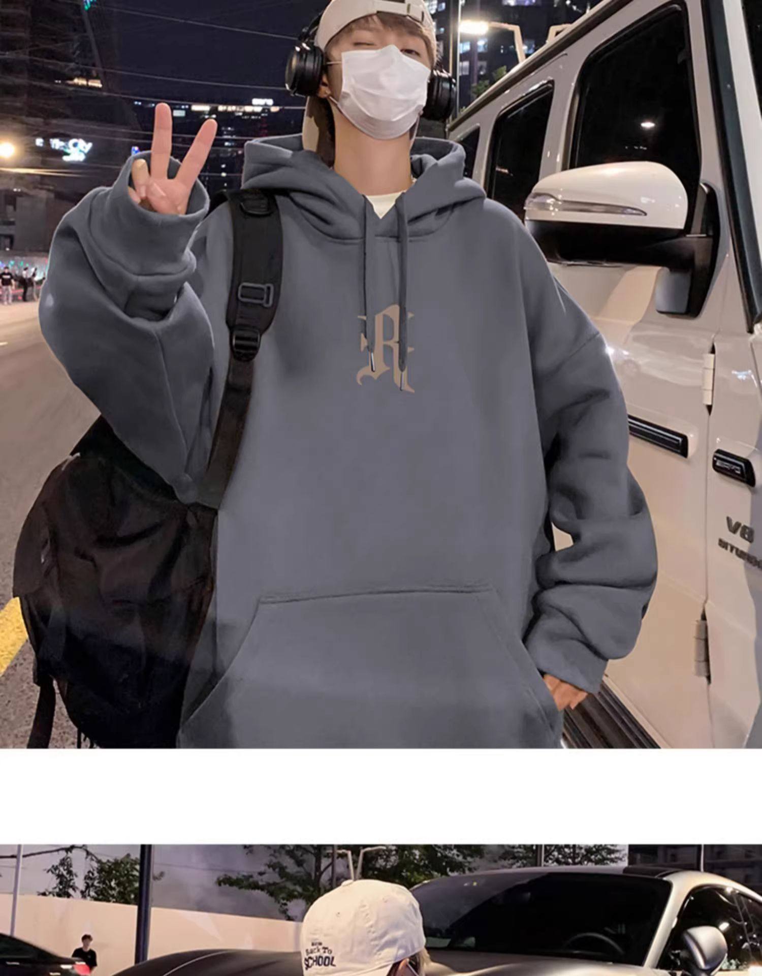 美式復古連帽衛衣男秋冬季加絨嘻哈套頭上衣ins潮牌重磅寬鬆外套