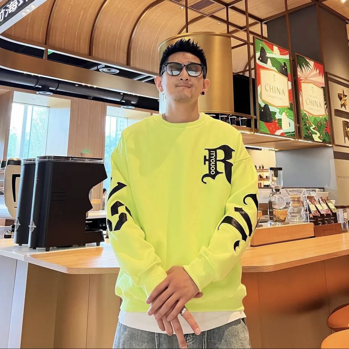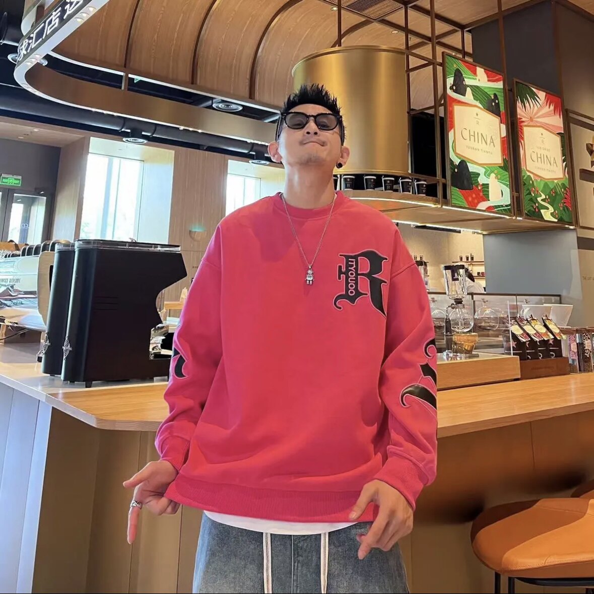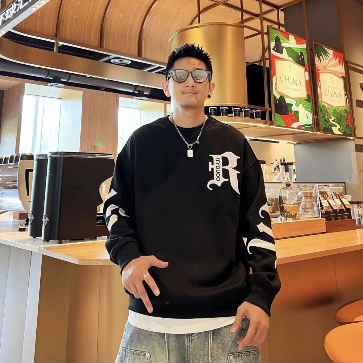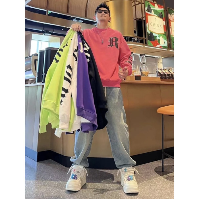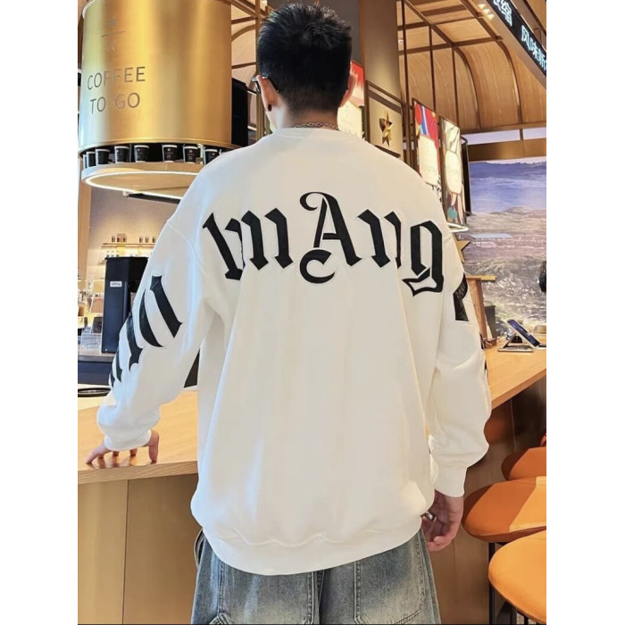 痞帥潮流春秋新款時尚百搭寬鬆男士字母印花設計感長袖圓領衛衣