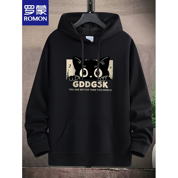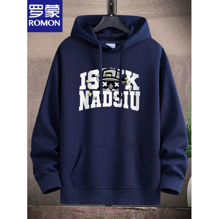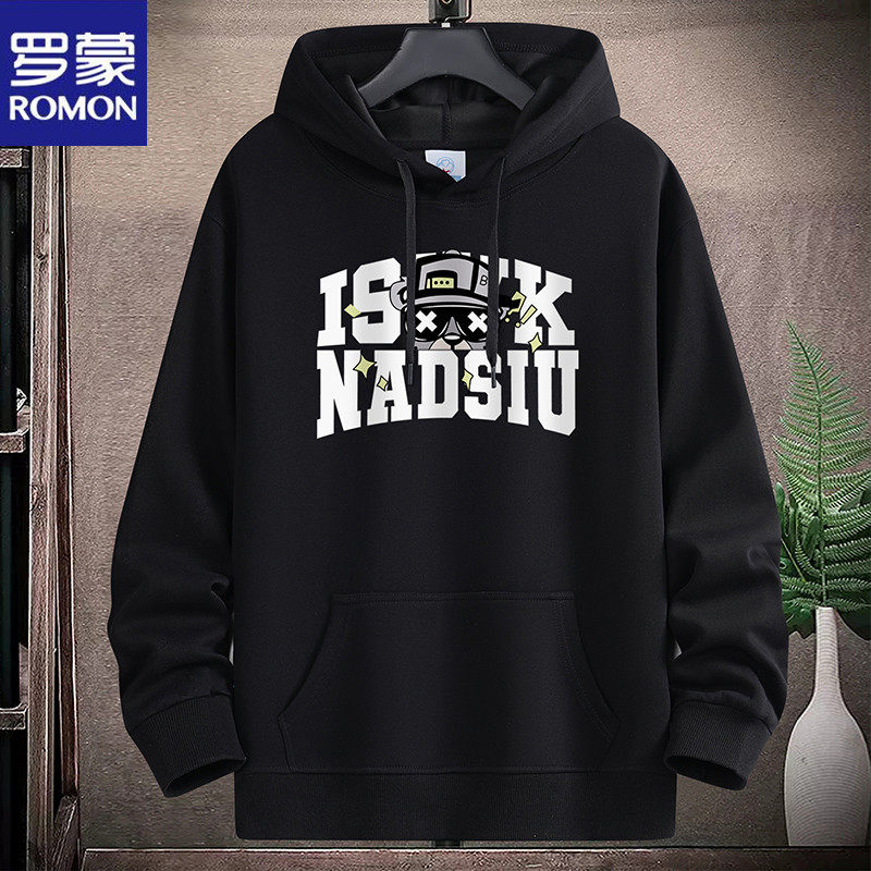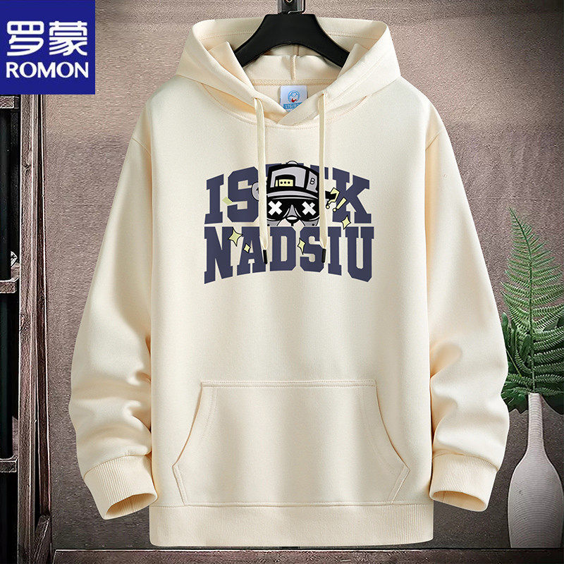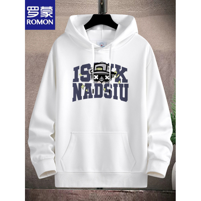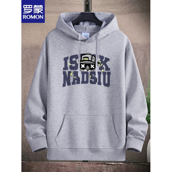 羅矇棉衛衣男加絨厚款寬鬆休閒情侶連帽衫學生字母印花青年薄外套