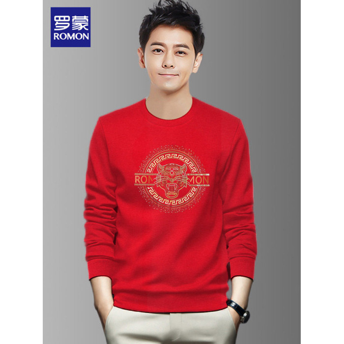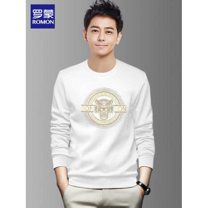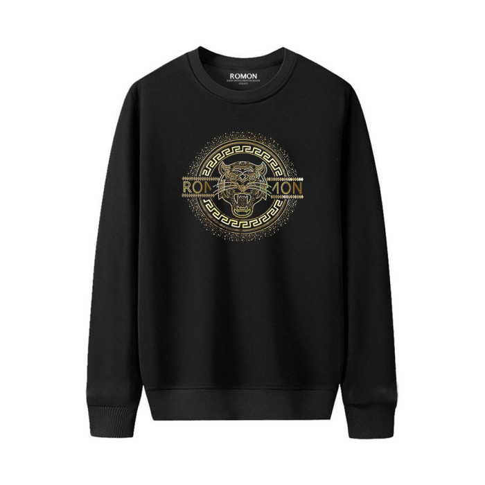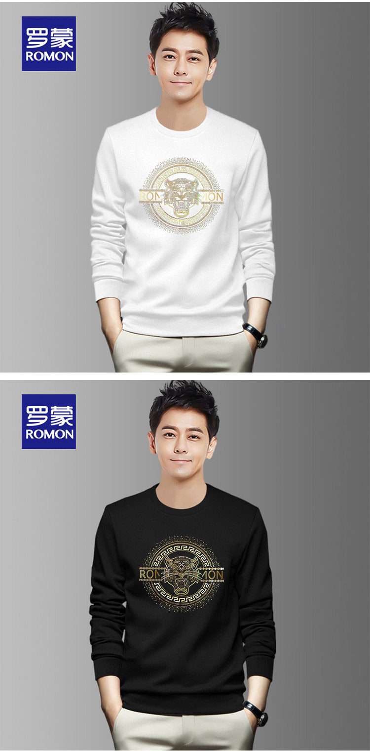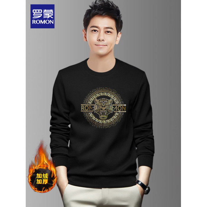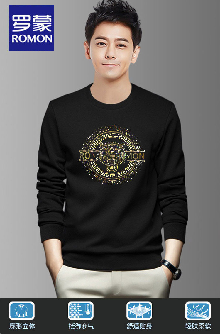 羅矇品牌套頭衛衣男秋冬季2026新款休閒無帽圓領長袖黑色運動上衣