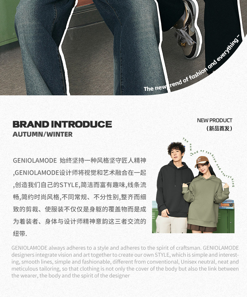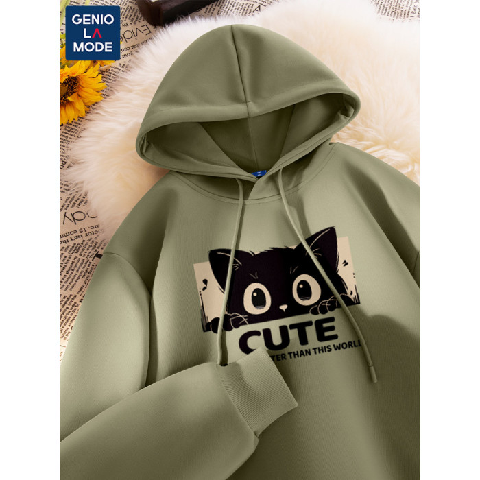 GenioLamde卡通貓連帽衛衣男女2025秋季潮牌情侶套頭上衣外套
