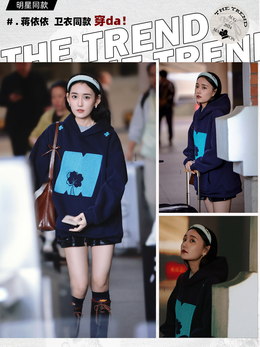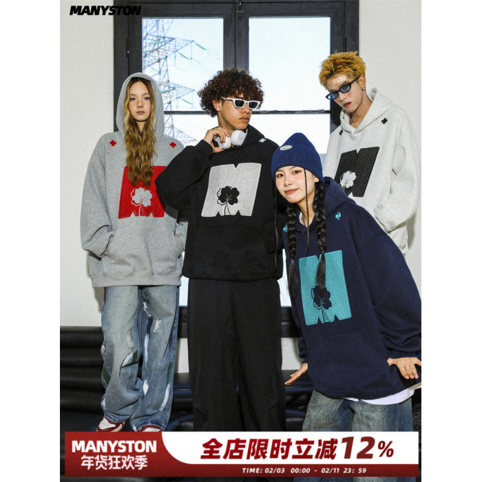 蔣依依同款MANYSTON美式高街情侶裝衛衣春秋季潮牌黑色連帽外套男