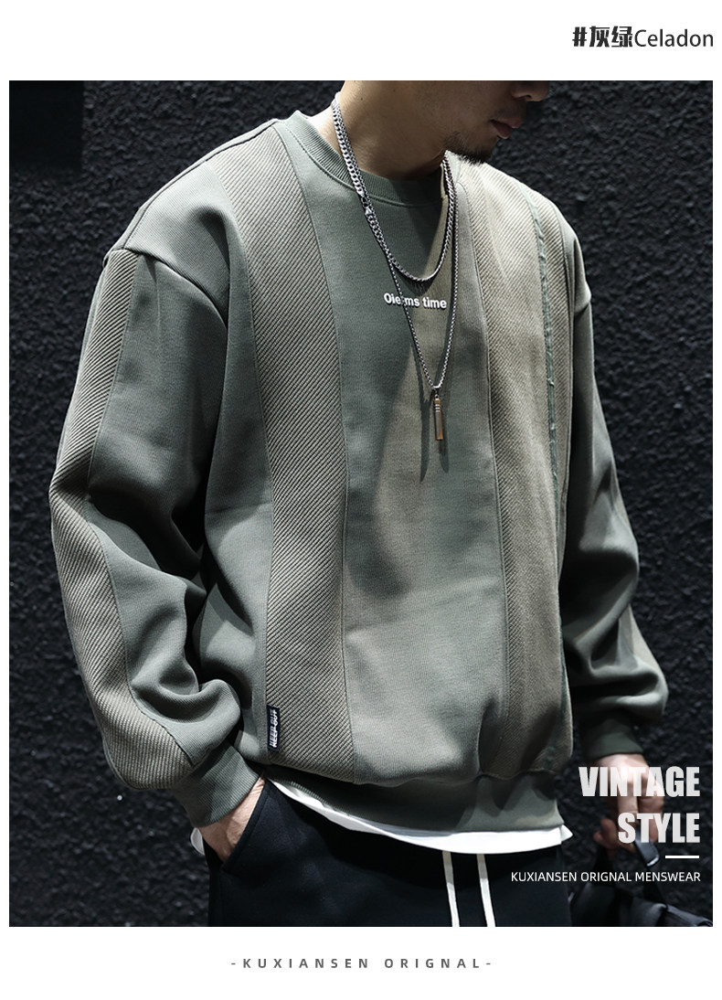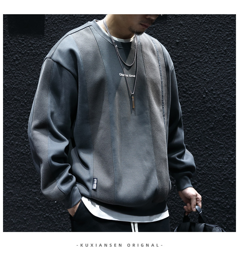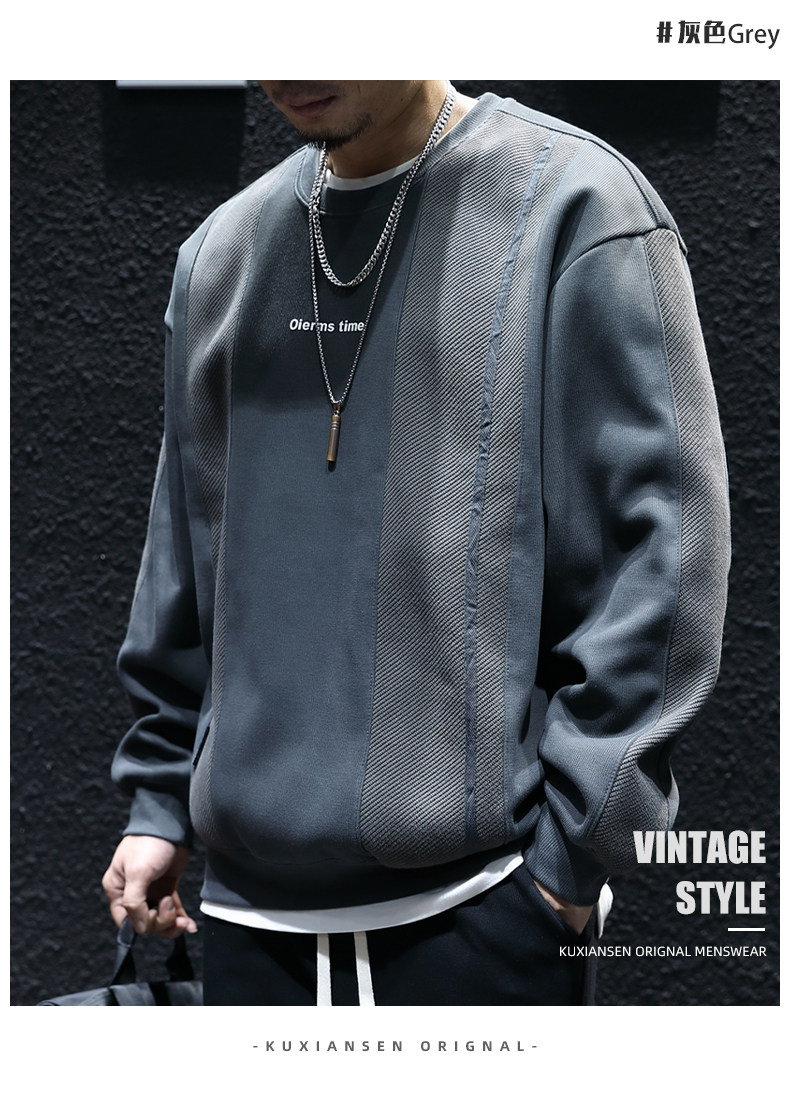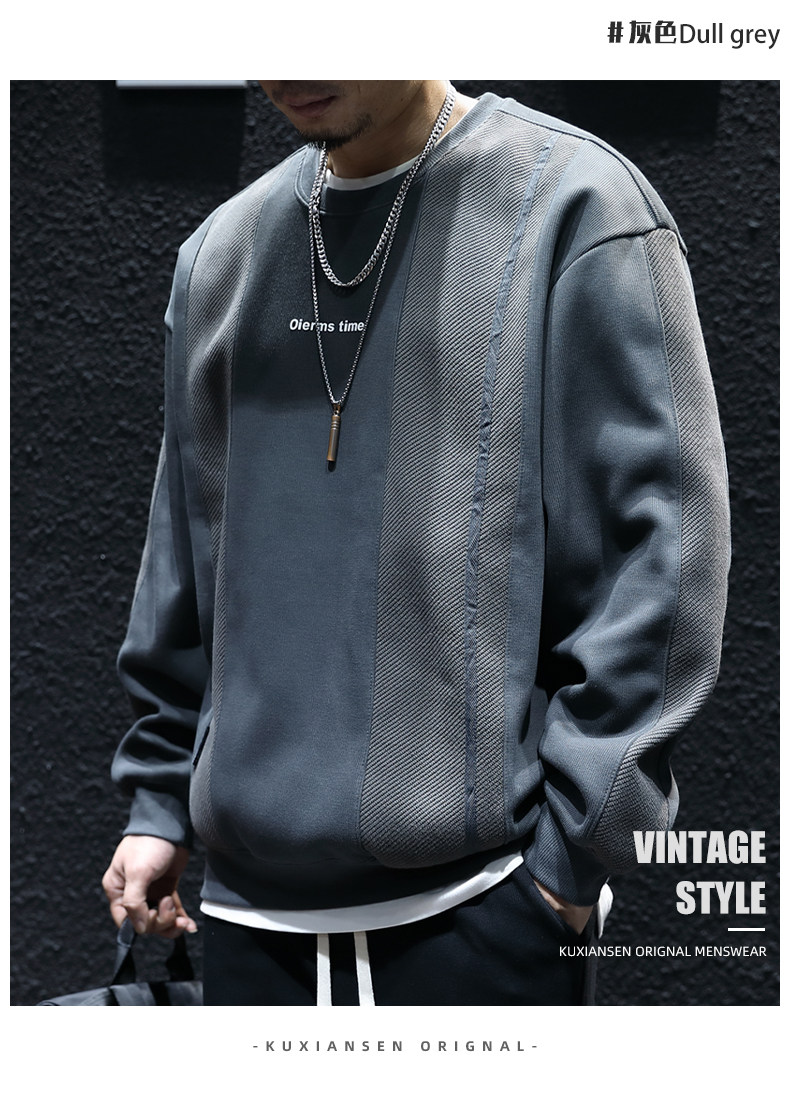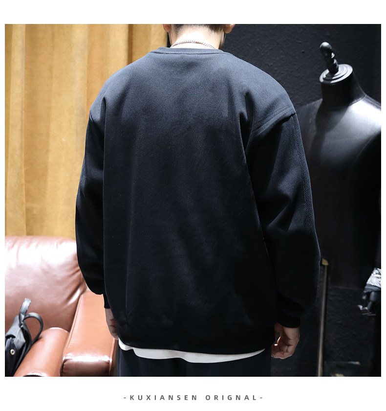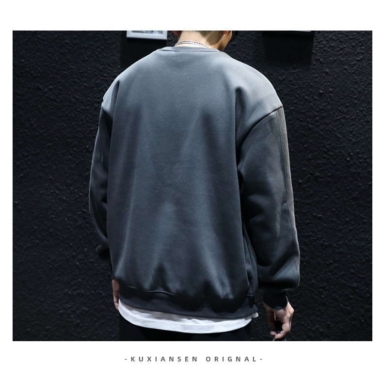 加絨加厚衛衣男冬季寬鬆圓領大碼拼接上衣秋冬厚款長袖休閒外套潮