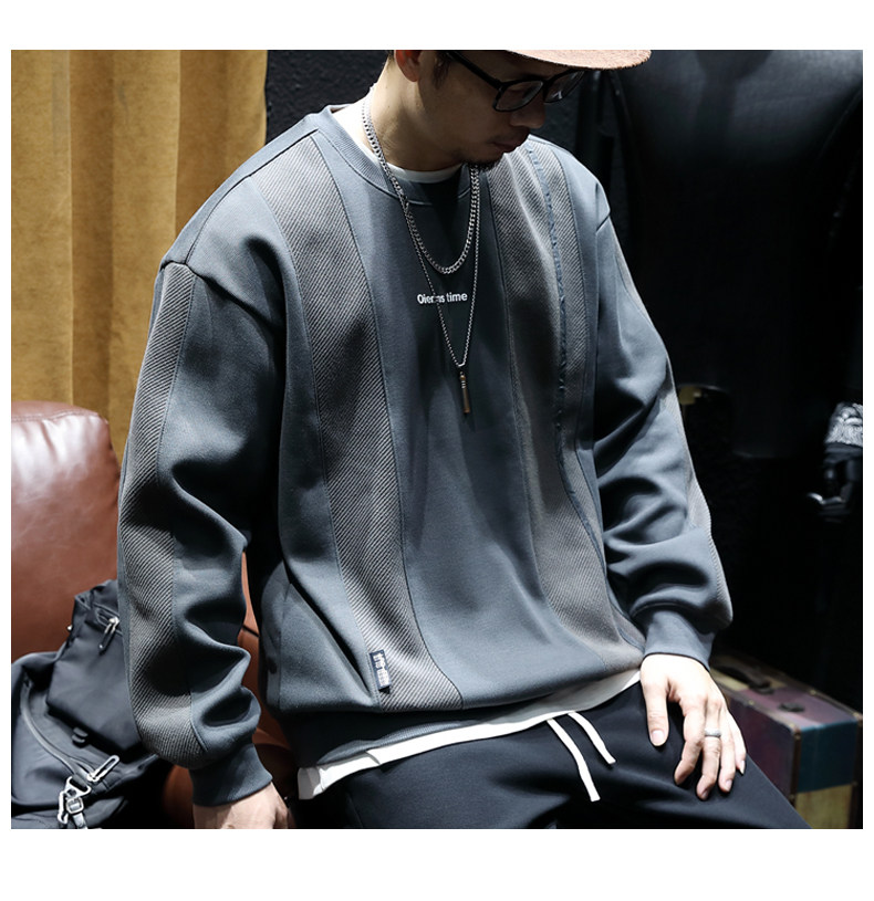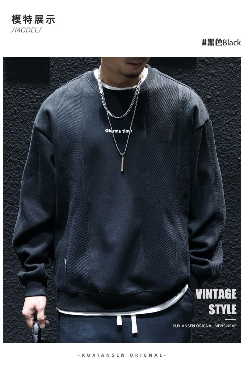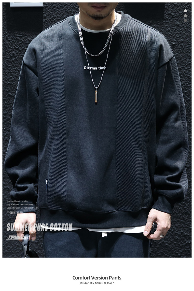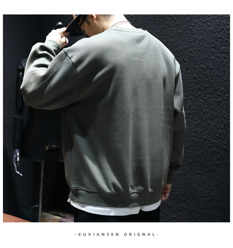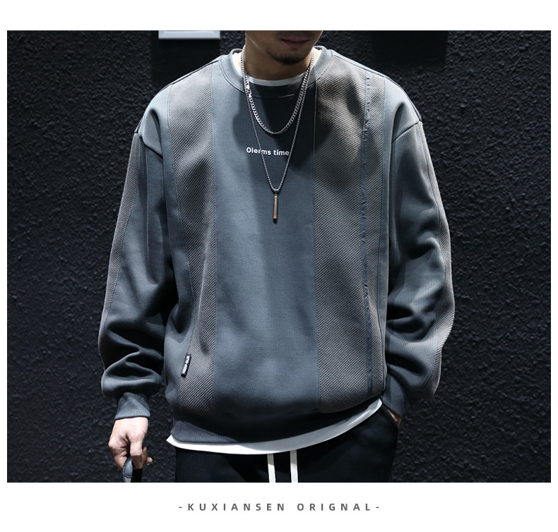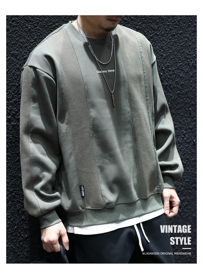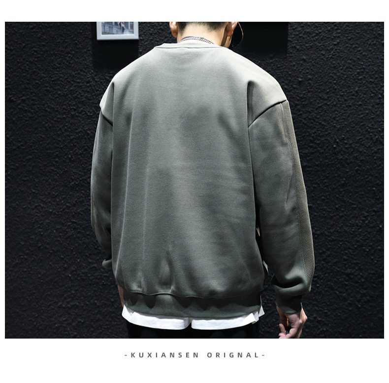 加絨加厚衛衣男冬季寬鬆圓領大碼拼接上衣秋冬厚款長袖休閒外套潮