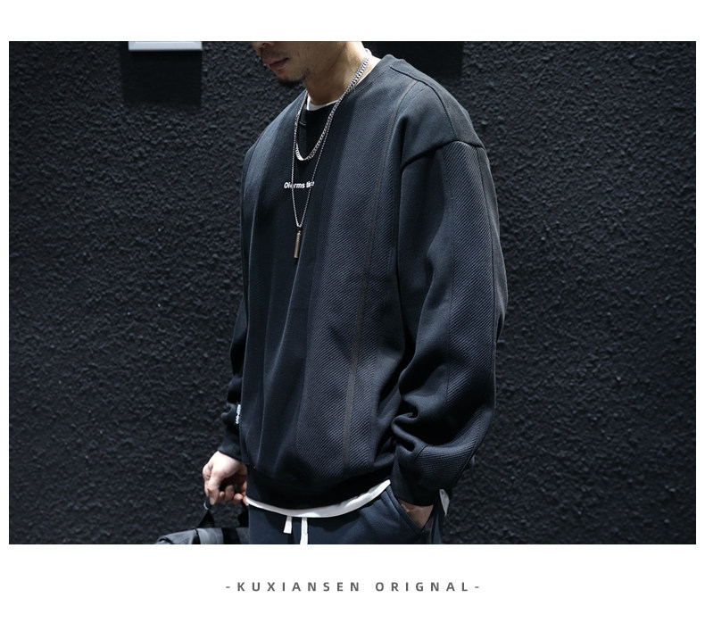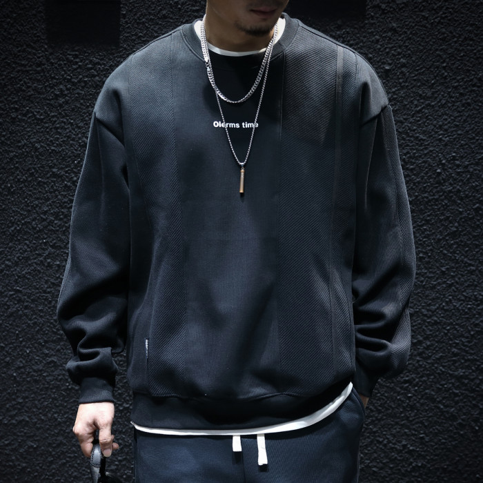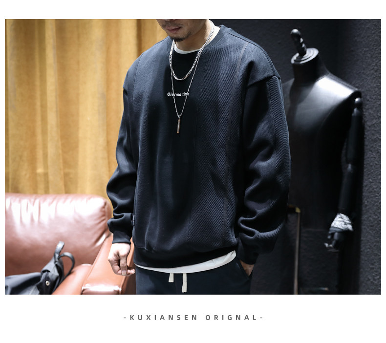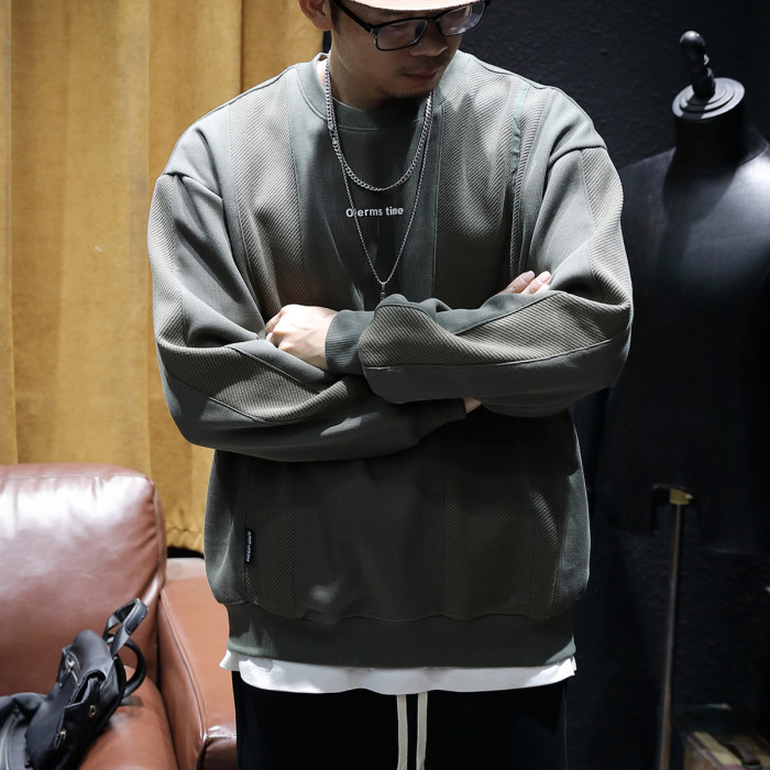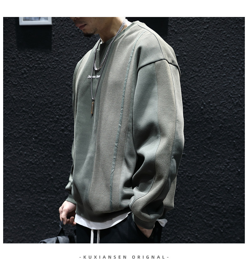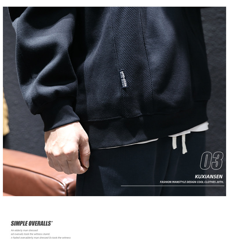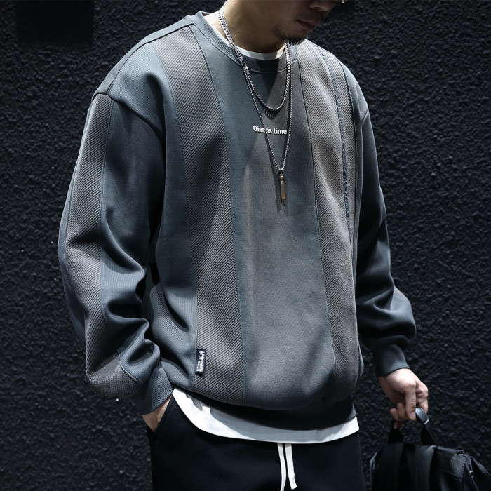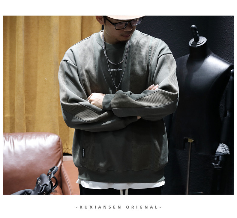 加絨加厚衛衣男冬季寬鬆圓領大碼拼接上衣秋冬厚款長袖休閒外套潮