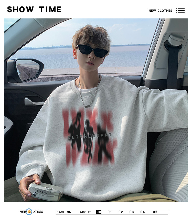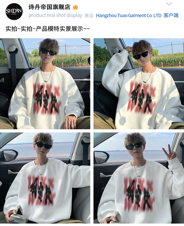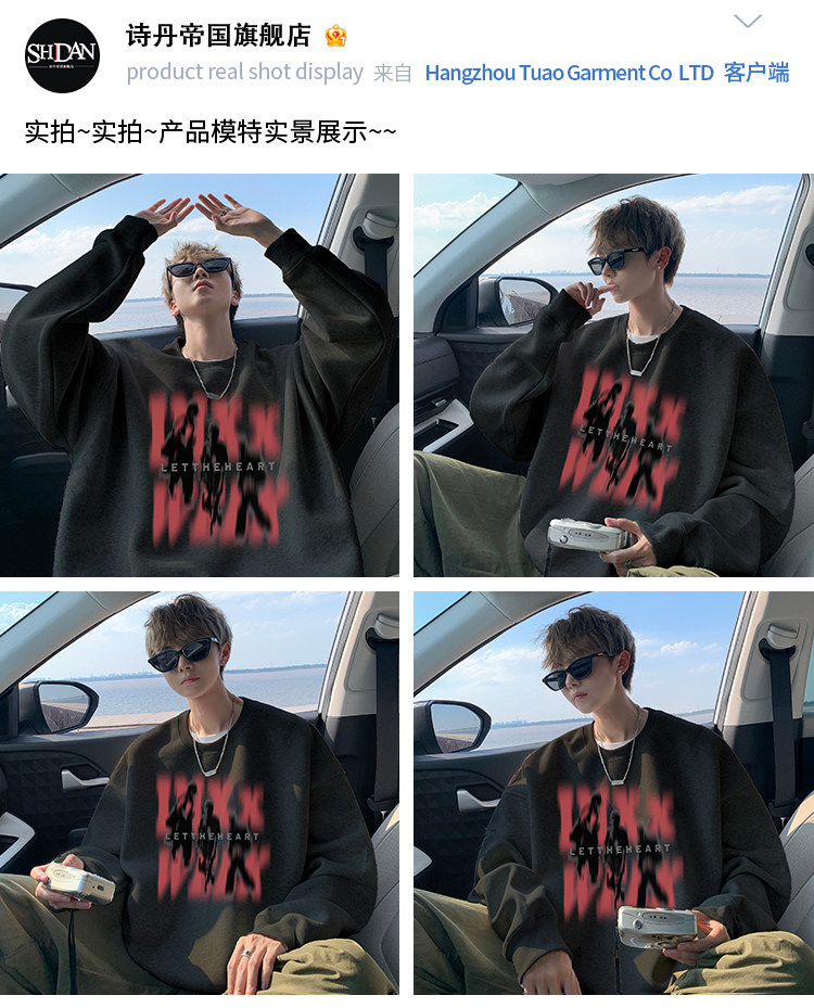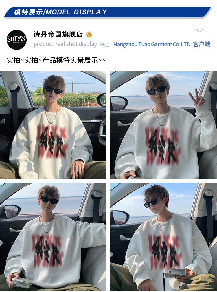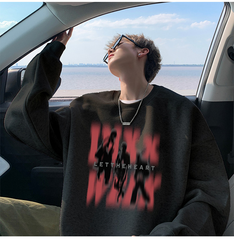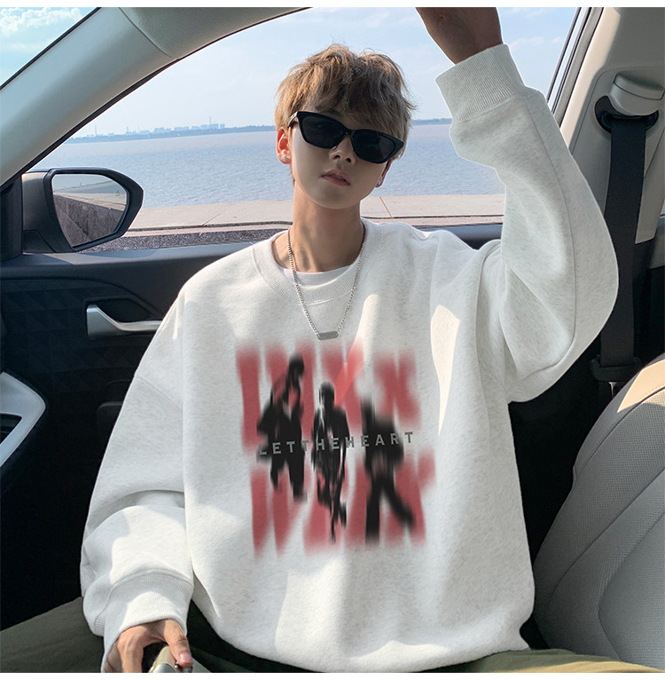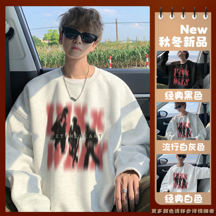 衛衣男春秋款2025新款美式潮牌痞帥上衣長袖早秋慵懶圓領打底T恤