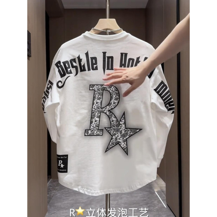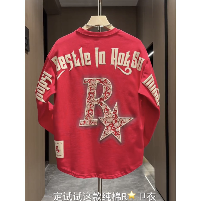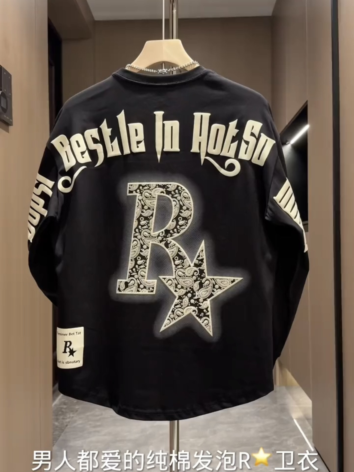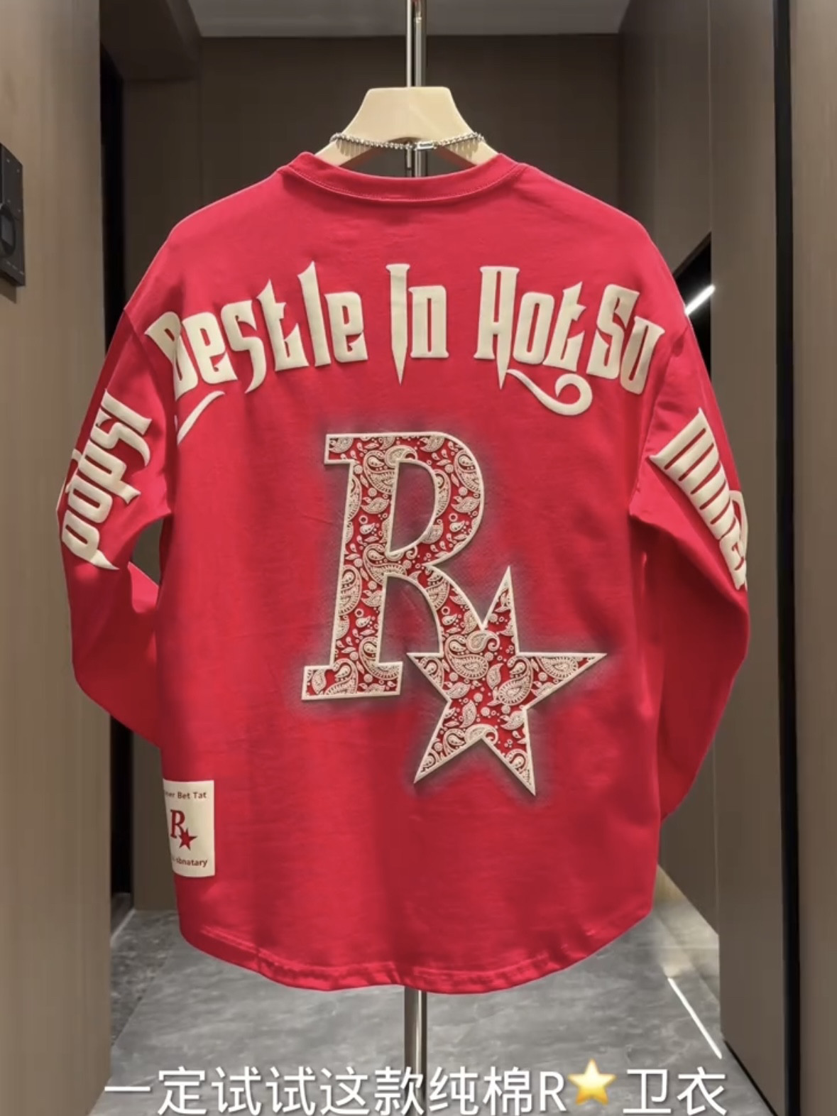 2026春秋美式發泡印花休閒圓領衛衣男潮流寬鬆情侶長袖T恤打底衫
