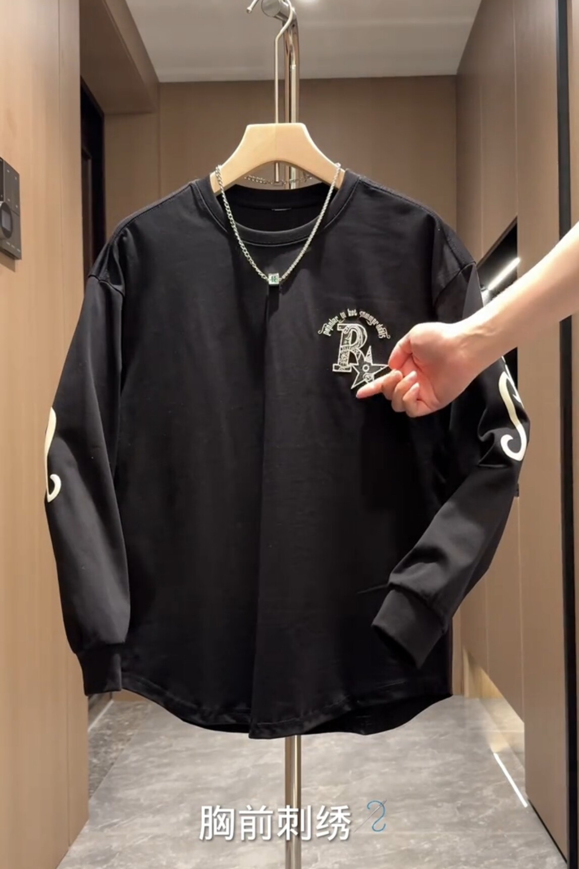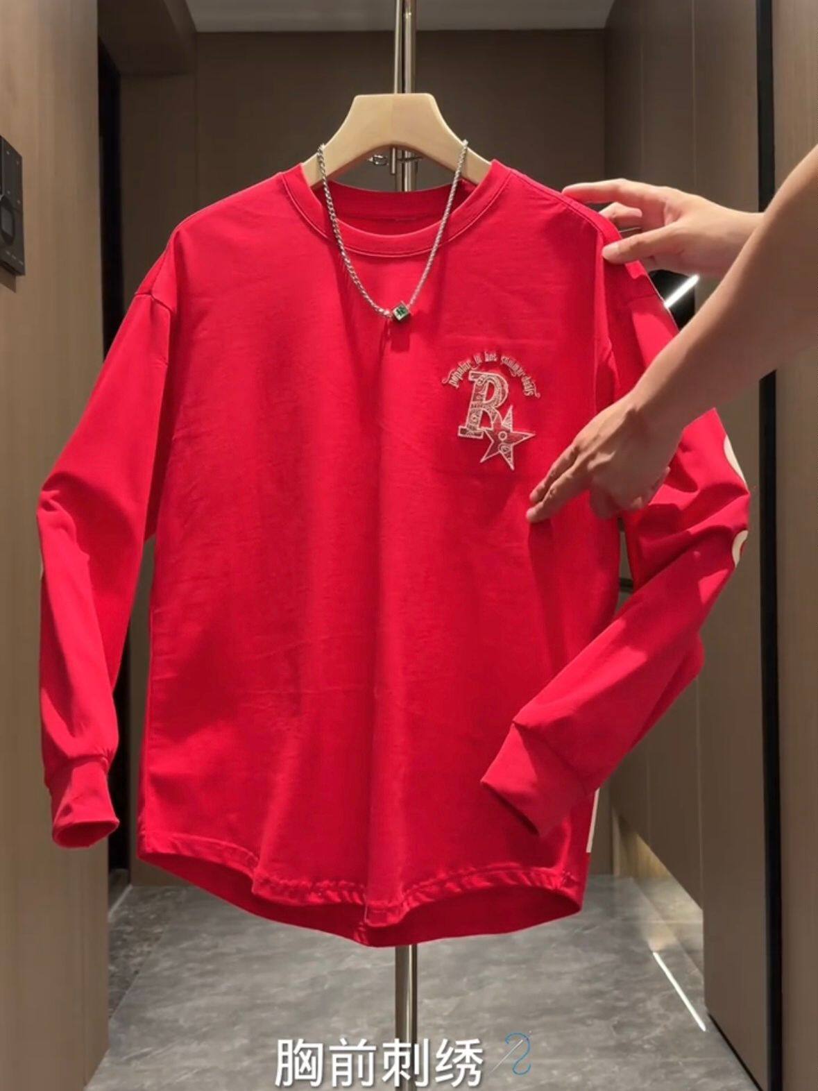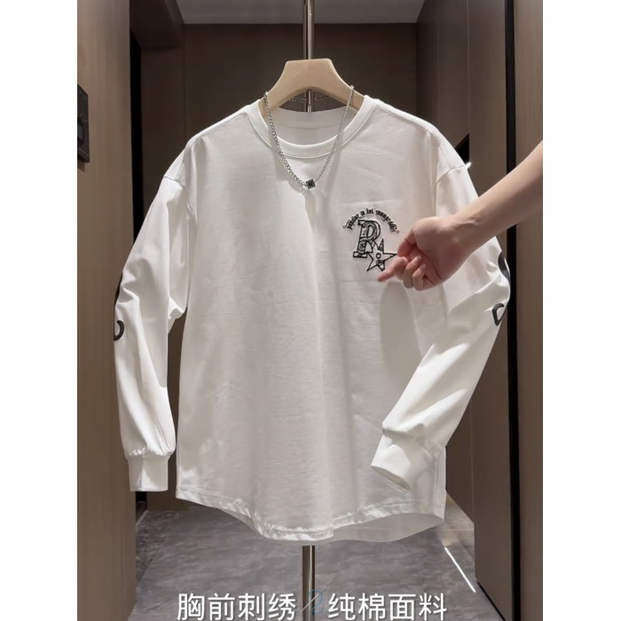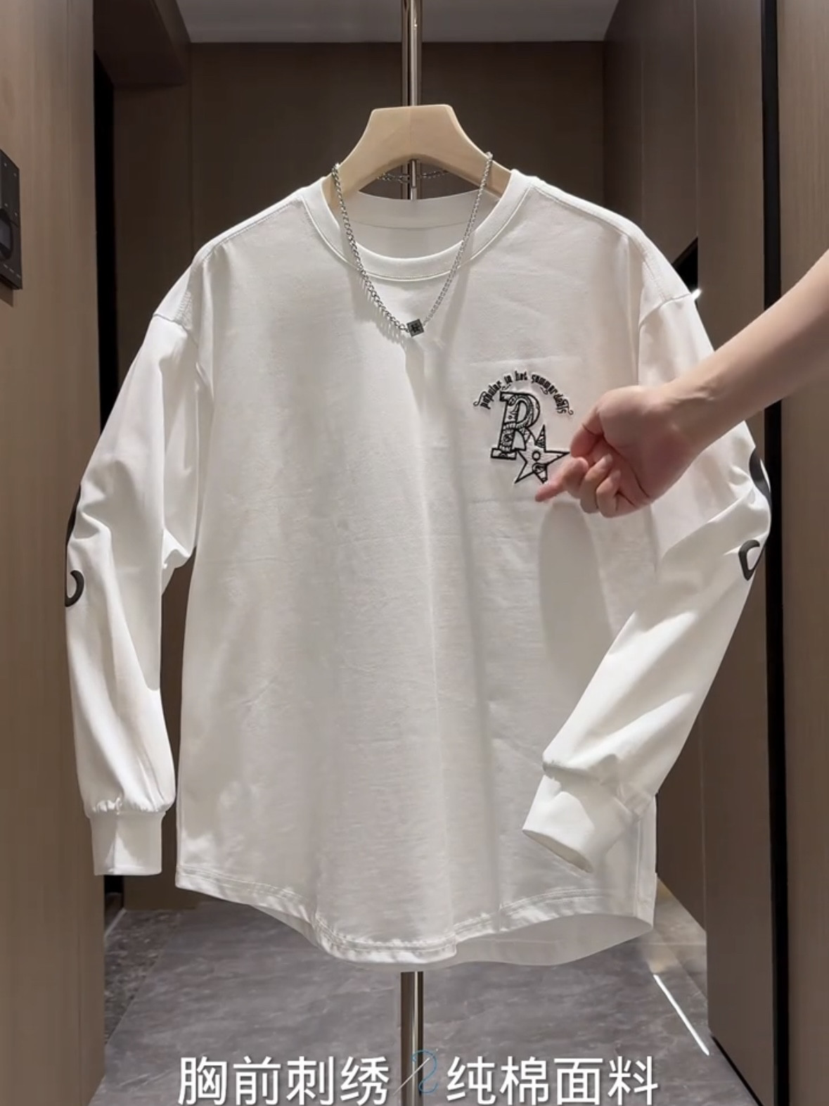 2026春秋美式發泡印花休閒圓領衛衣男潮流寬鬆情侶長袖T恤打底衫