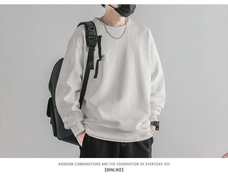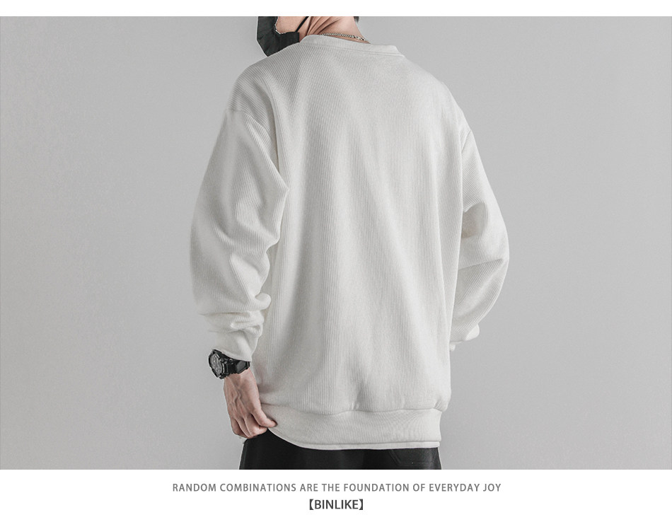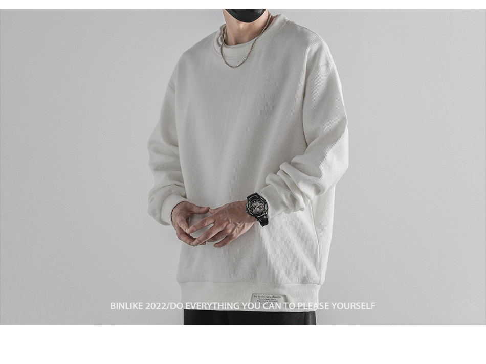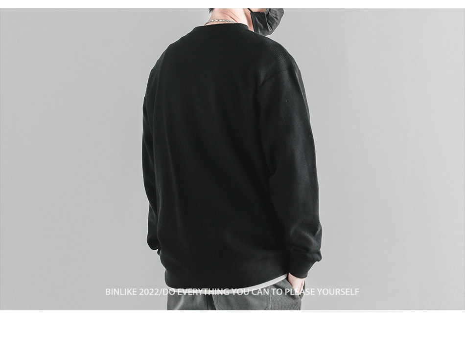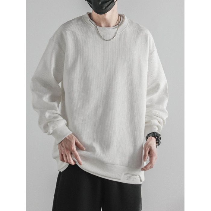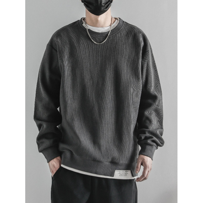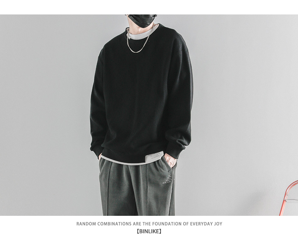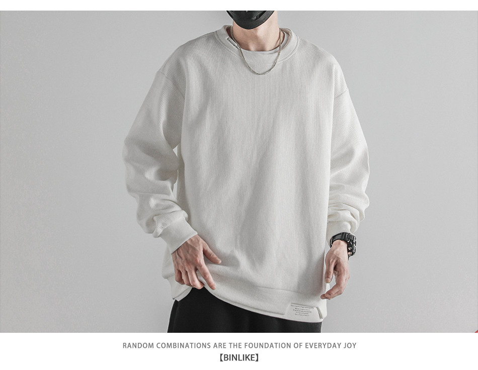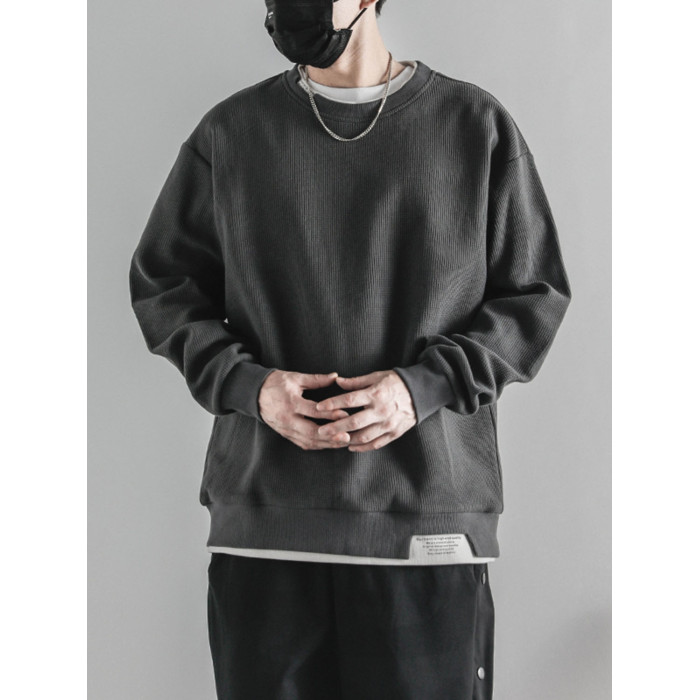 日系重磅圓領復古加絨加厚假兩件衛衣男秋冬季外套百搭華夫格上衣