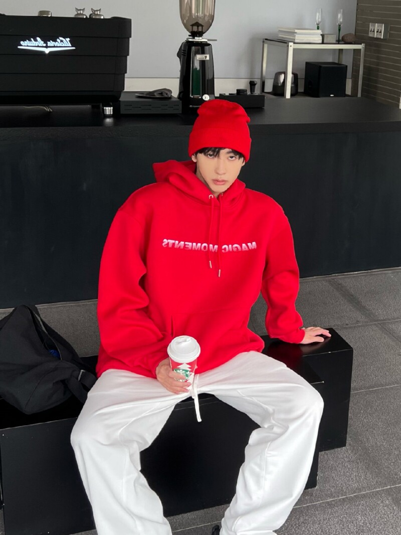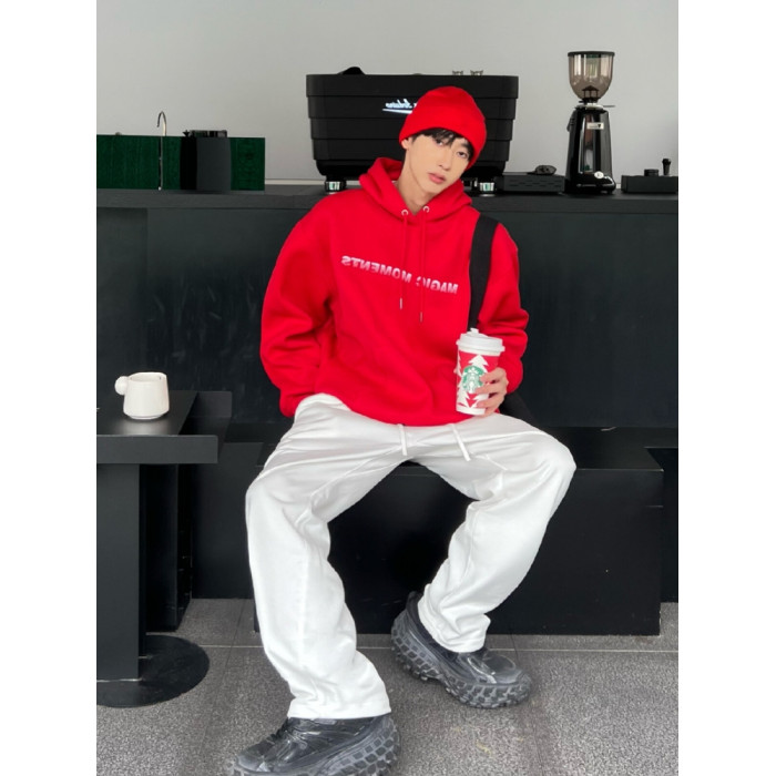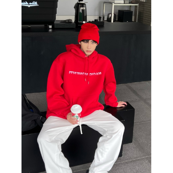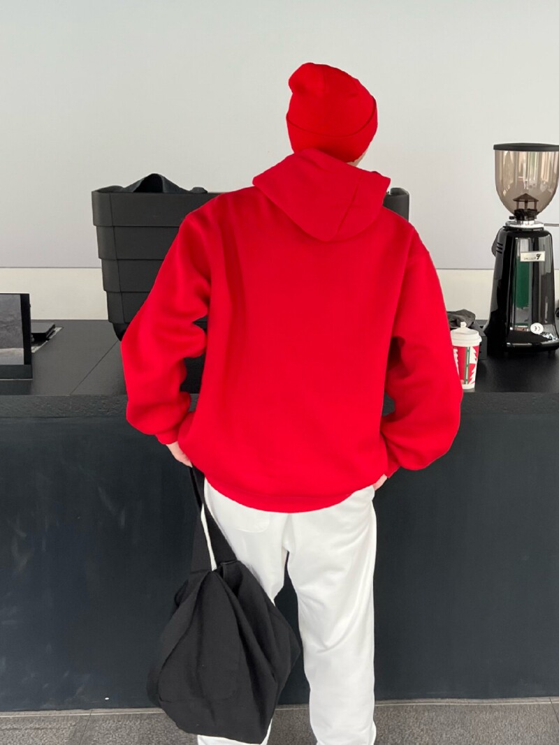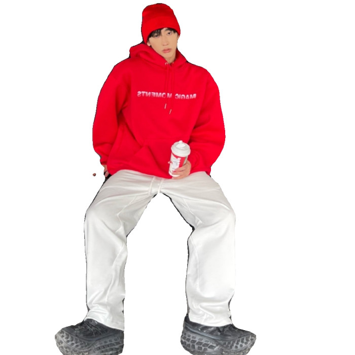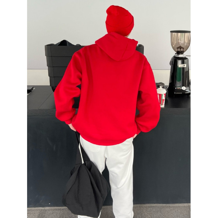 本命年紅色美式衛衣男連帽加絨加厚冬季寬鬆套頭上衣外套百搭潮流