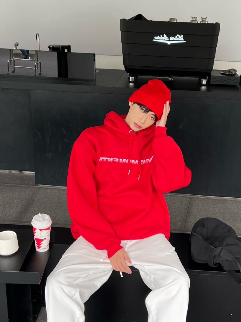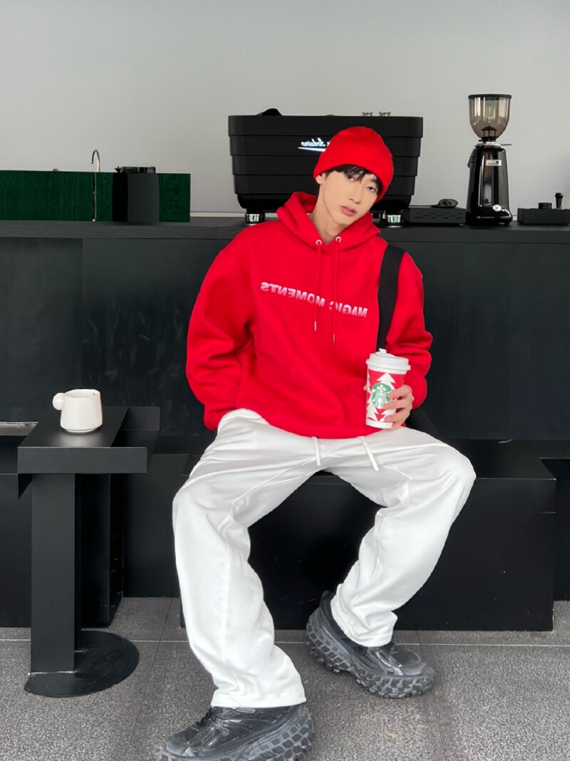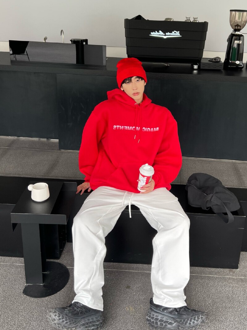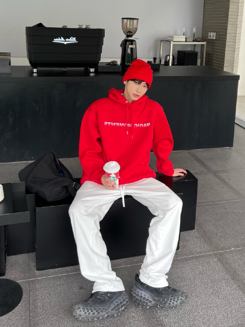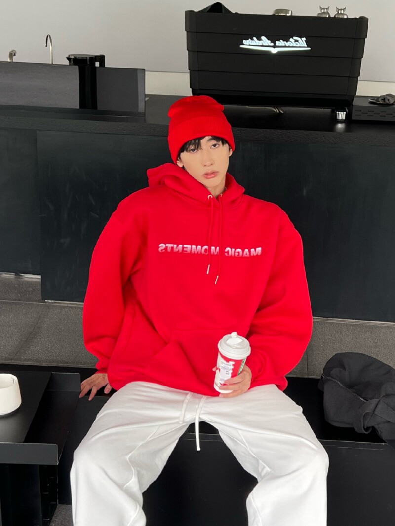 本命年紅色美式衛衣男連帽加絨加厚冬季寬鬆套頭上衣外套百搭潮流