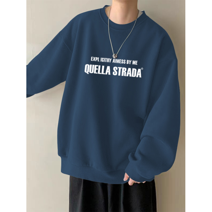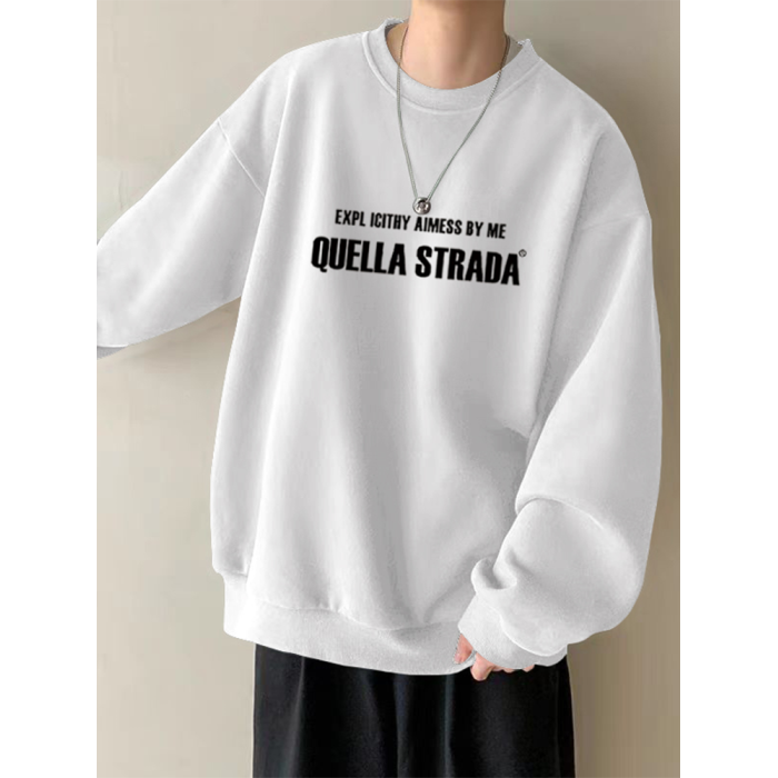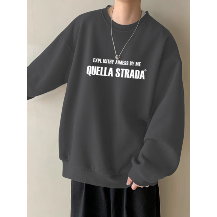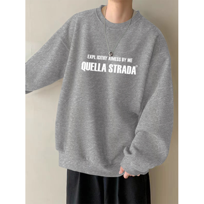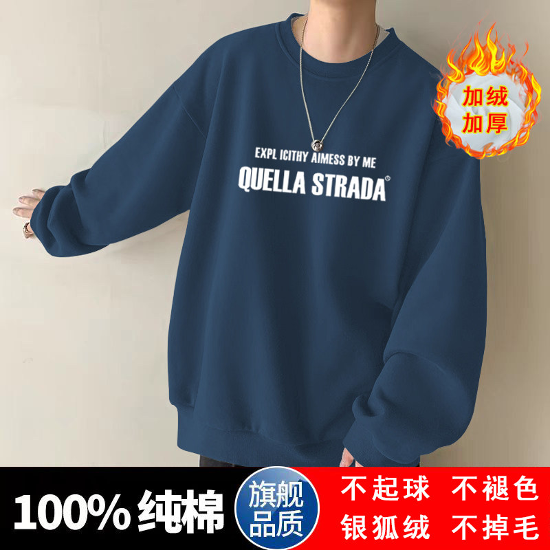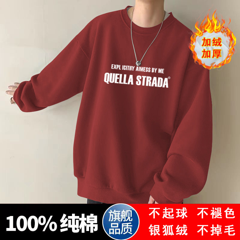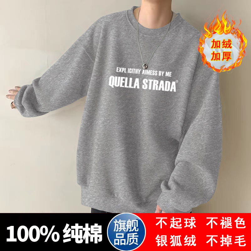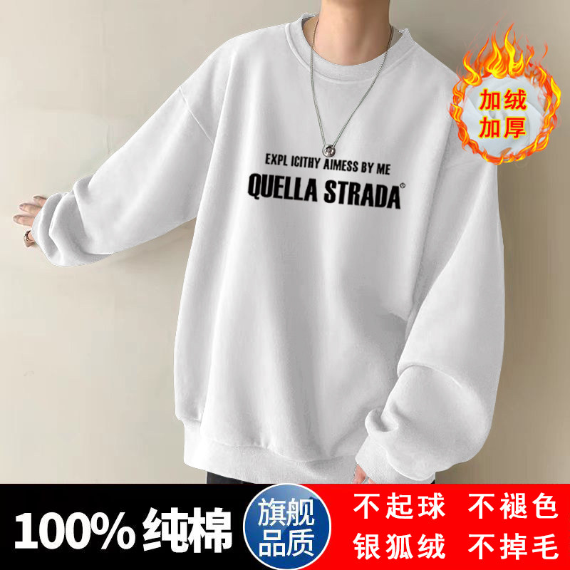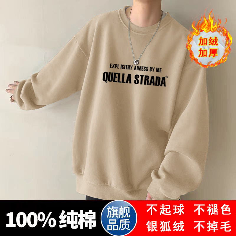 美式設計感衛衣男秋冬款加絨加厚寬鬆打底衫早春季青少年重磅t恤