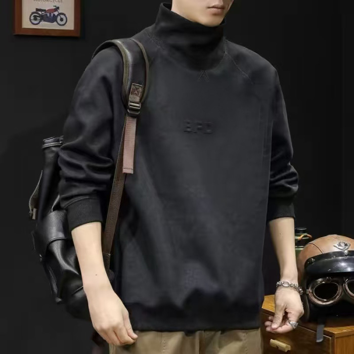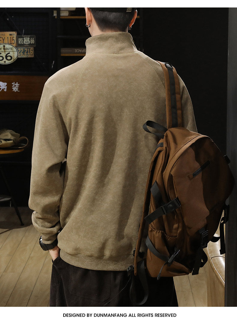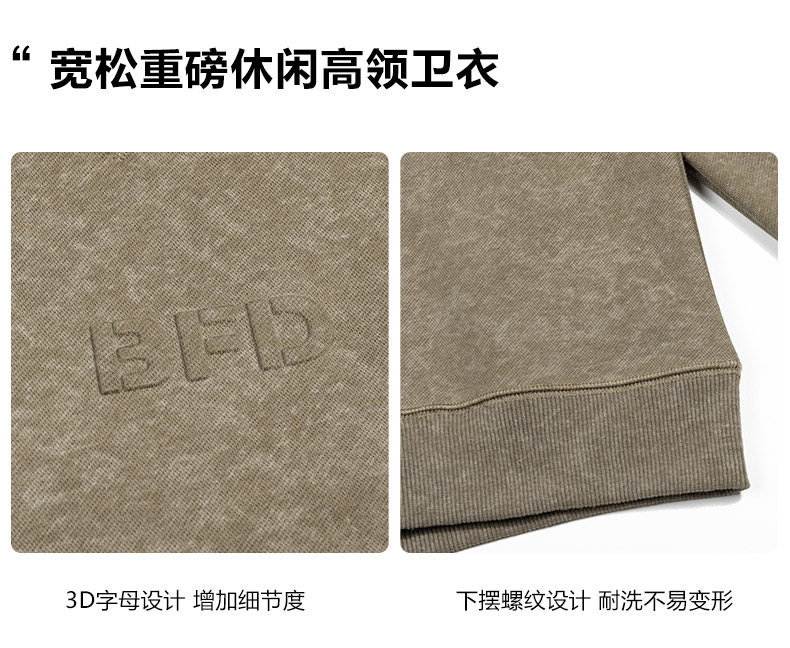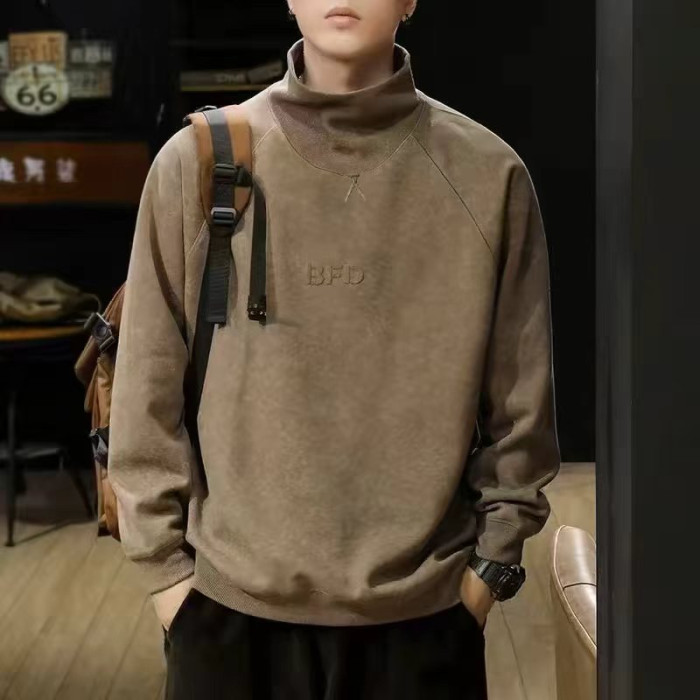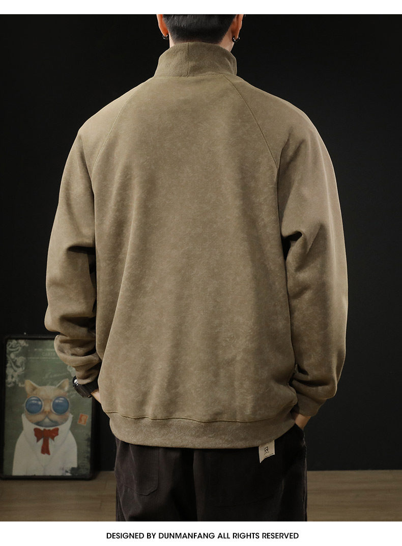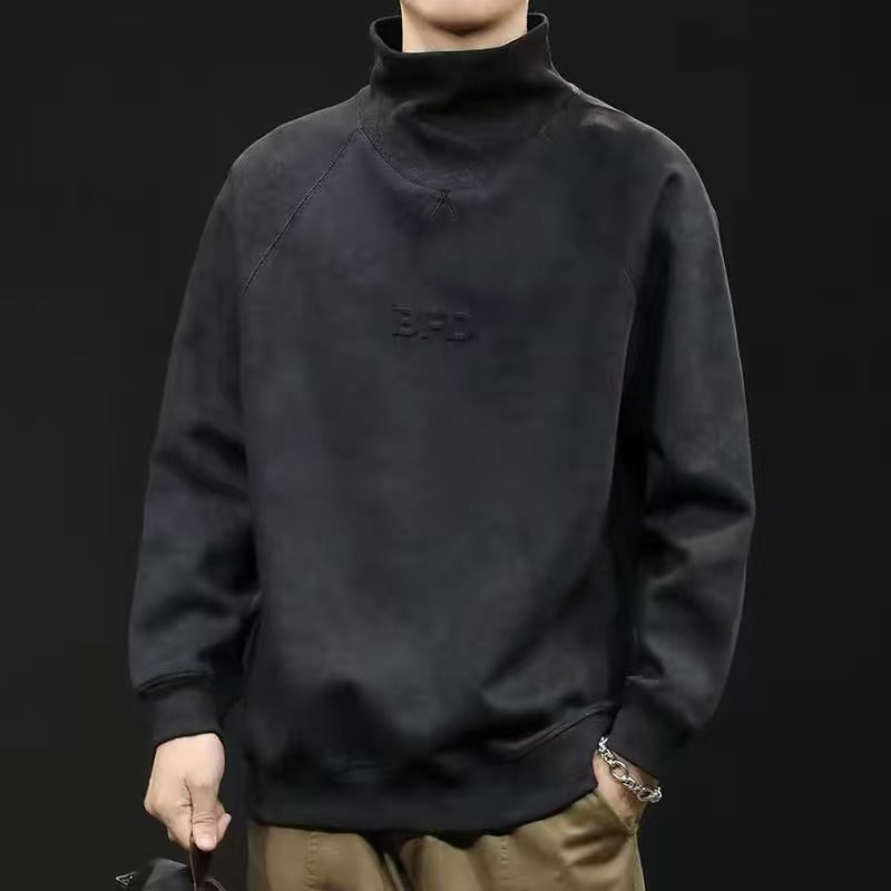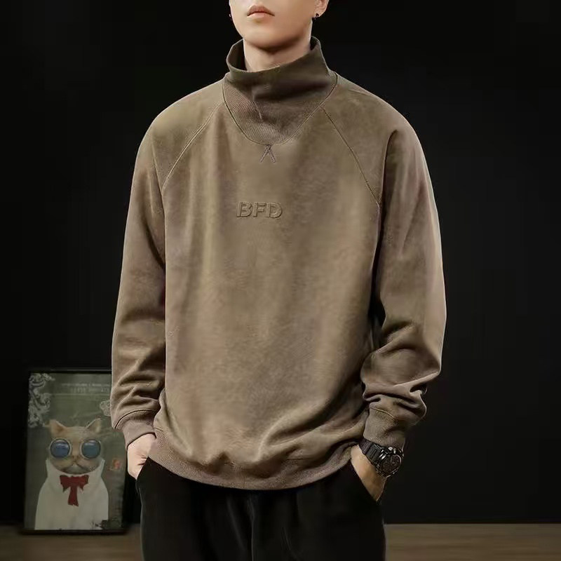 重磅美式半高領衛衣男春秋季加絨加厚潮牌寬鬆休閒套頭上衣打底衫