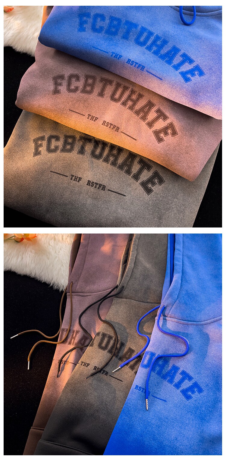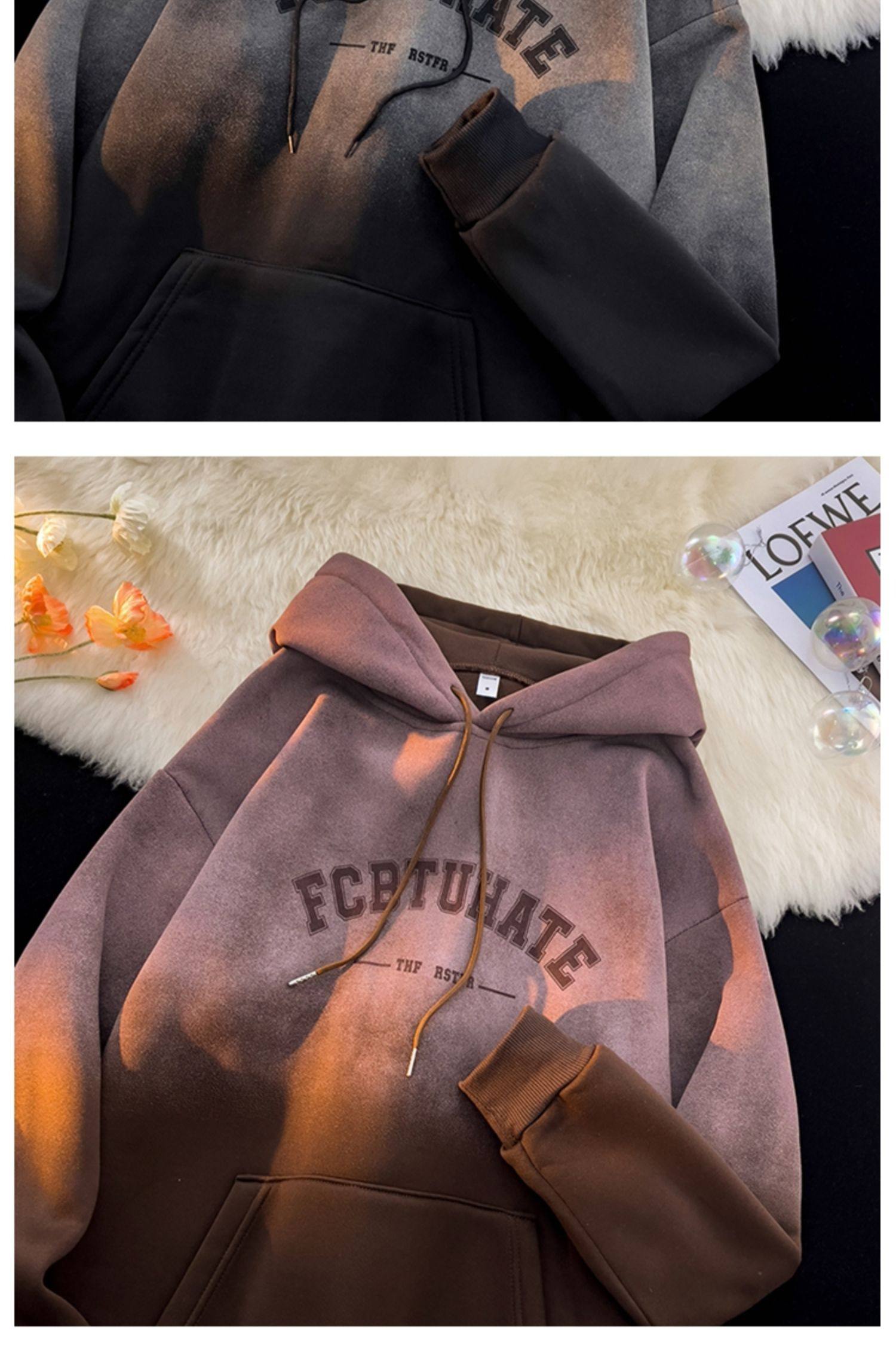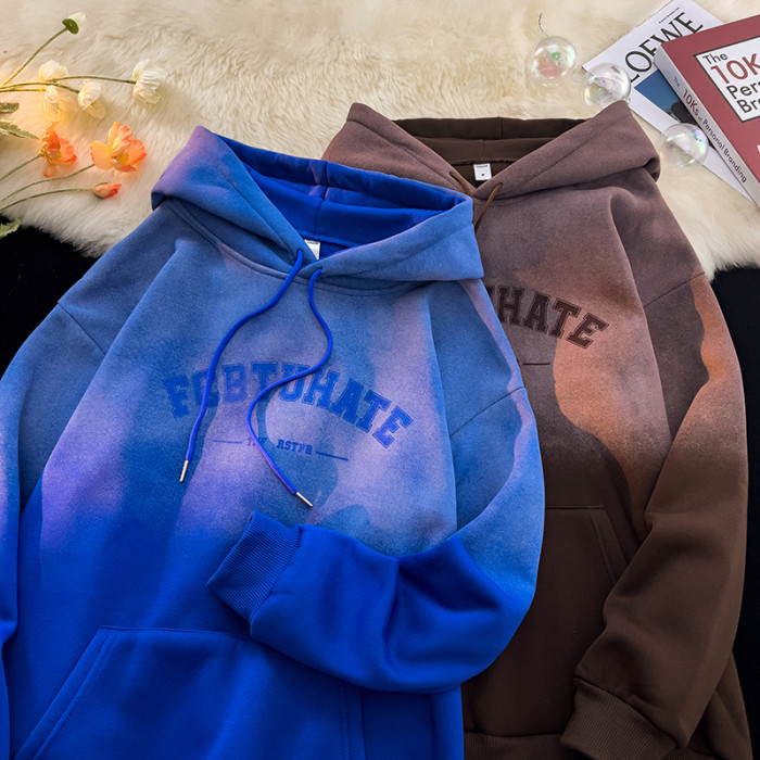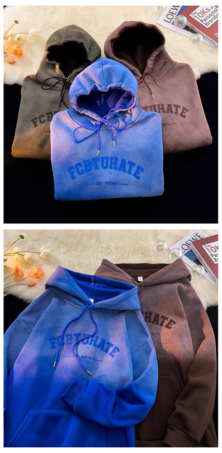 重磅紥染漸變衛衣男美式設計感復古連帽oversize外套秋冬加絨加厚