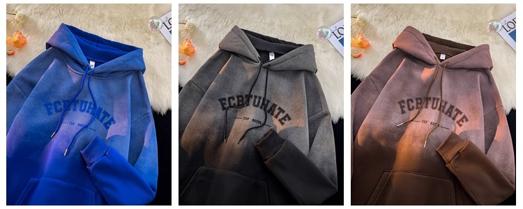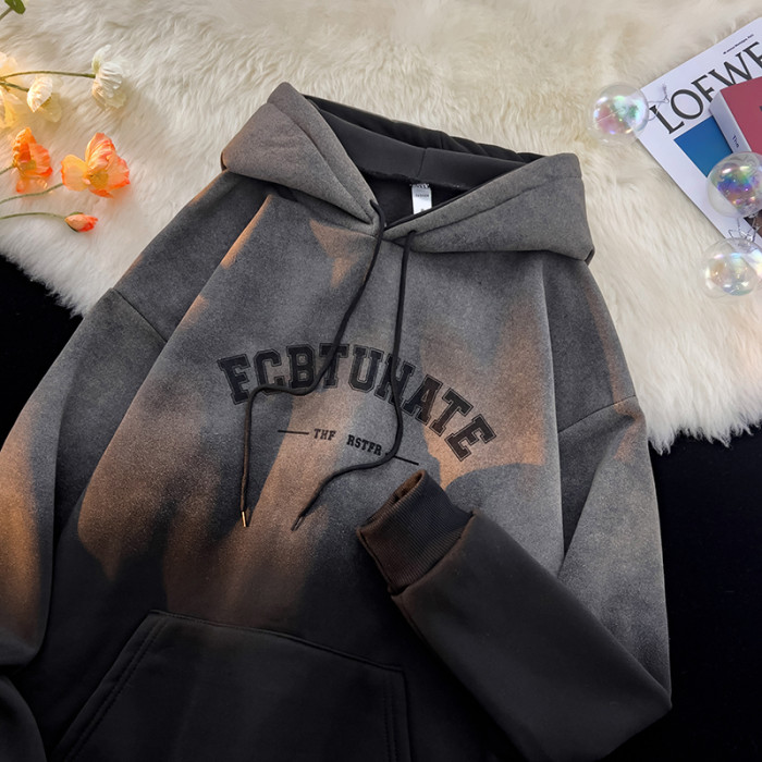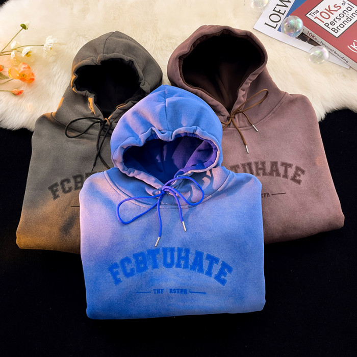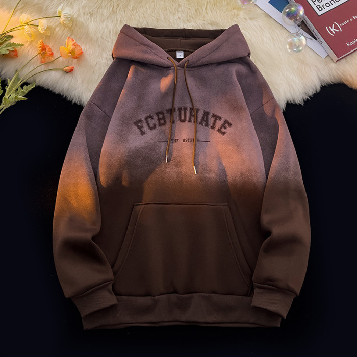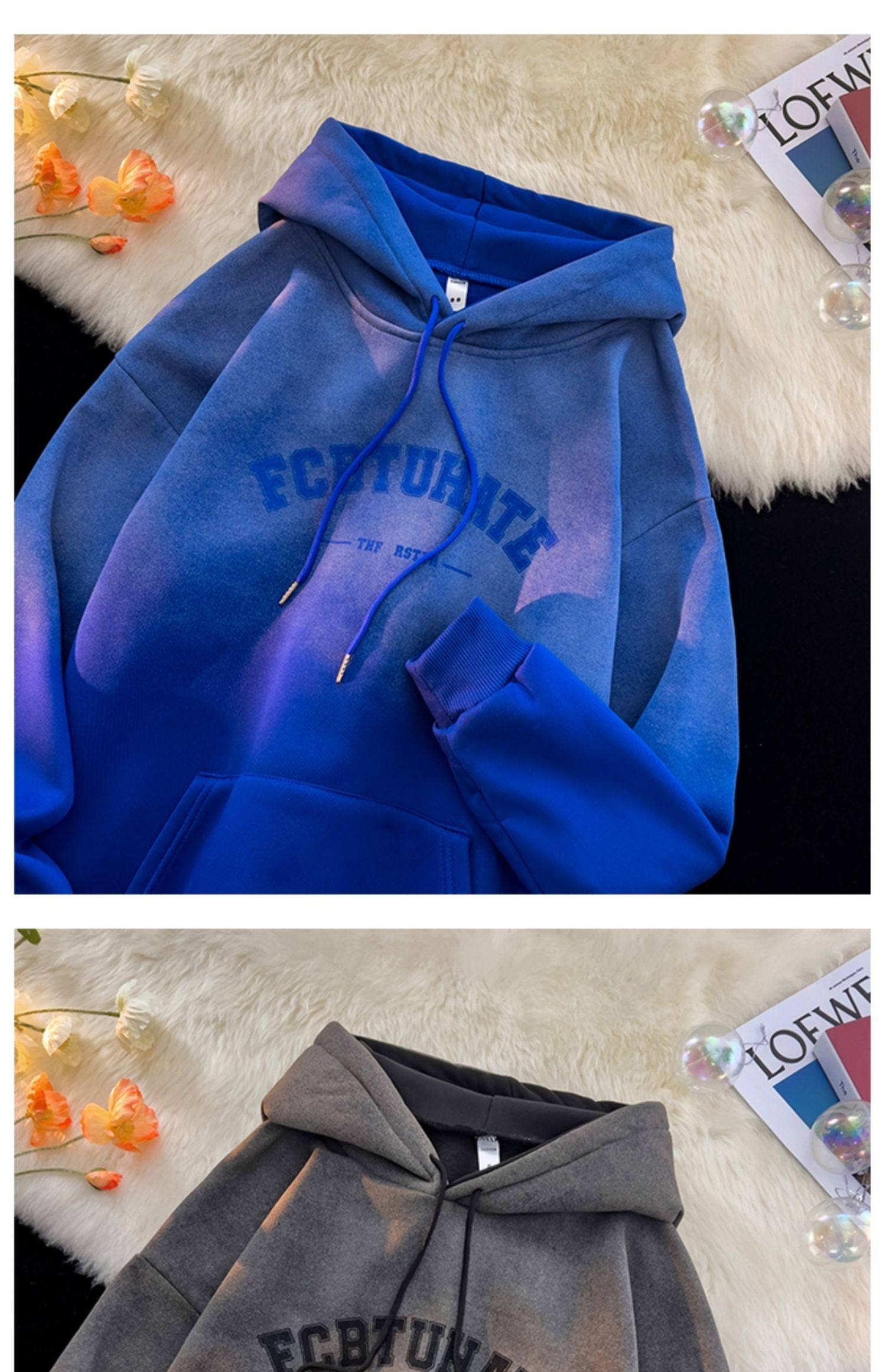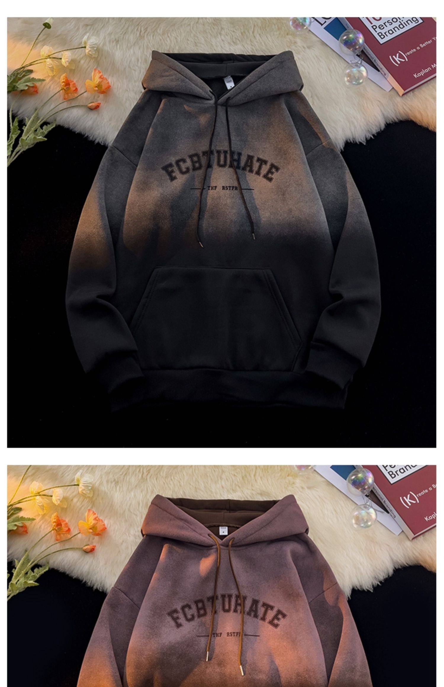 重磅紥染漸變衛衣男美式設計感復古連帽oversize外套秋冬加絨加厚