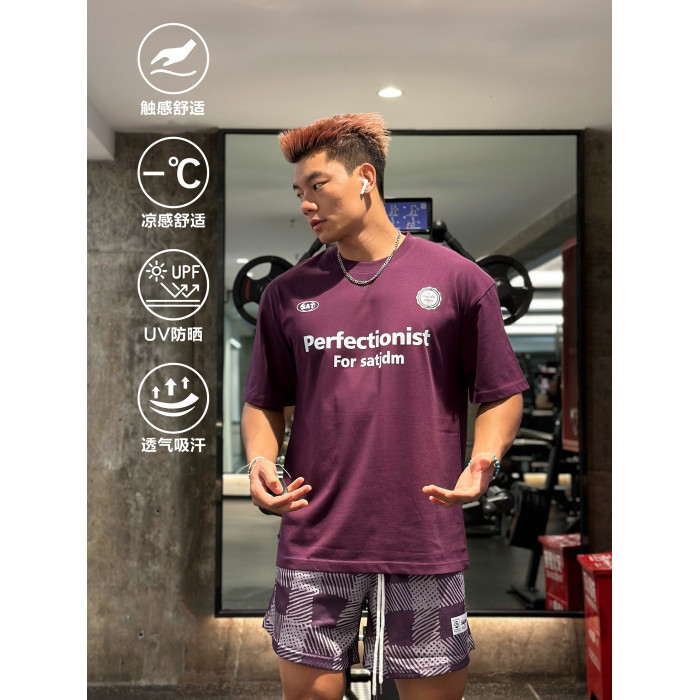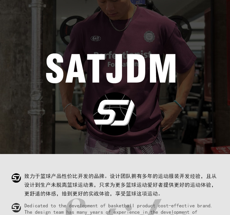 SATJDM美式復古運動涼感抗菌速乾T恤吸濕排汗訓練短袖260g國潮