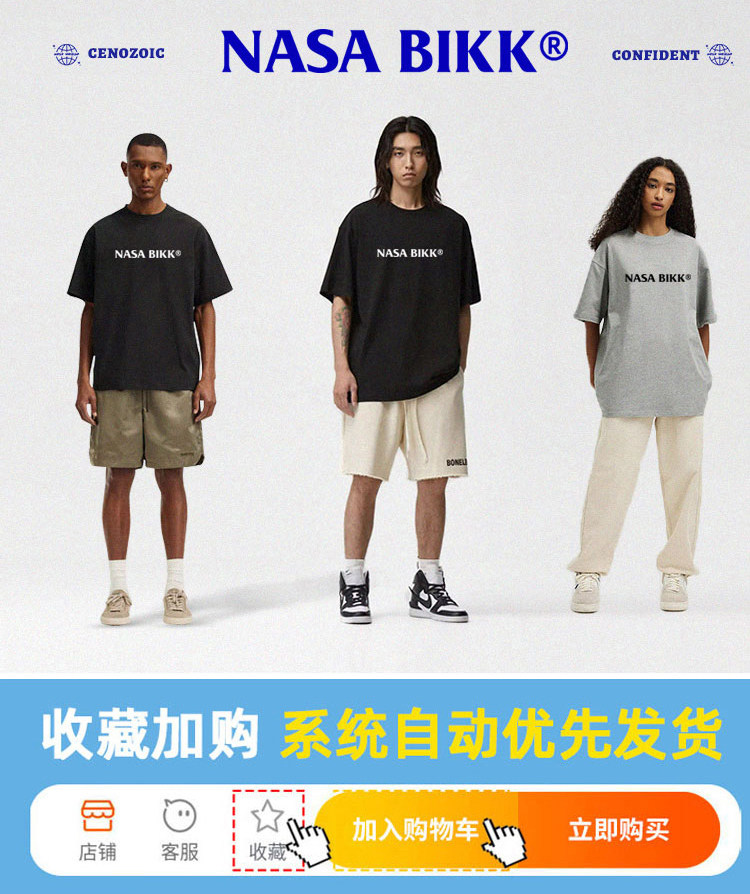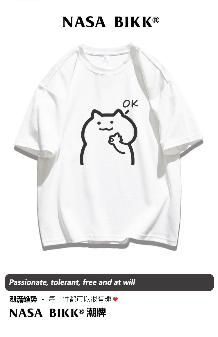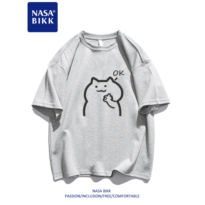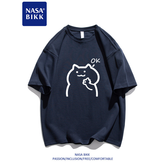 【OK】NASA純棉短袖t恤美式夏季男情侶圓領寬鬆百搭休閒五分半袖