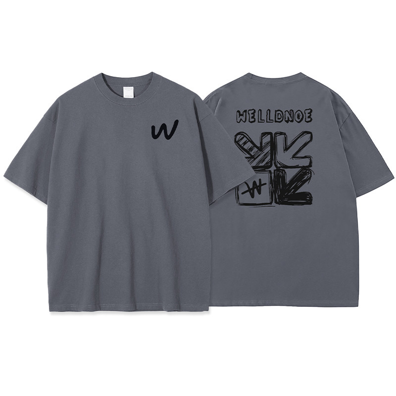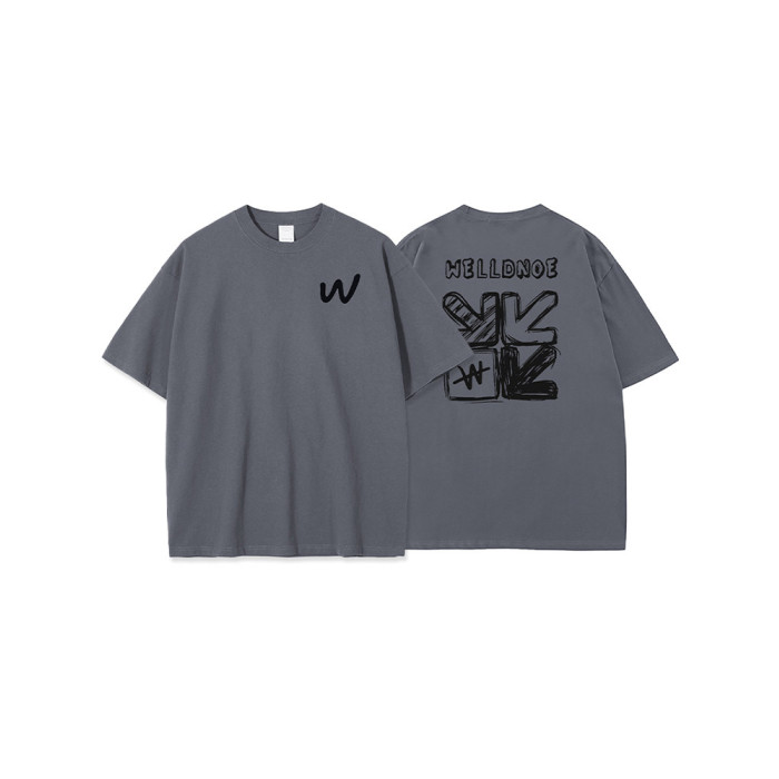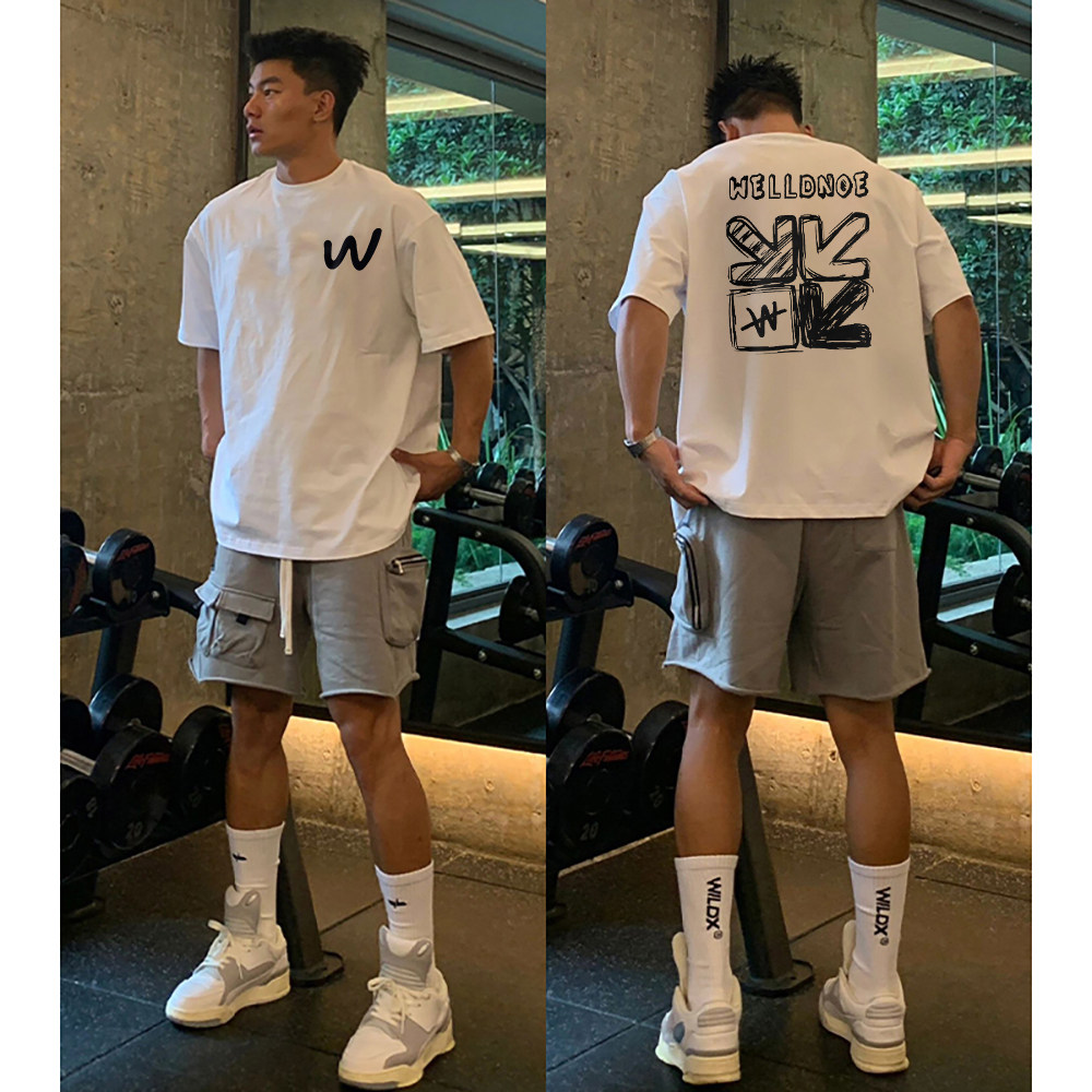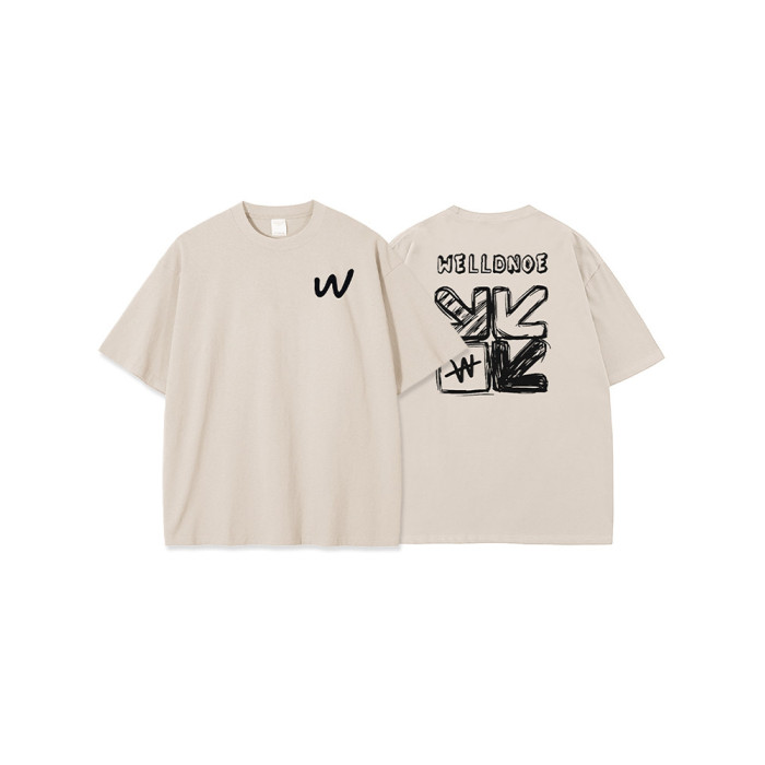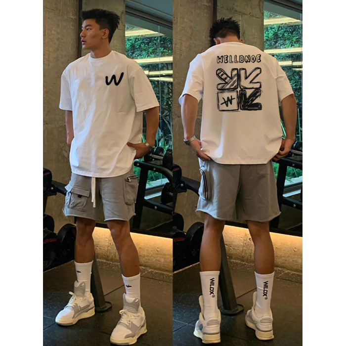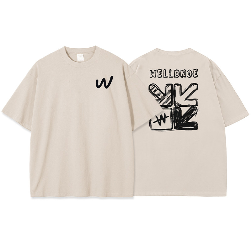 後背塗鴉印花短袖t恤男生潮牌夏季美式青少年高中生純棉白色上衣
