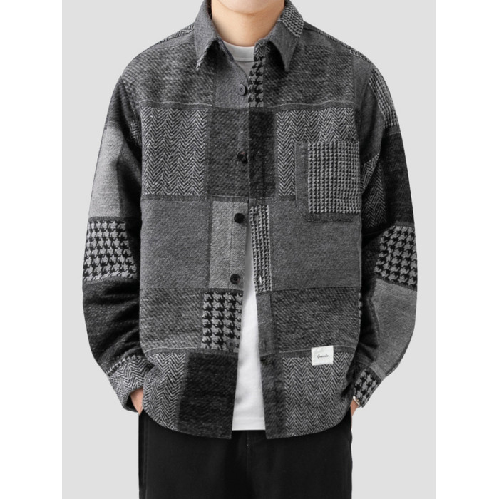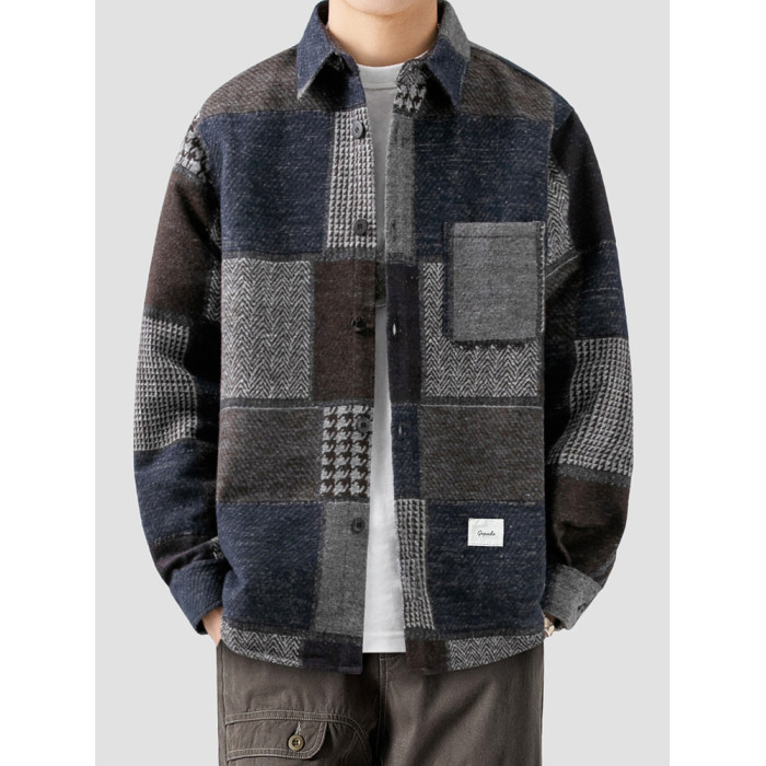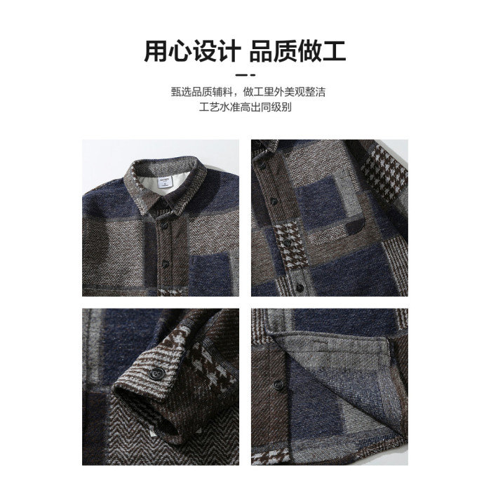 LAZY DAY原創男裝美式復古格子襯衫男士春秋季寬鬆休閒磨毛呢襯衣