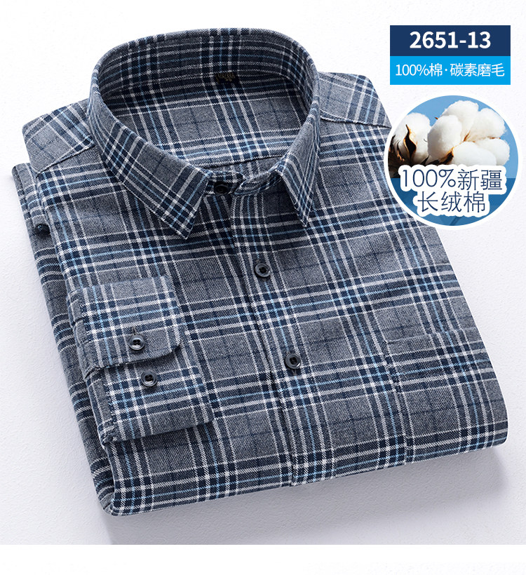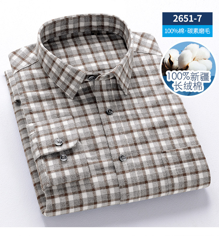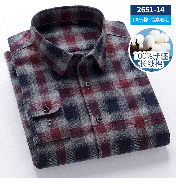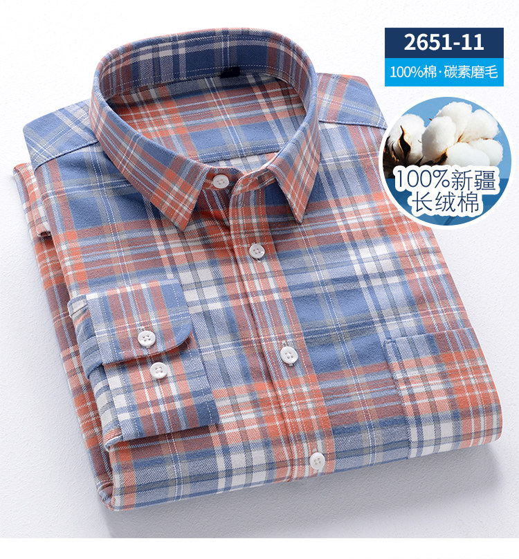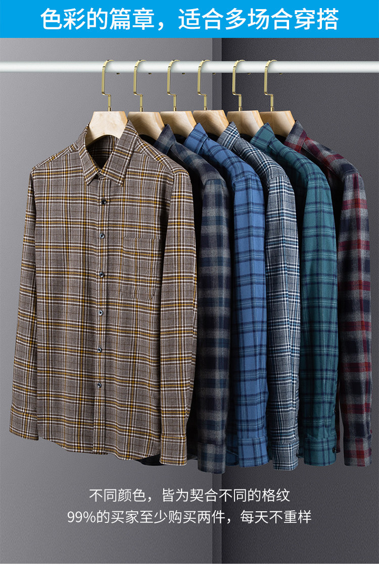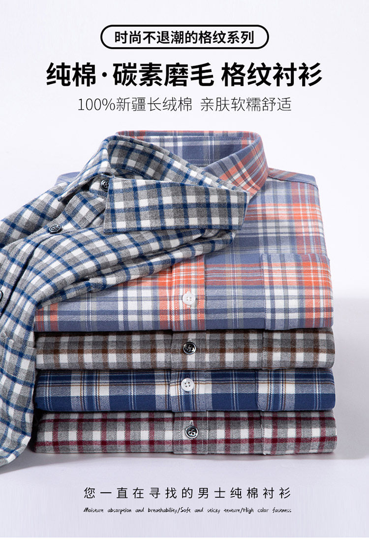 秋季新品男士純棉格子襯衫長袖磨毛日系復古修身中青年時尚上衣潮