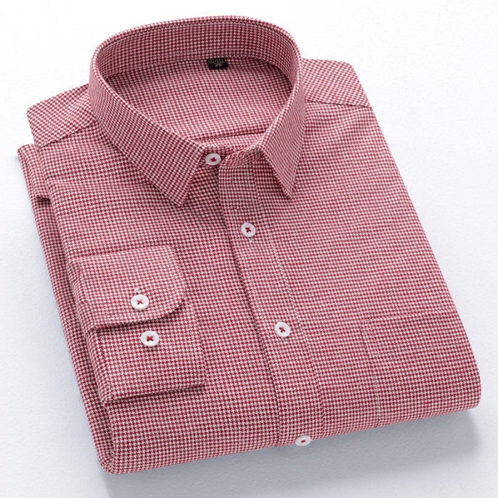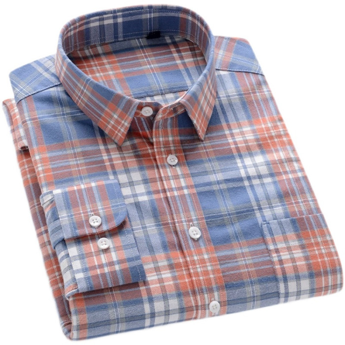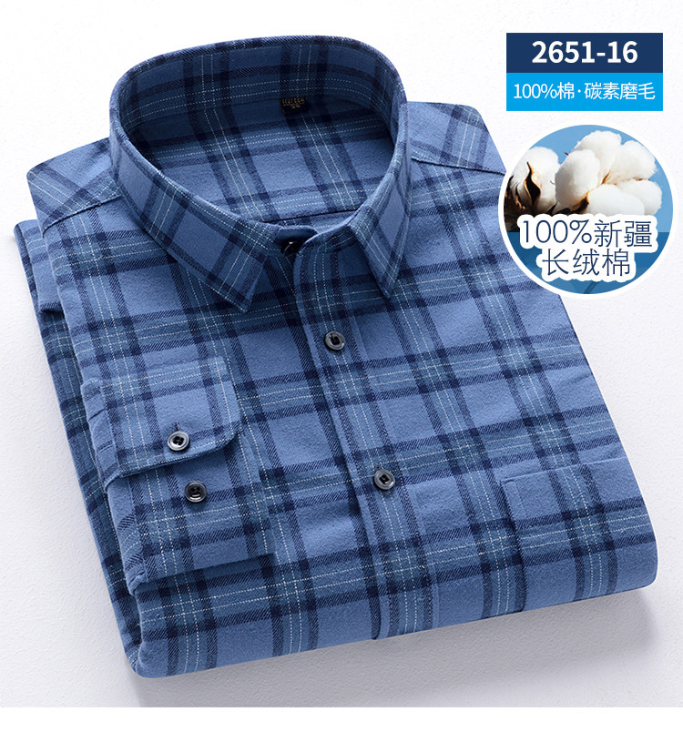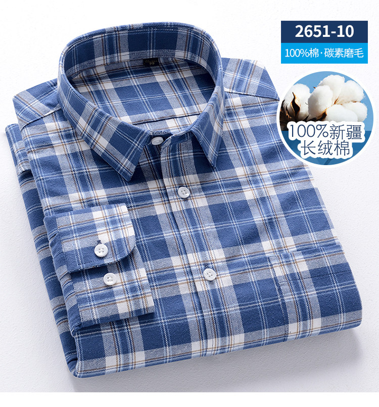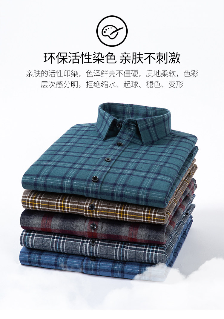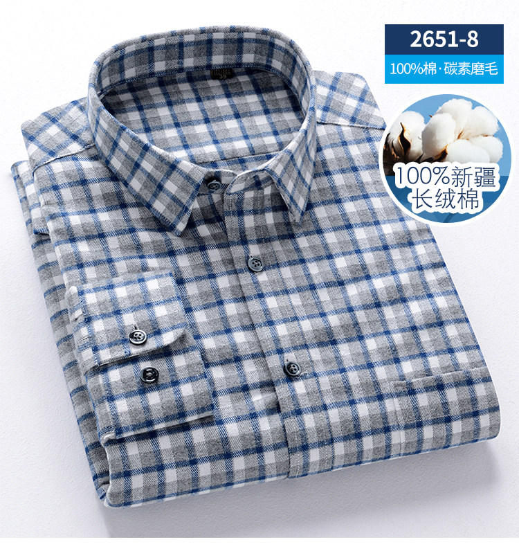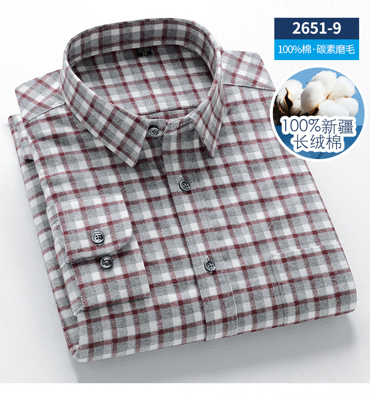 秋季新品男士純棉格子襯衫長袖磨毛日系復古修身中青年時尚上衣潮