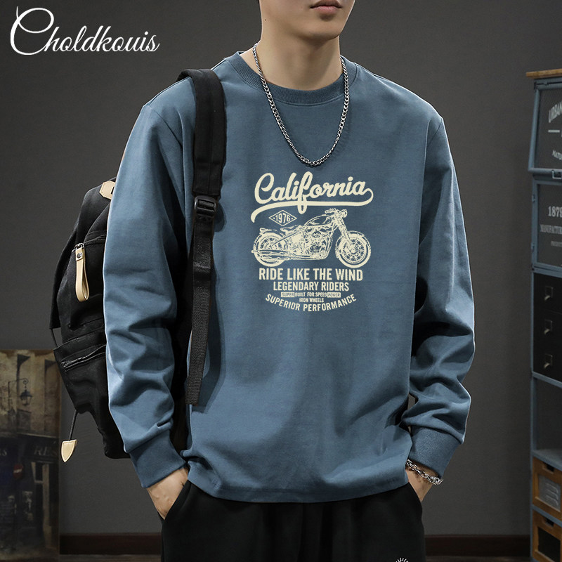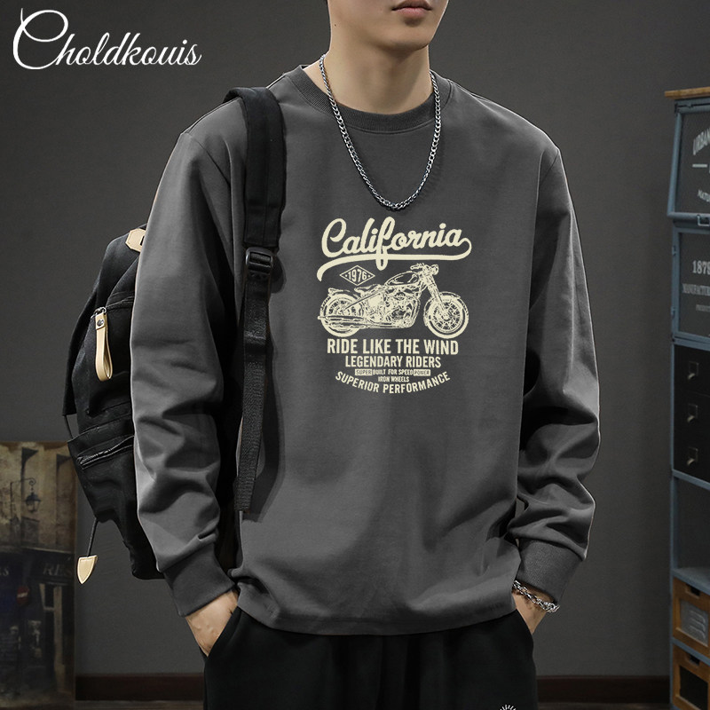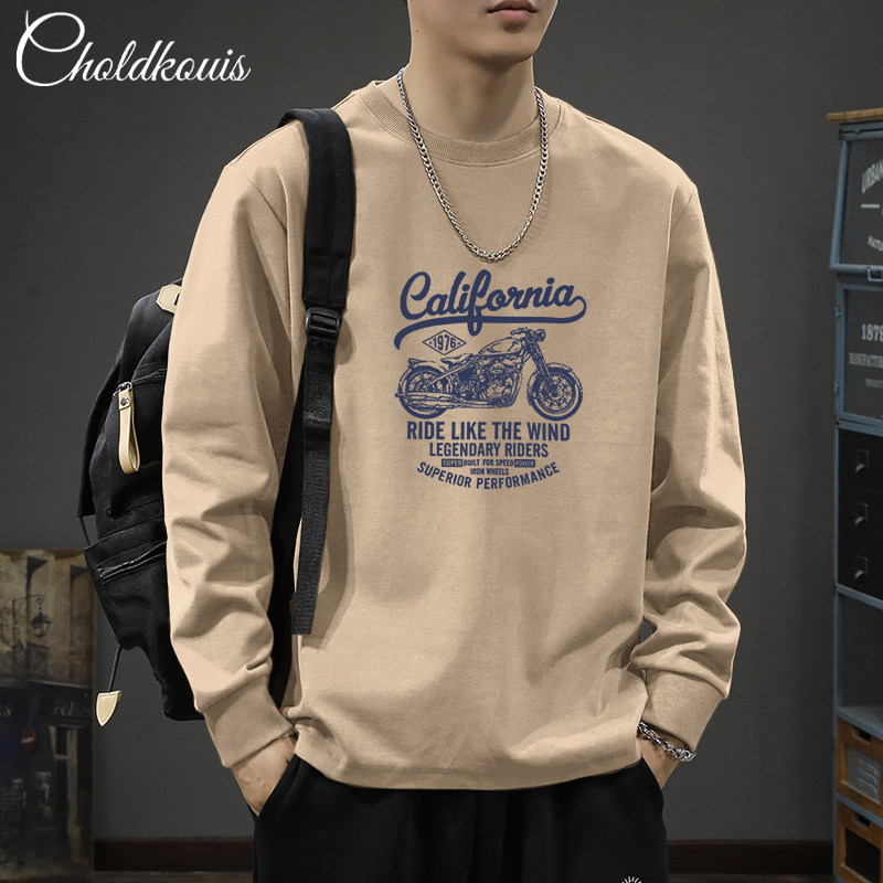260克純棉長袖t恤男士春秋季2026新款休閒百搭寬鬆休閒上衣打底衫