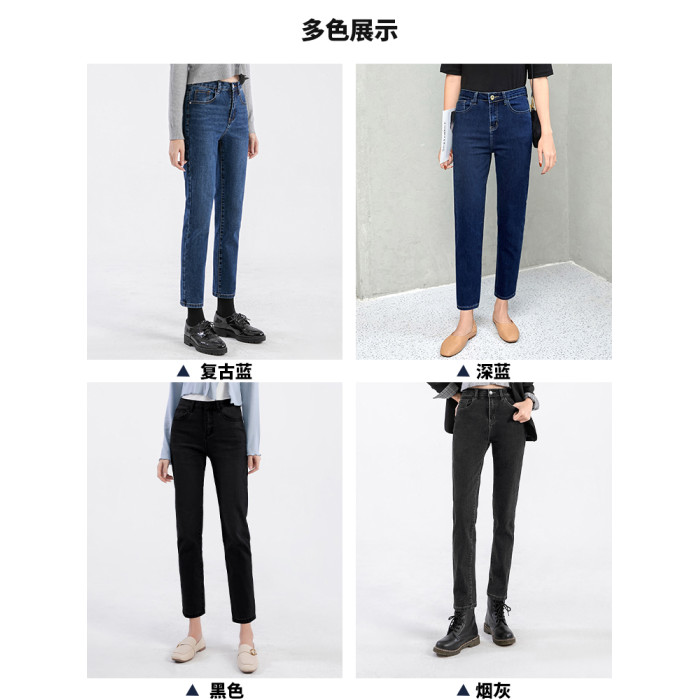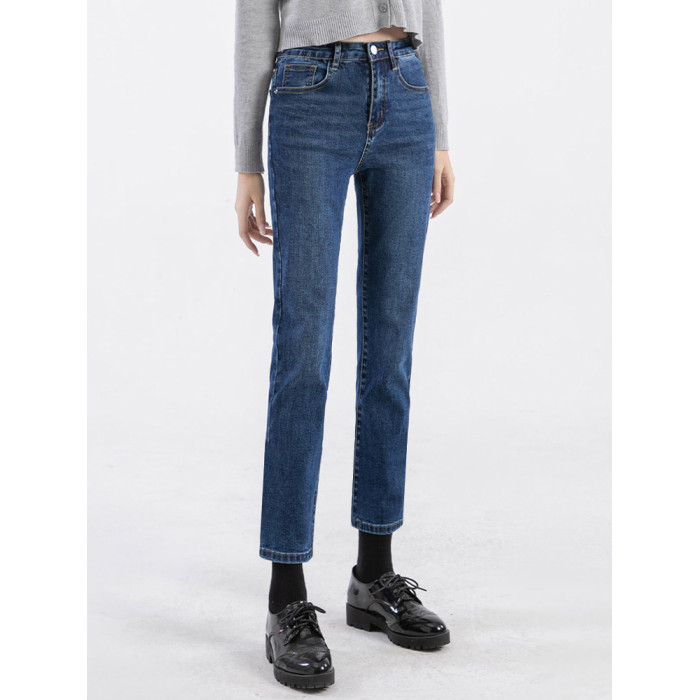 直筒牛仔褲女法式高腰薄絨2025春秋小個子九分褲菸琯褲法棍褲加絨