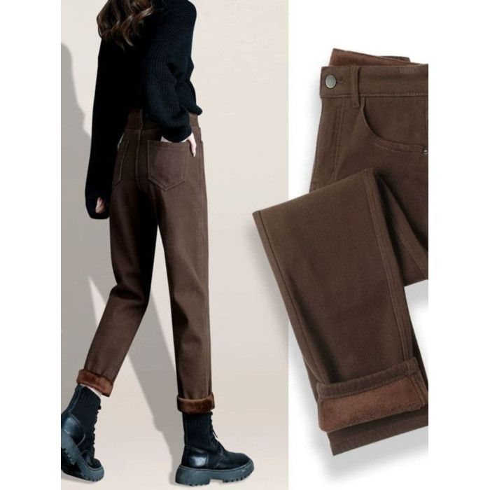 咖啡色牛仔褲女2026年春秋新款高腰顯瘦寬鬆彈力蘿蔔哈倫老爹褲子
