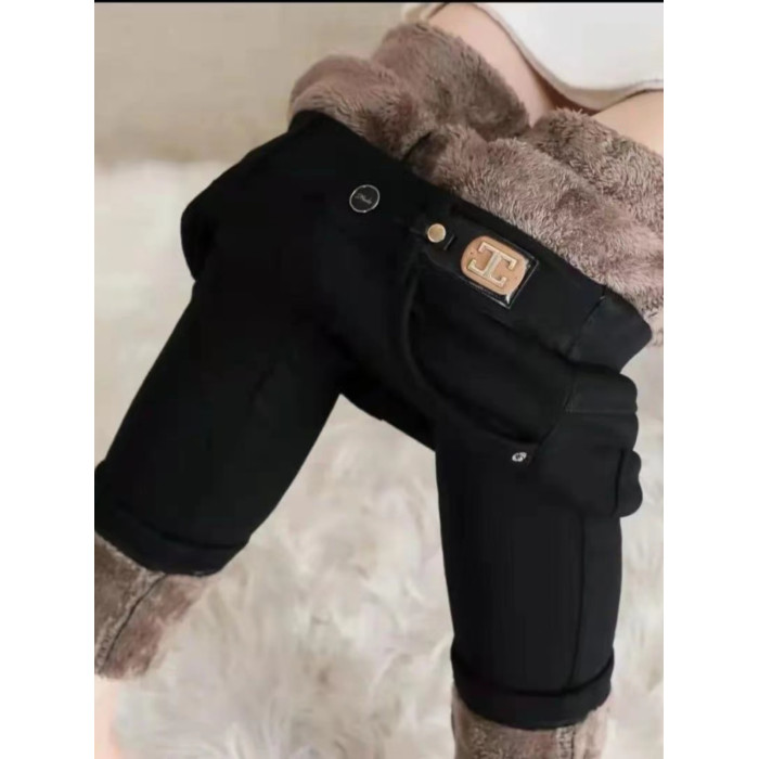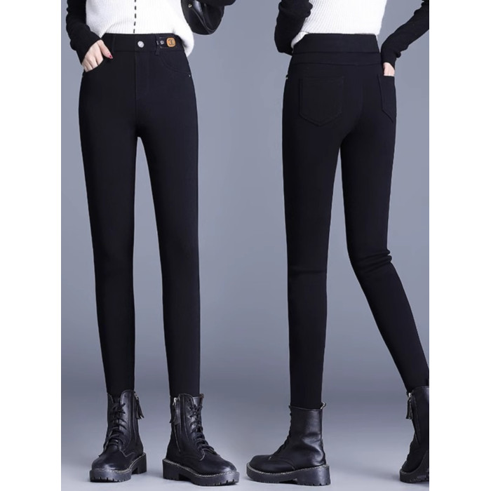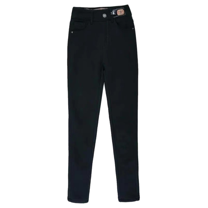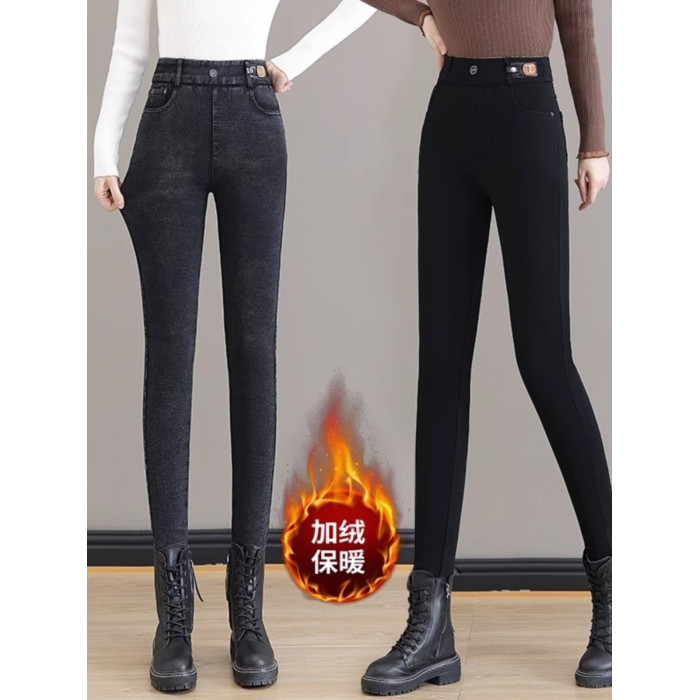 羊羔絨加厚牛仔褲女松緊腰大碼小腳褲胖mm顯瘦加絨冬季彈力鉛筆褲