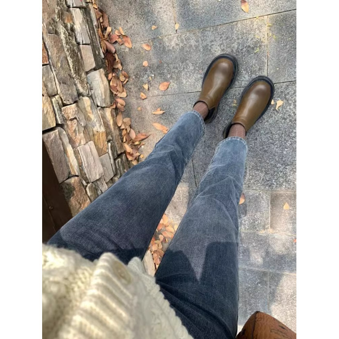 藍灰色直筒牛仔褲女2026春秋新款小個子女士秋冬加絨爆款菸琯褲子