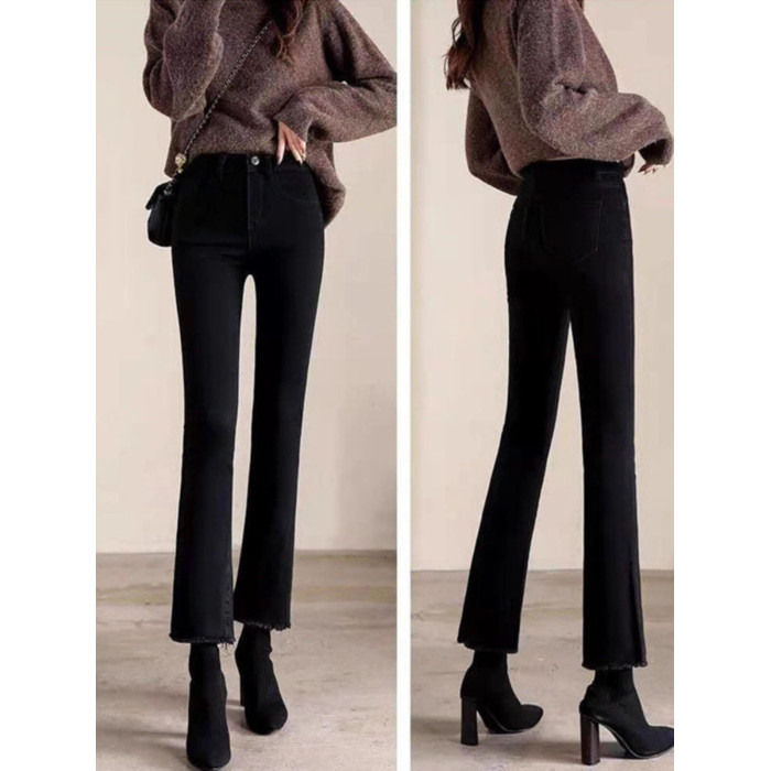 高腰微喇牛仔褲女2026年春秋新款爆款秋冬加絨小個子女士喇叭褲子