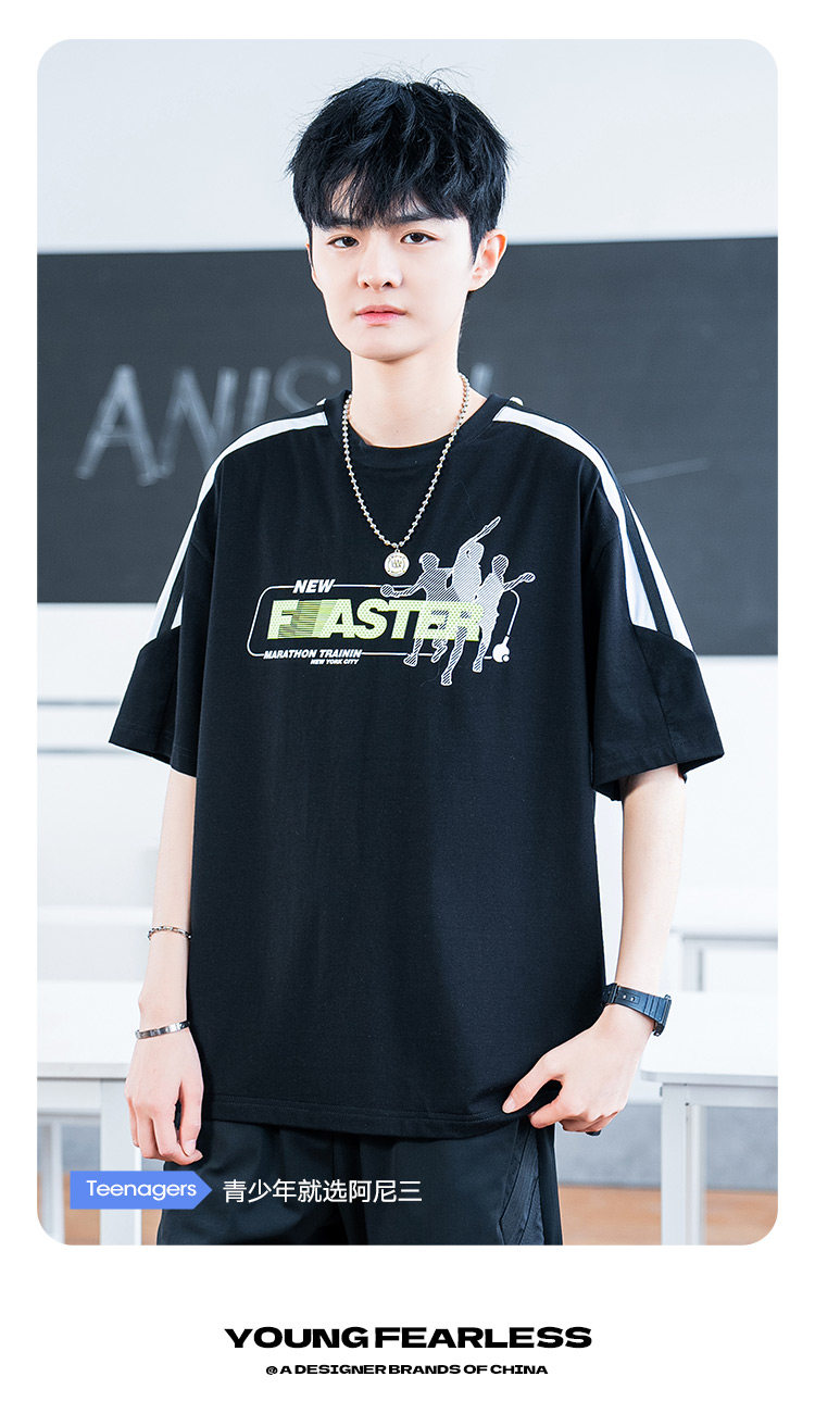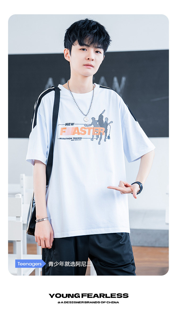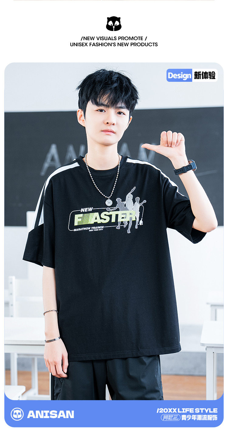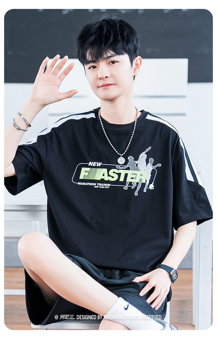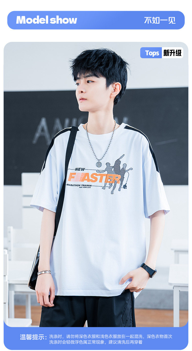 短袖男t恤夏季百搭青少年2026新款潮流休閒初中高中學生棉質體恤