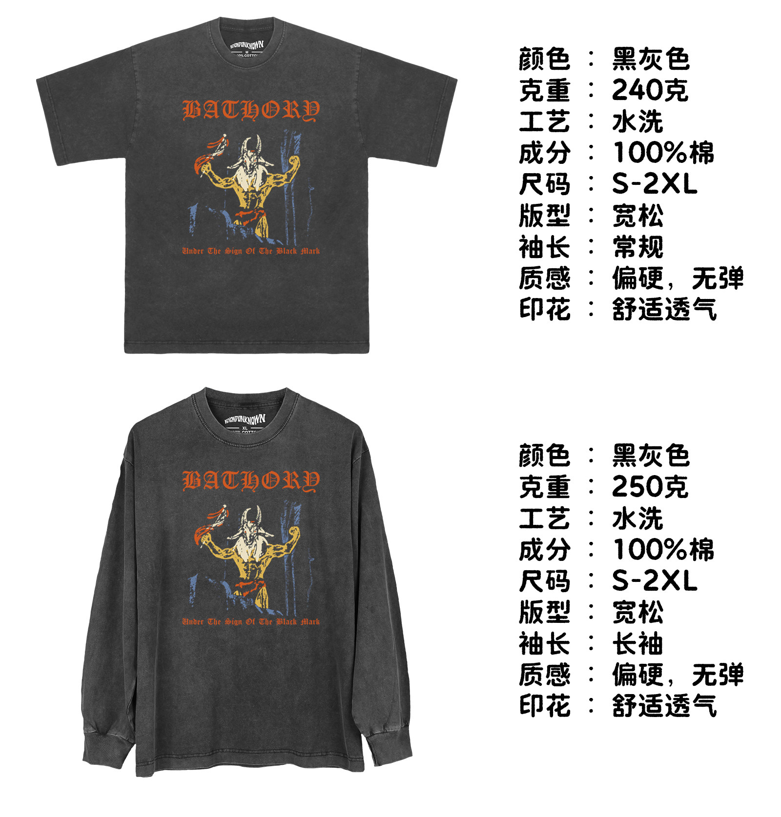 Bathory黑金屬樂隊短袖純棉水洗長袖圓領Burzum Venom日常男T恤