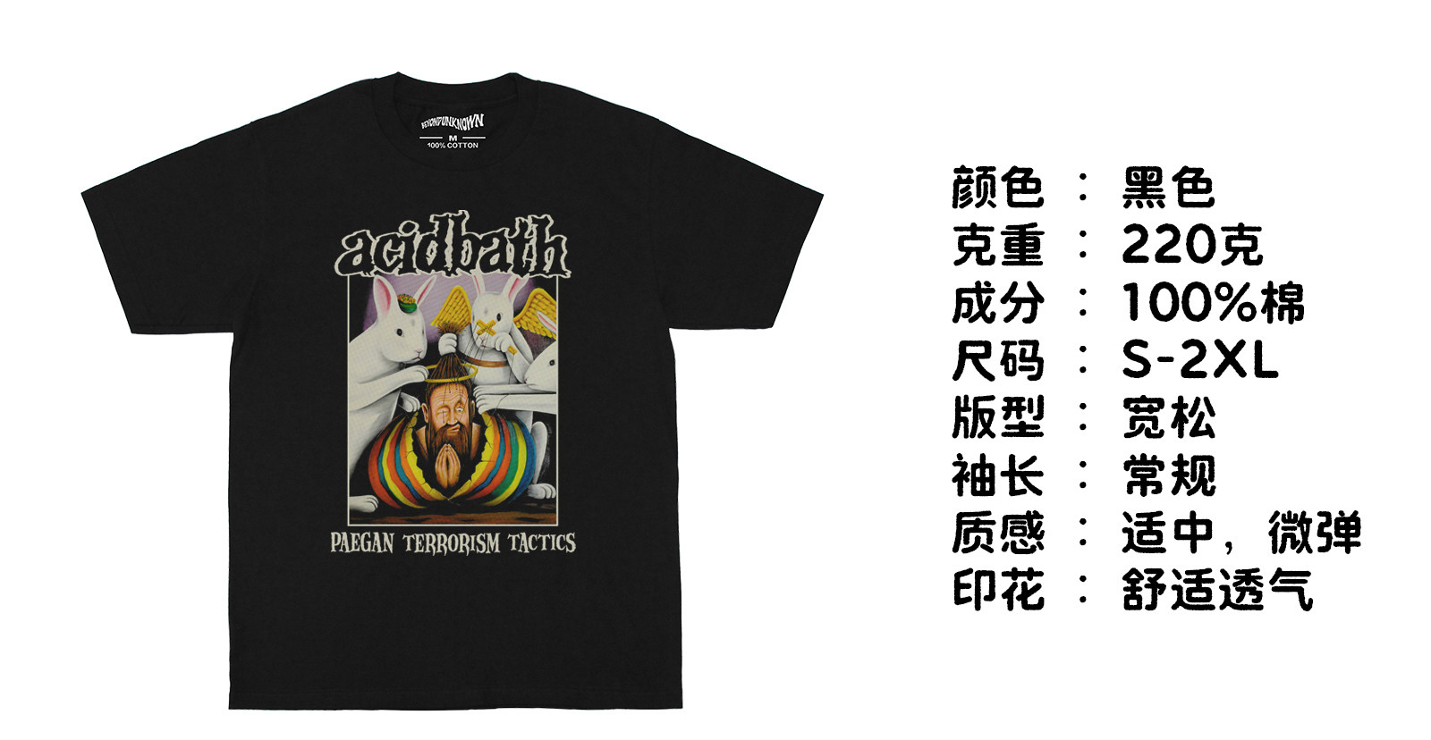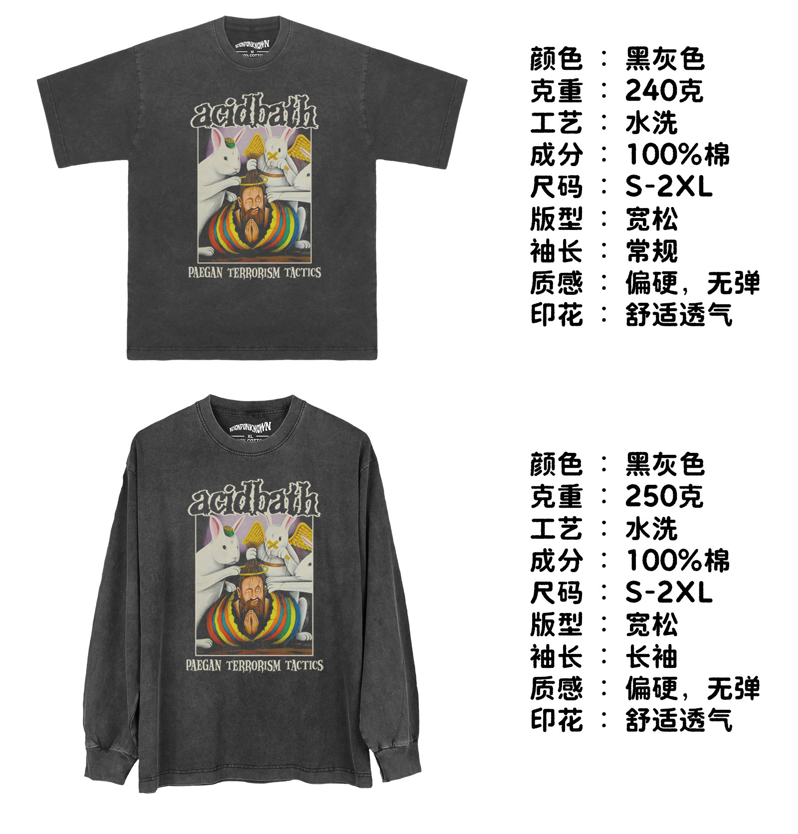 Acid Bath酸浴歐美石人泥漿重金屬搖滾樂隊短袖純棉水洗印花男T恤