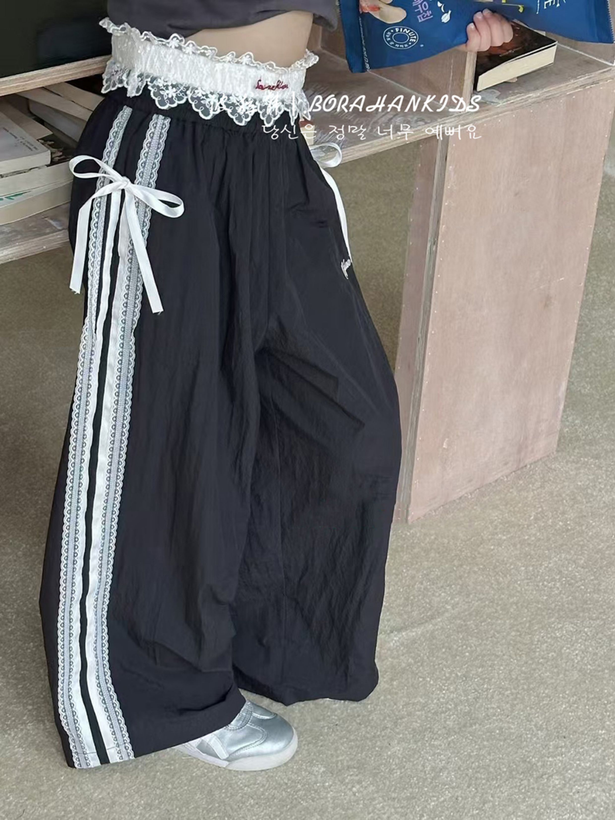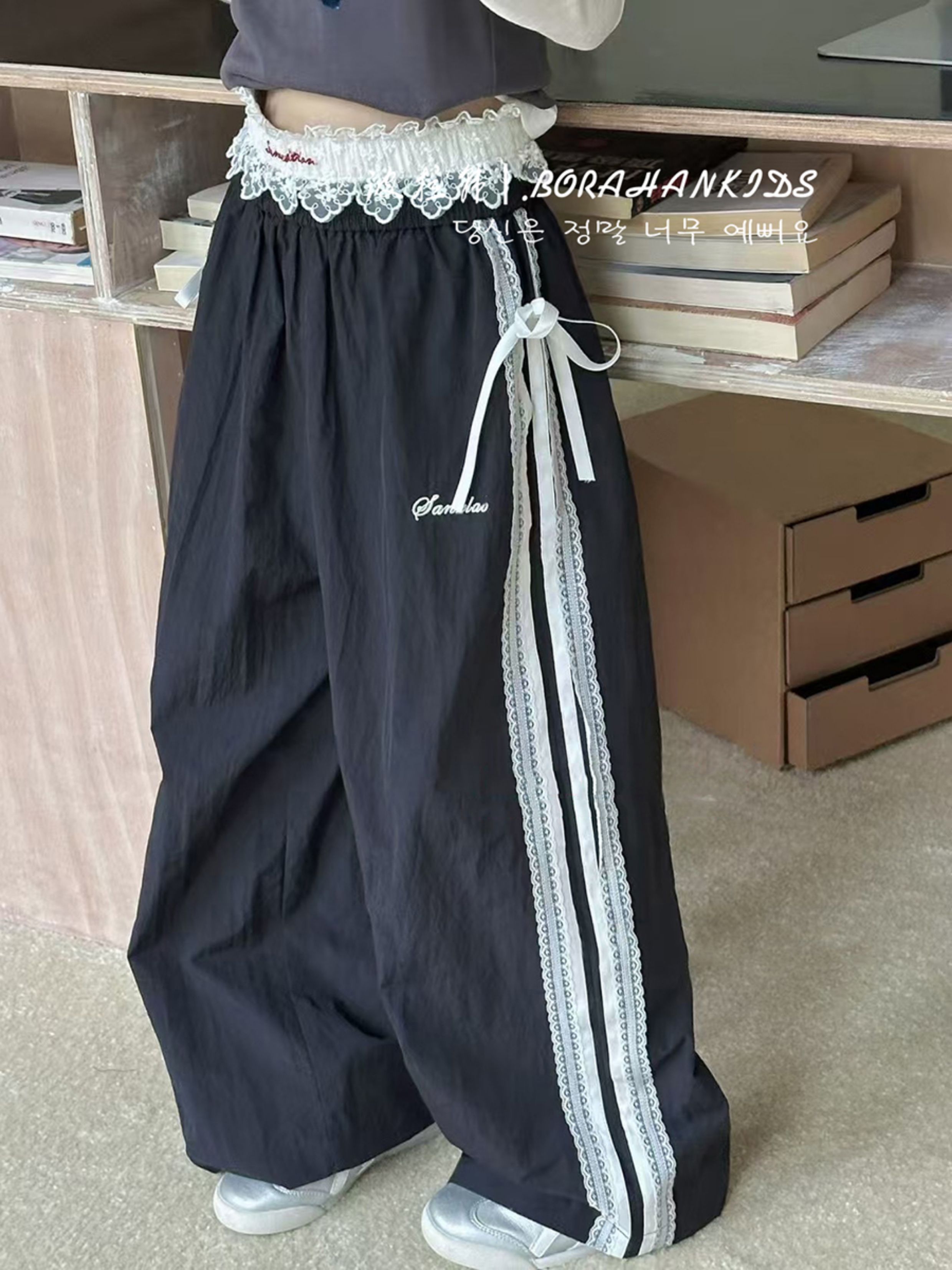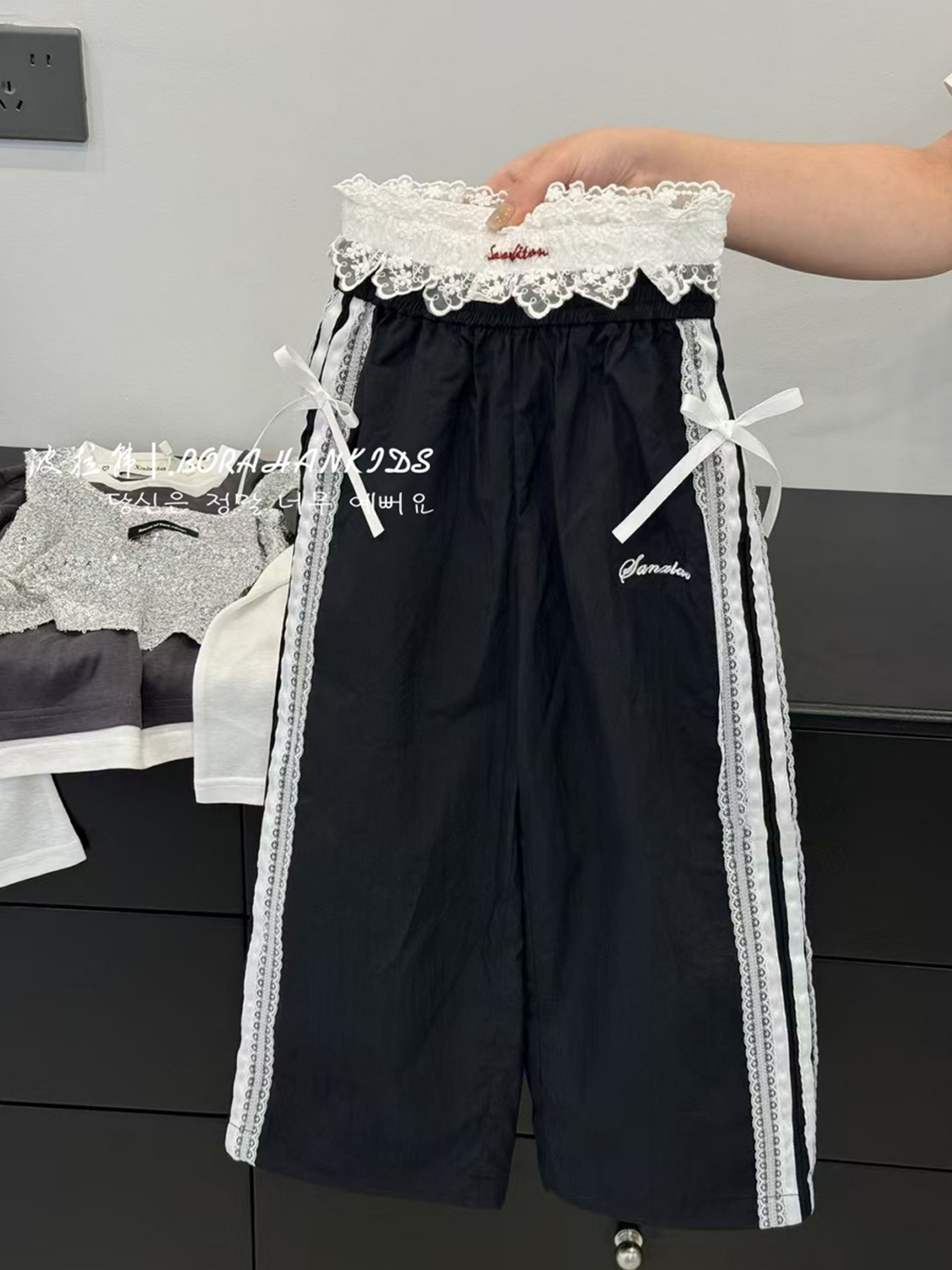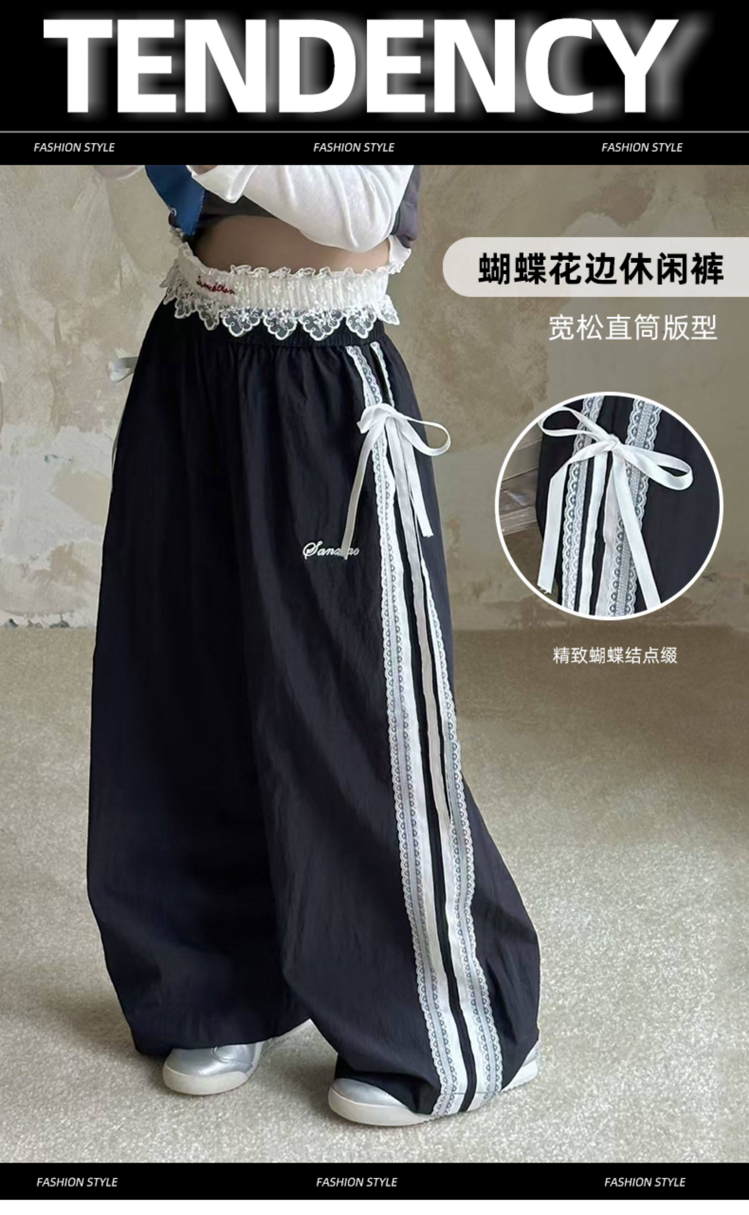 波拉韓女童蝴蝶褲夏季兒童2025款直筒蕾絲花邊褲中大童寬松休閒褲