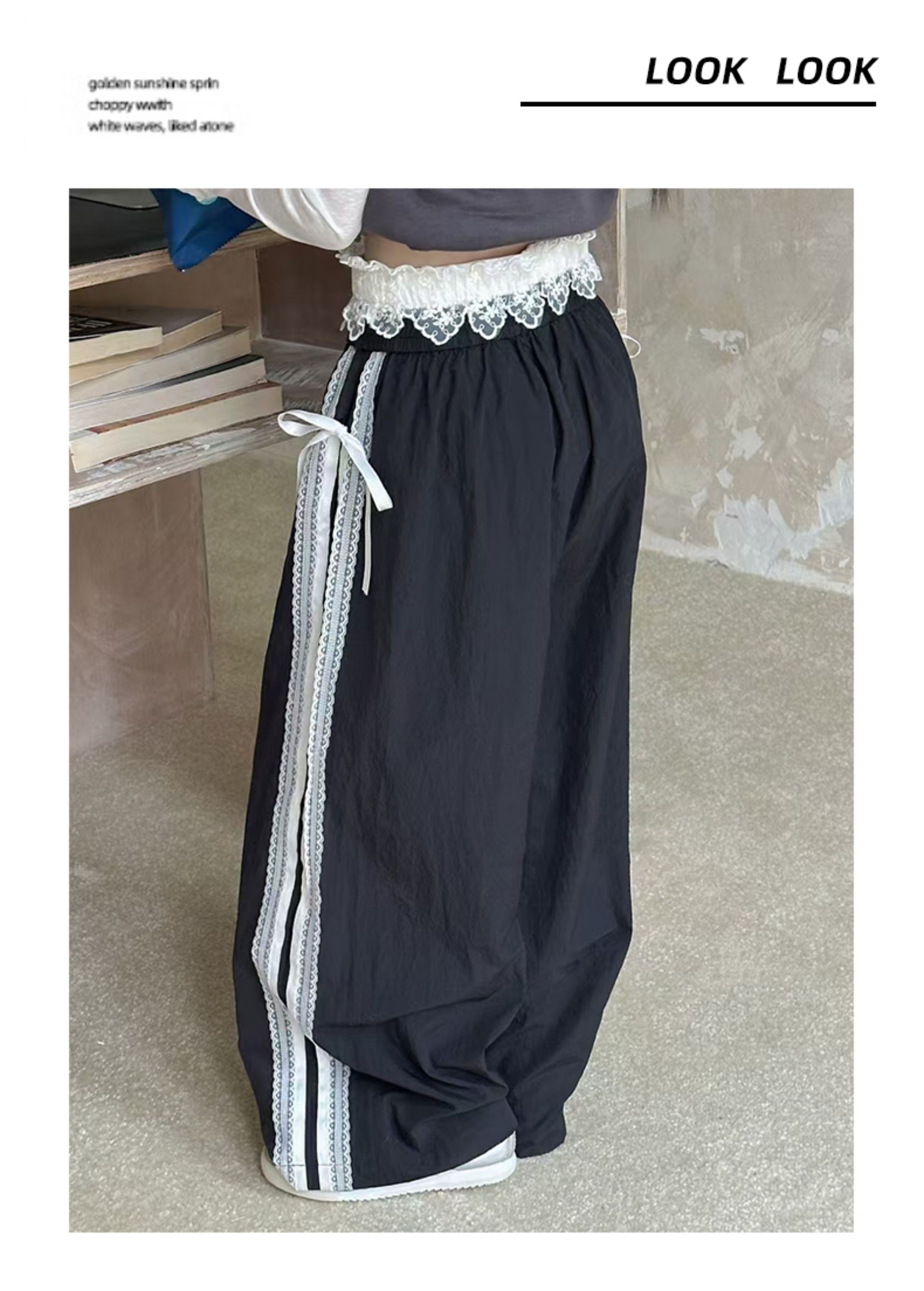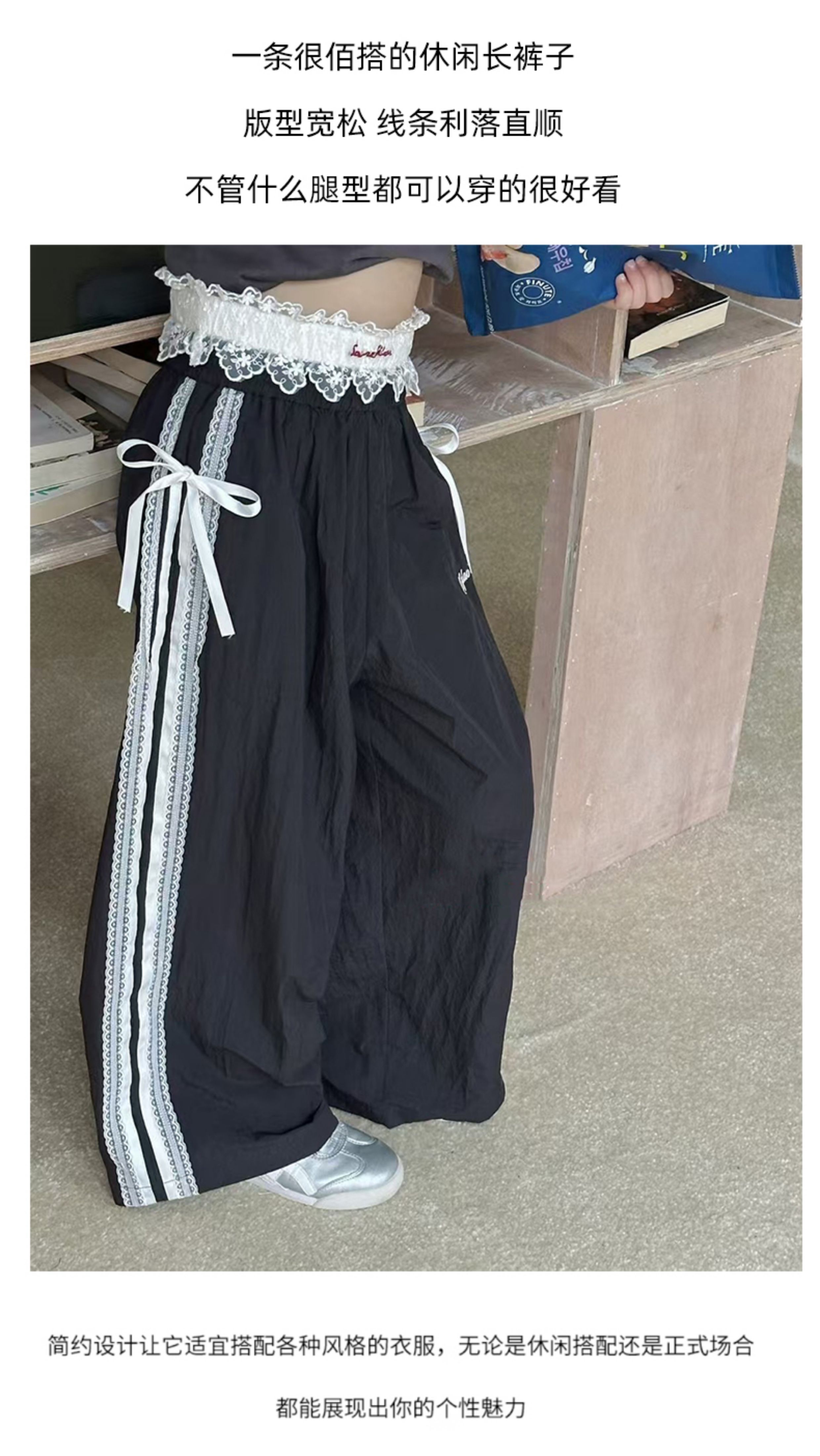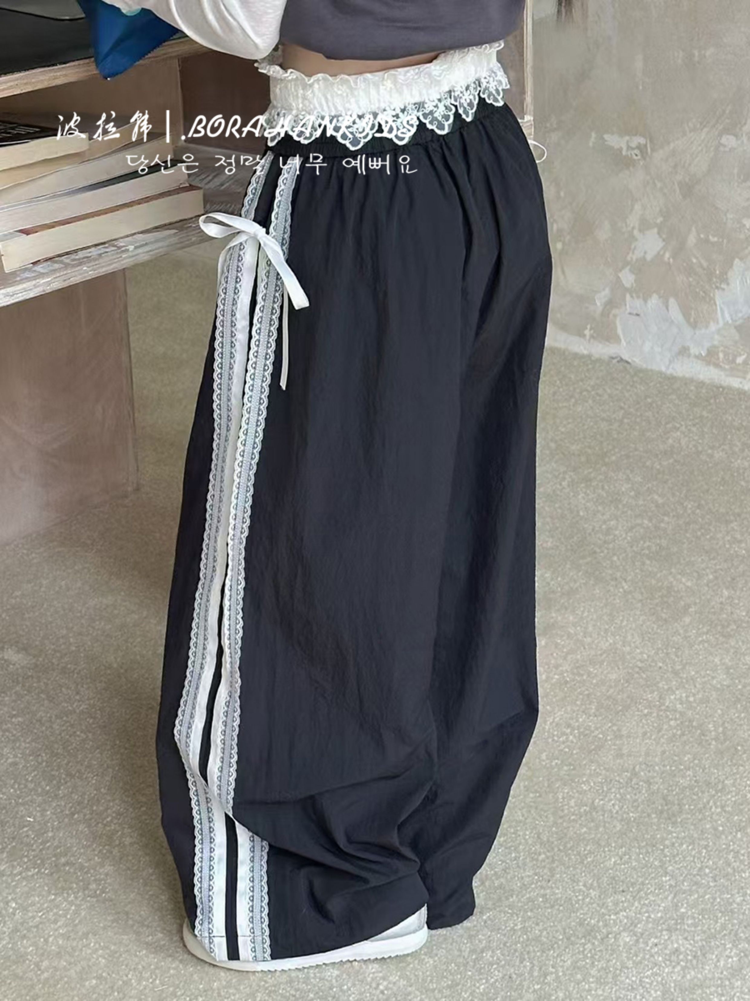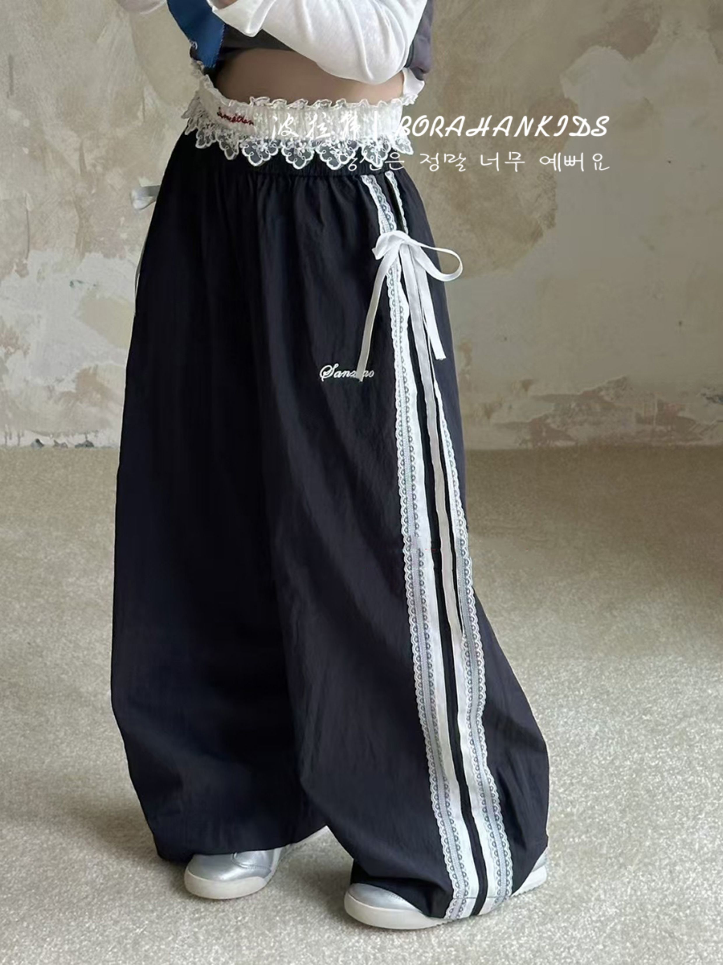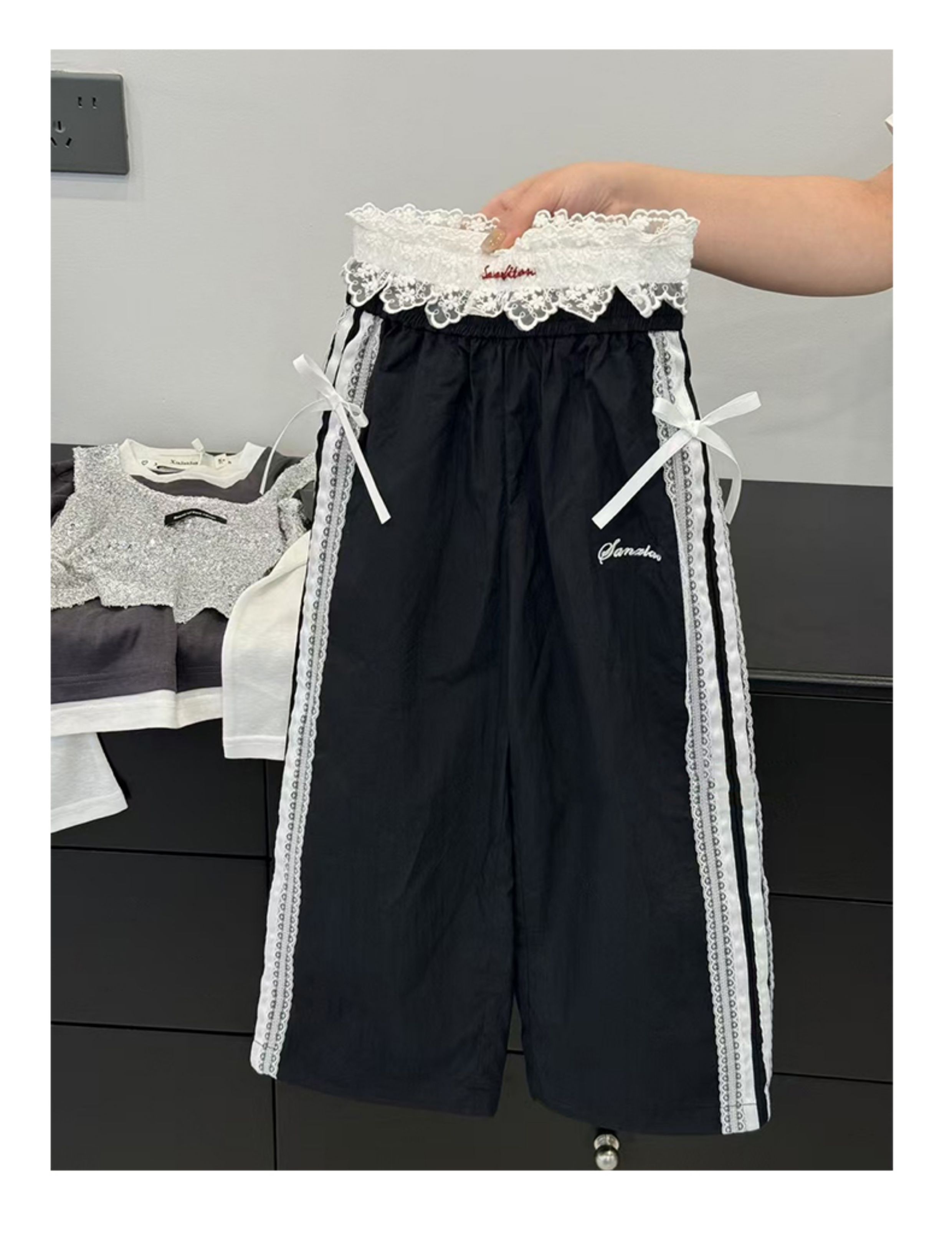 波拉韓女童蝴蝶褲夏季兒童2025款直筒蕾絲花邊褲中大童寬松休閒褲