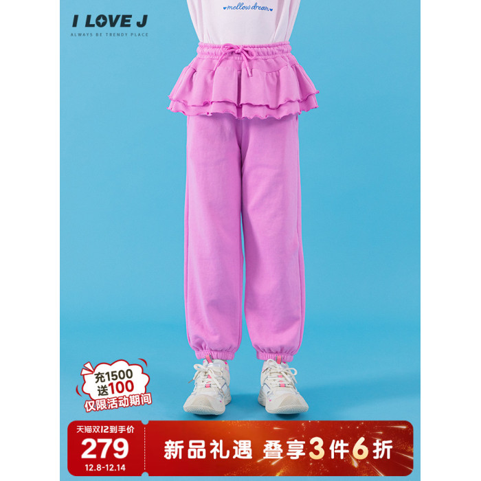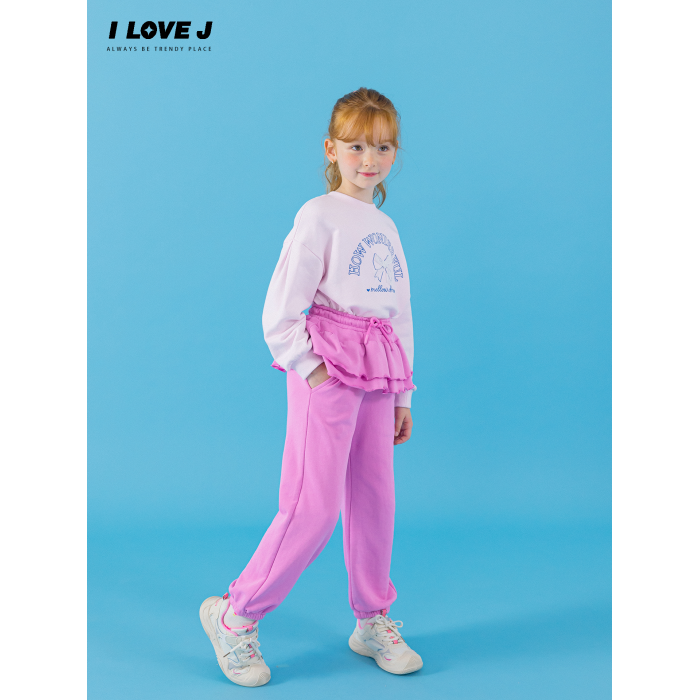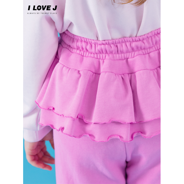 ILOVEJ韓國童裝2025秋季女童雙層荷葉邊高腰束腳運動褲/JXFPT17
