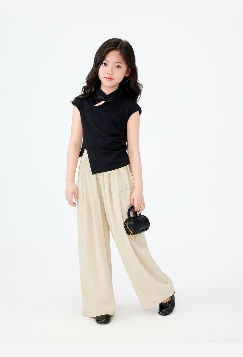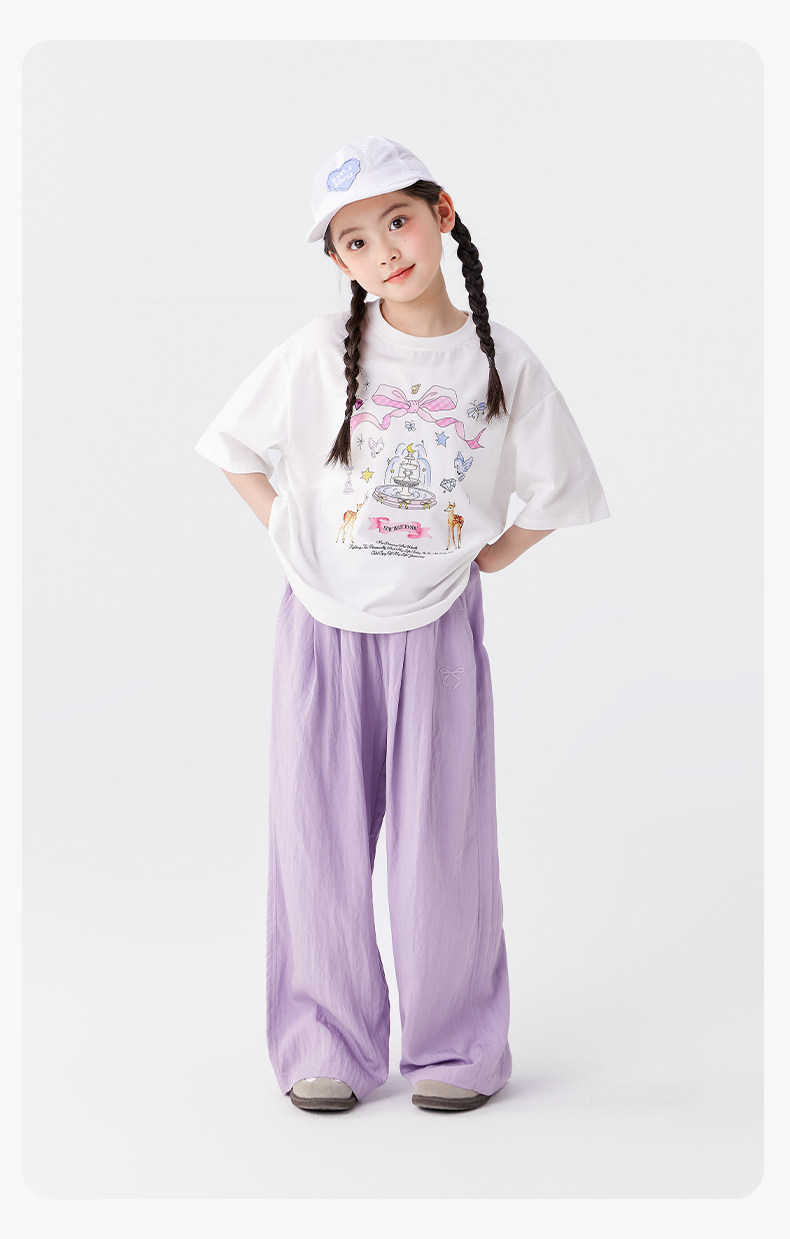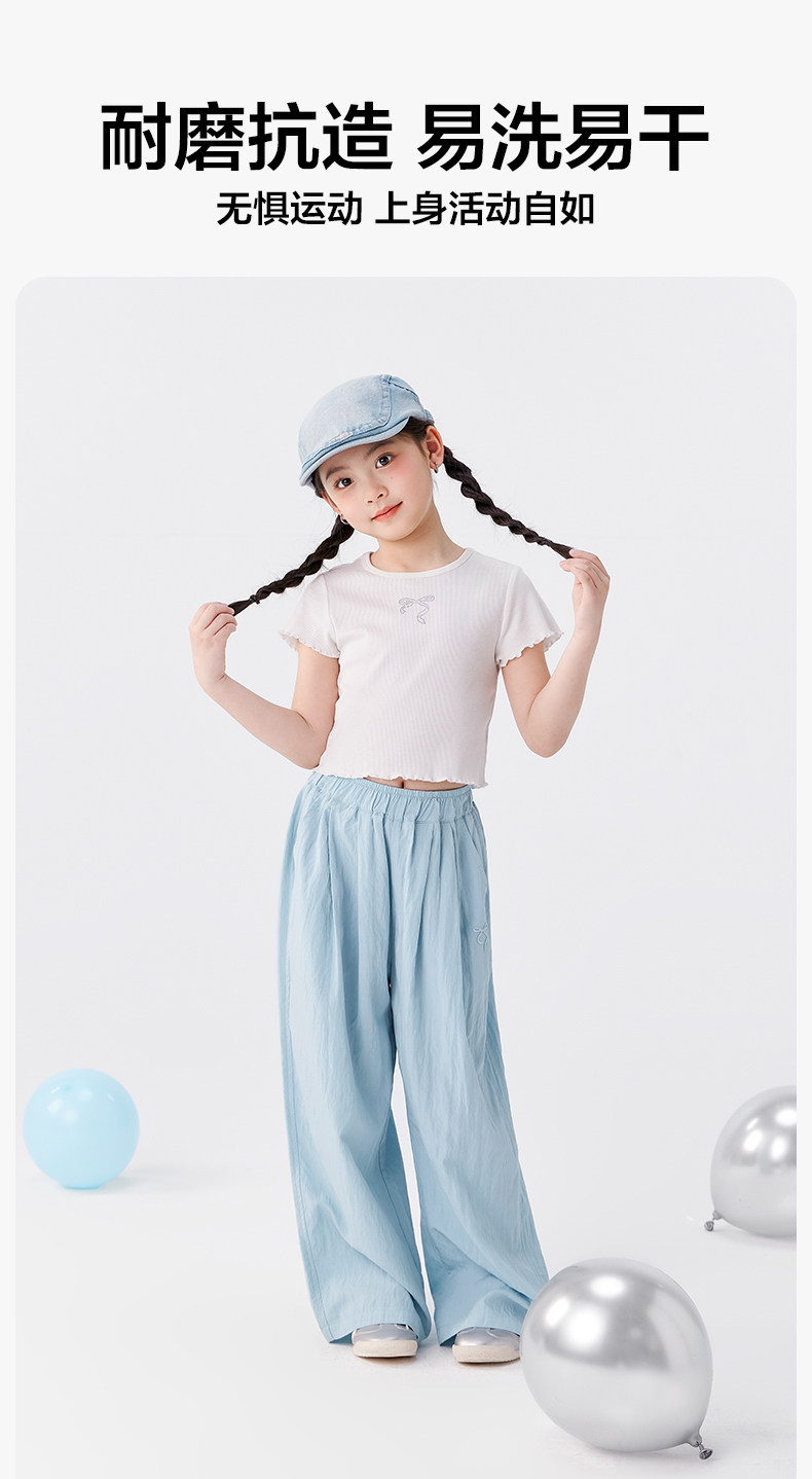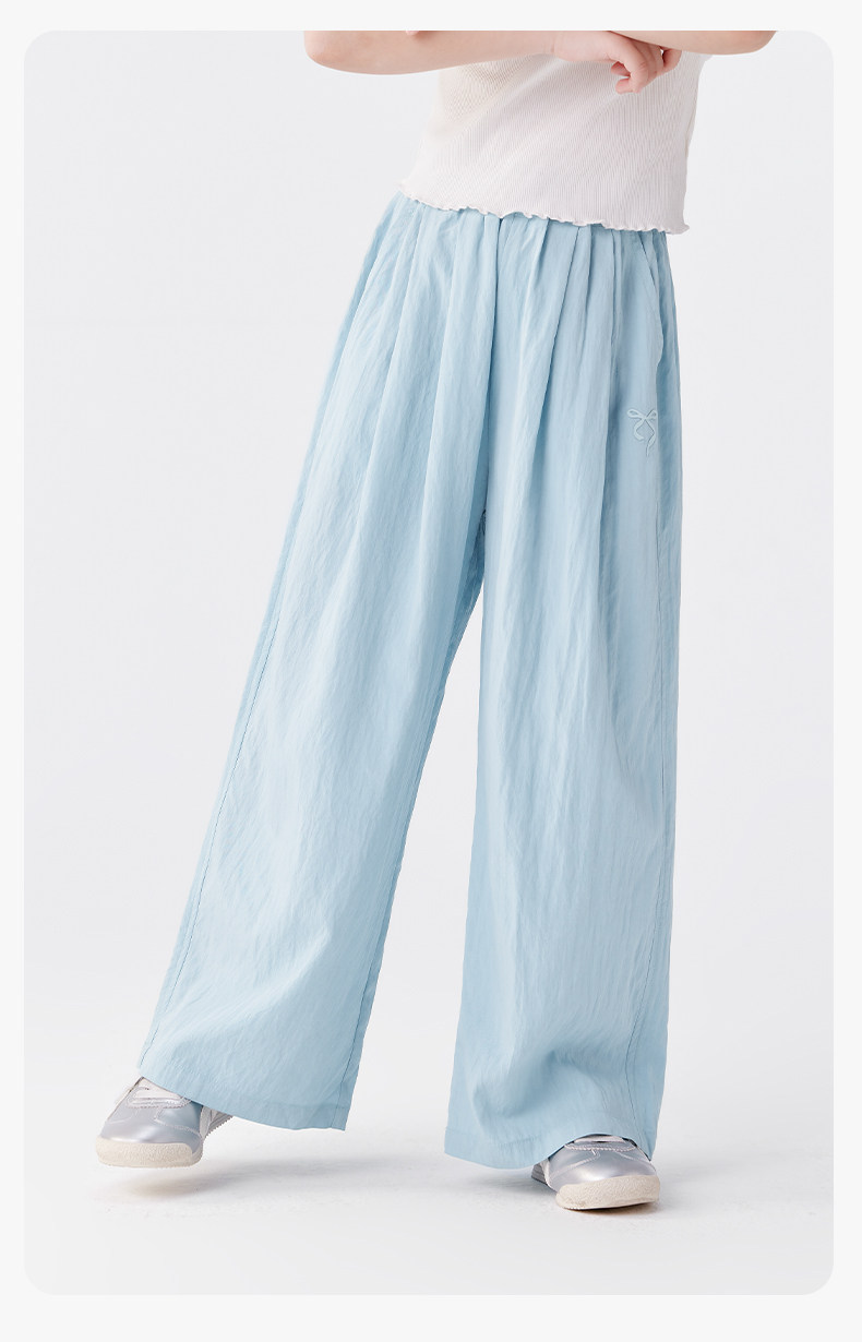 左西女童濶腿褲夏季涼感輕薄透氣防蚊褲2025新款兒童洋氣甜美褲子