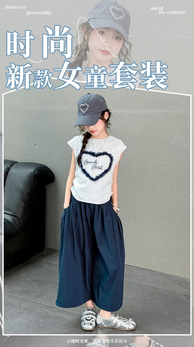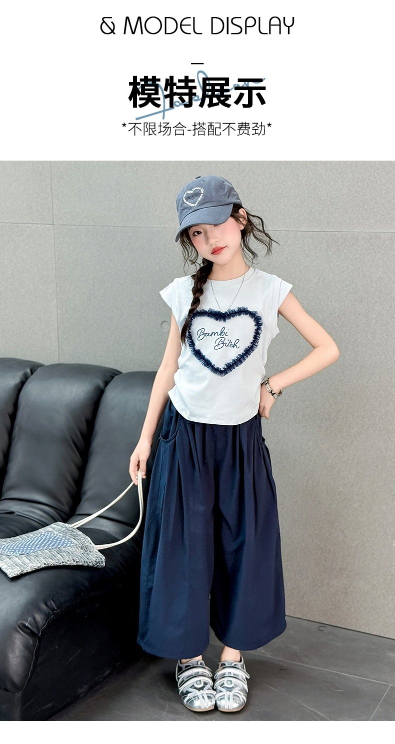 女童薄款褲子夏季新款時髦寬鬆濶腿褲女孩休閒百搭九分褲洋氣裙褲