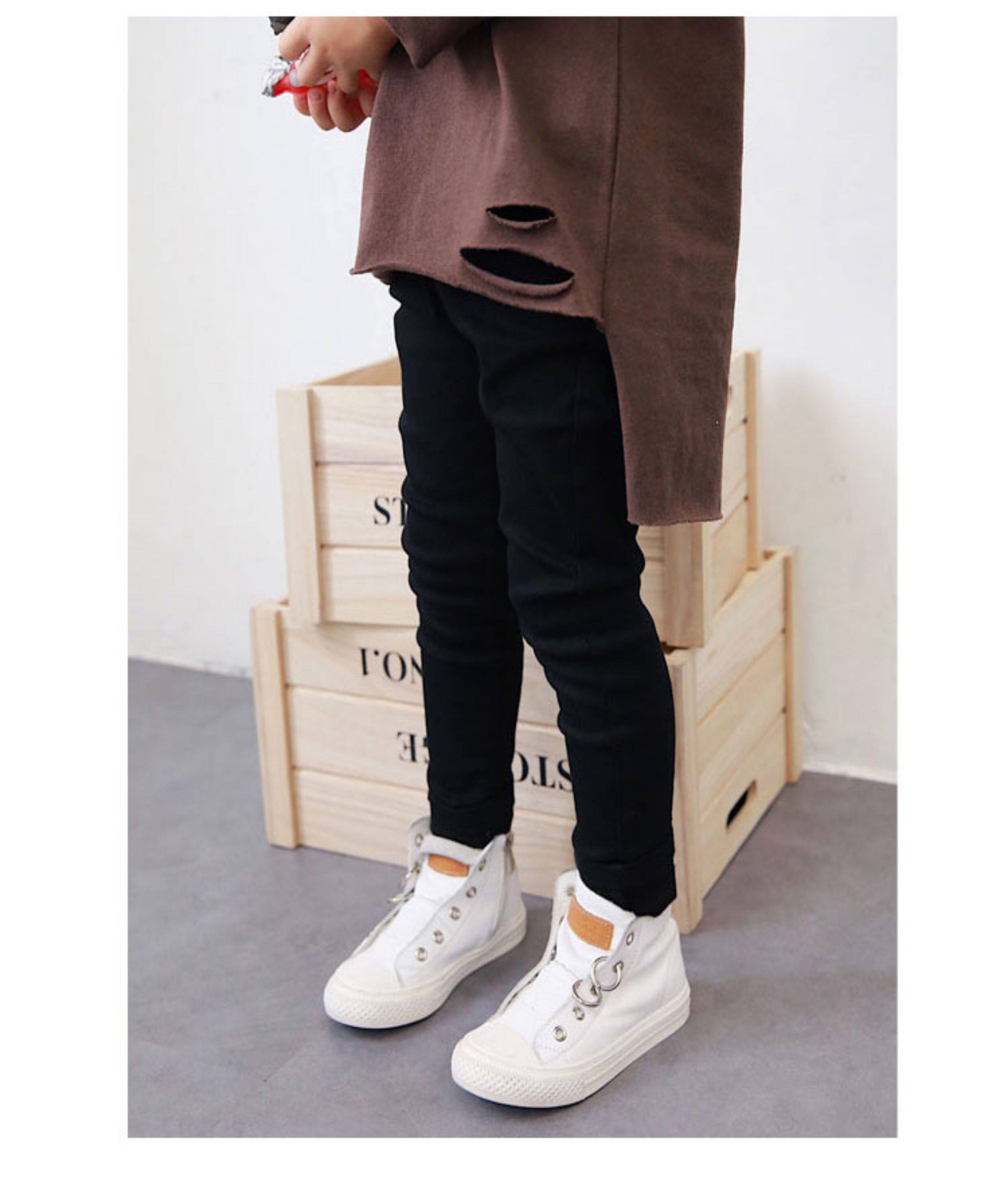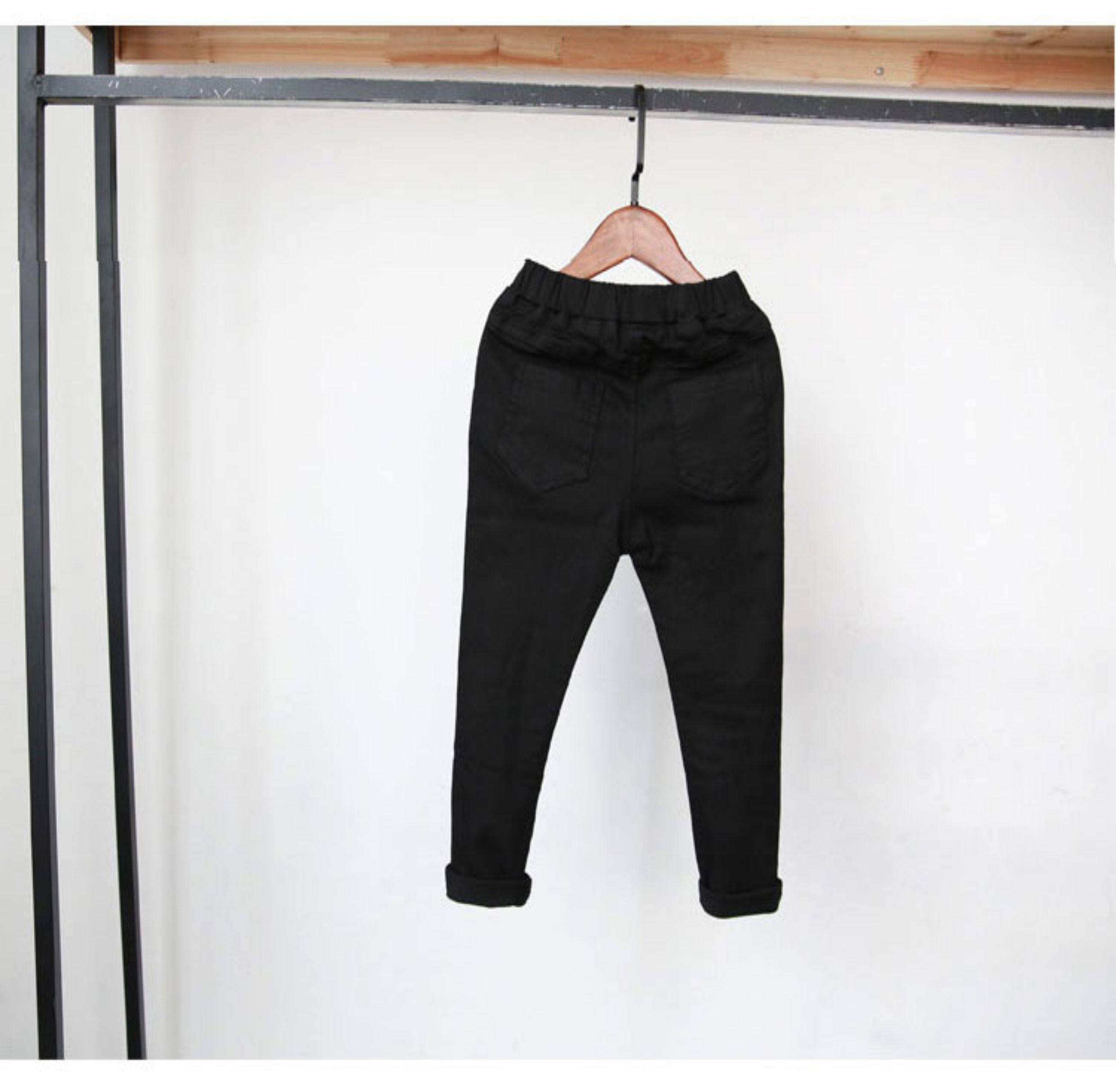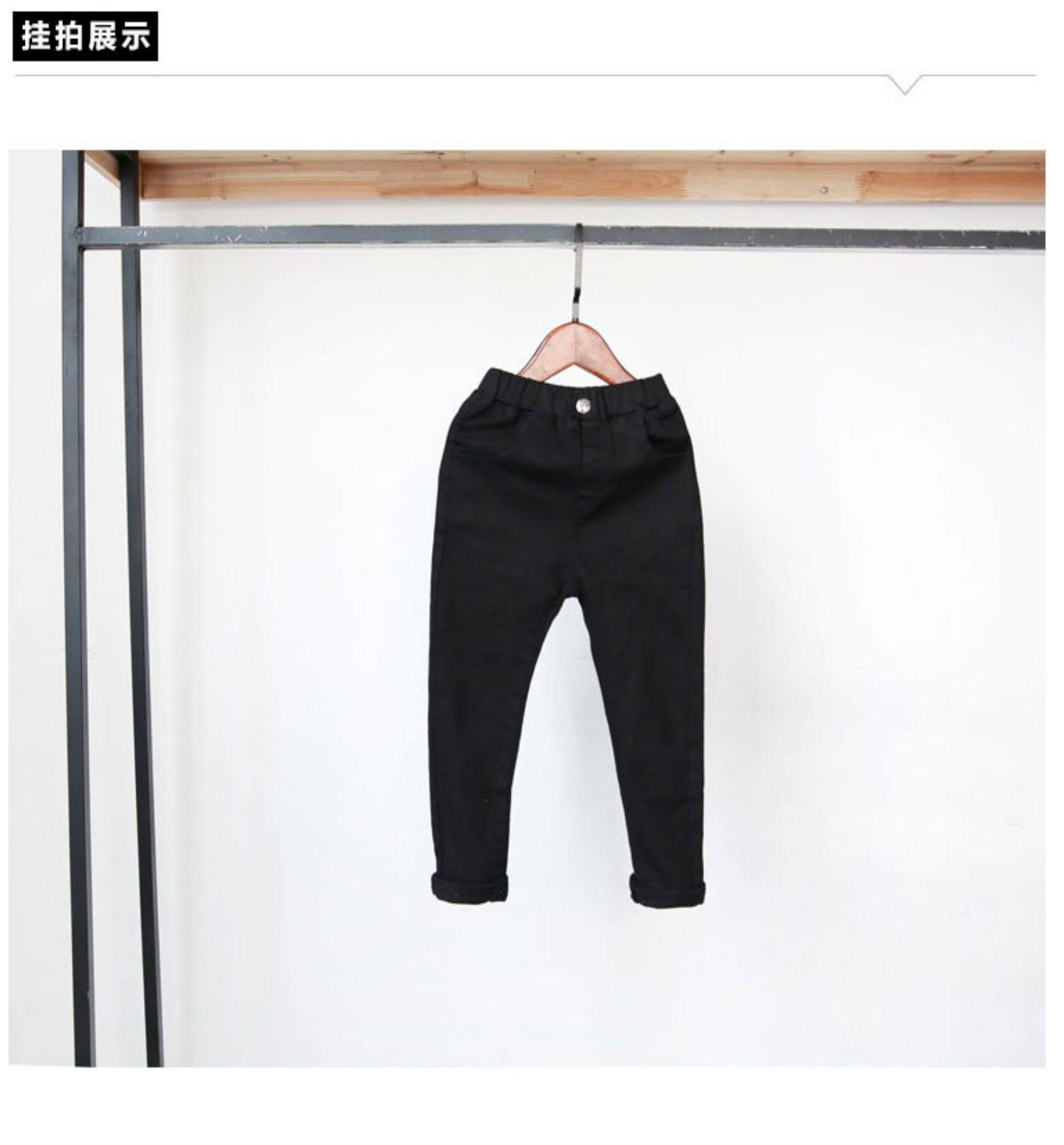 童裝2024春秋款男童牛仔褲兒童中大童修身小腳黑色一體加絨鉛筆褲