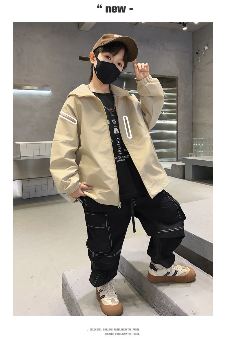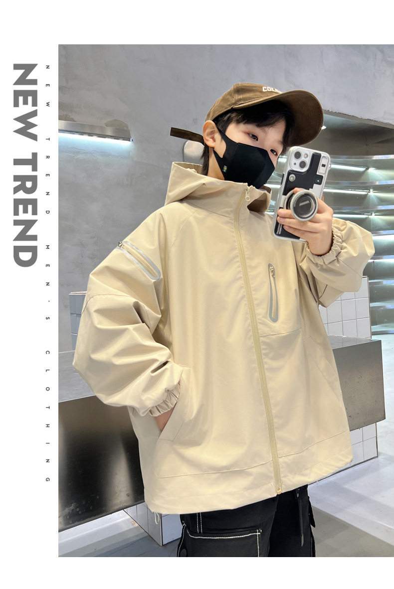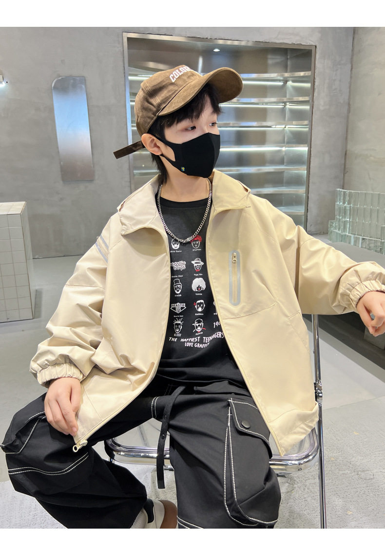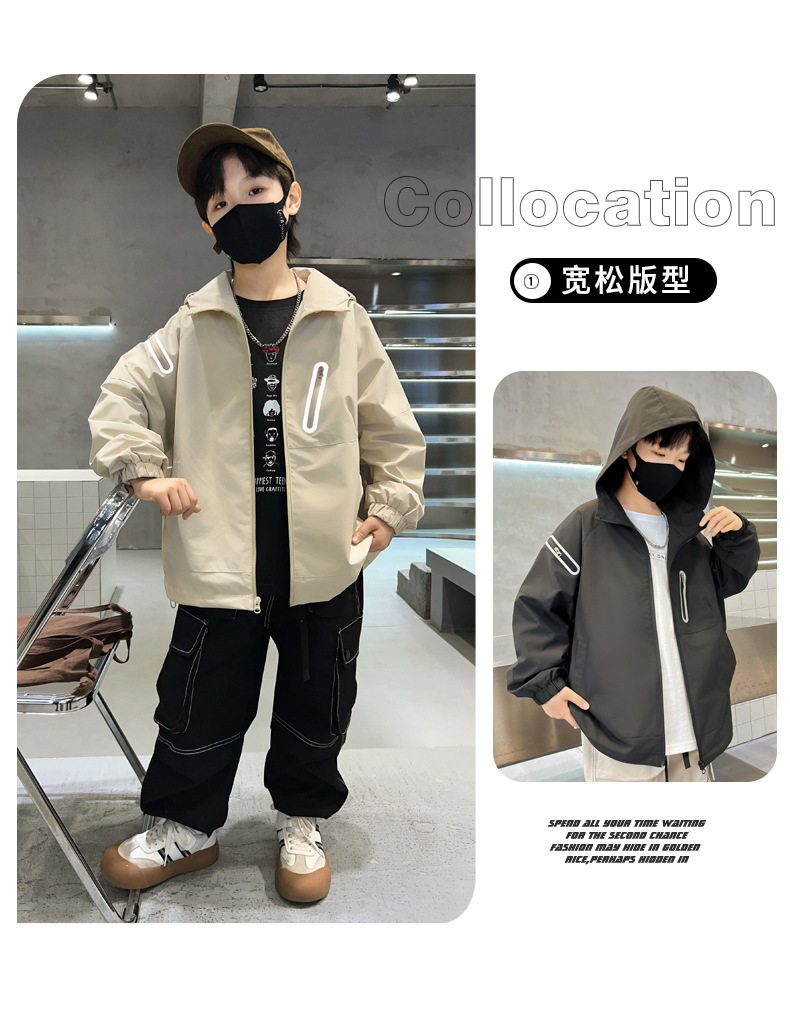 巴拉新品男童春秋裝沖鋒衣時髦中大兒童風衣外套春季炸街男孩上衣