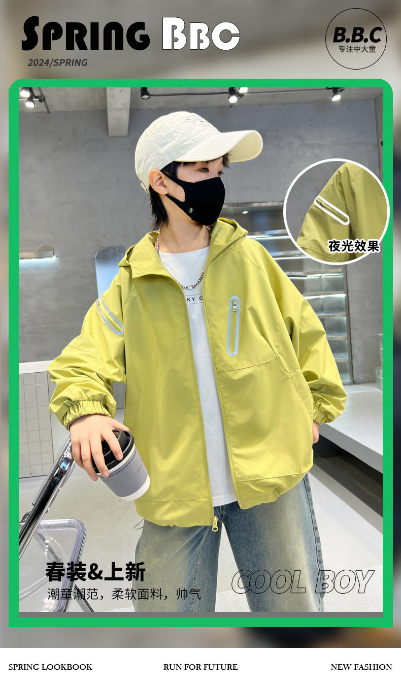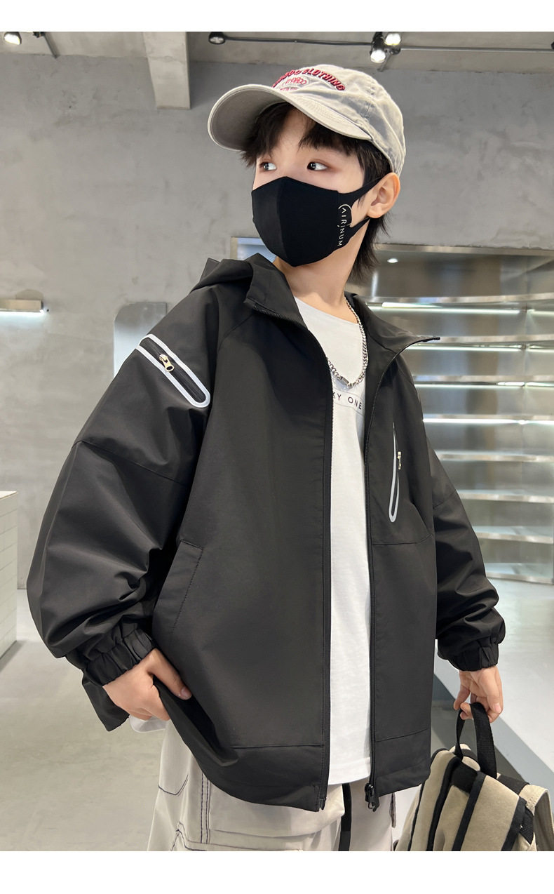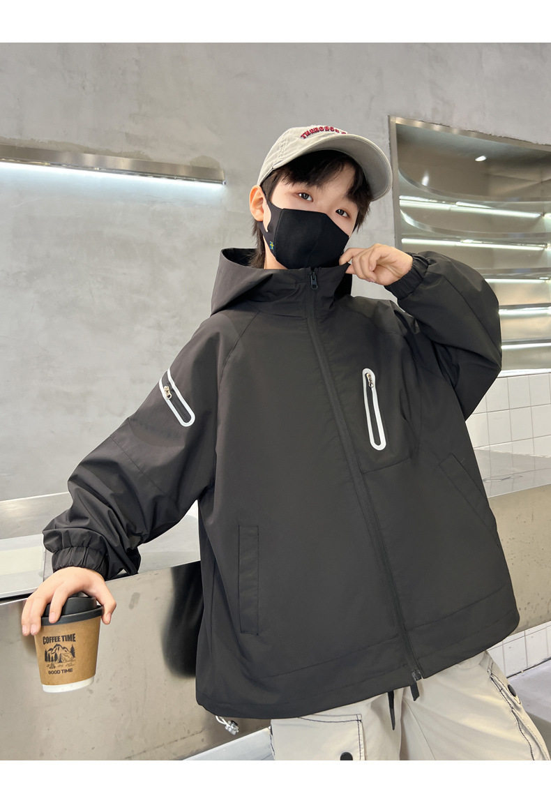 巴拉新品男童春秋裝沖鋒衣時髦中大兒童風衣外套春季炸街男孩上衣