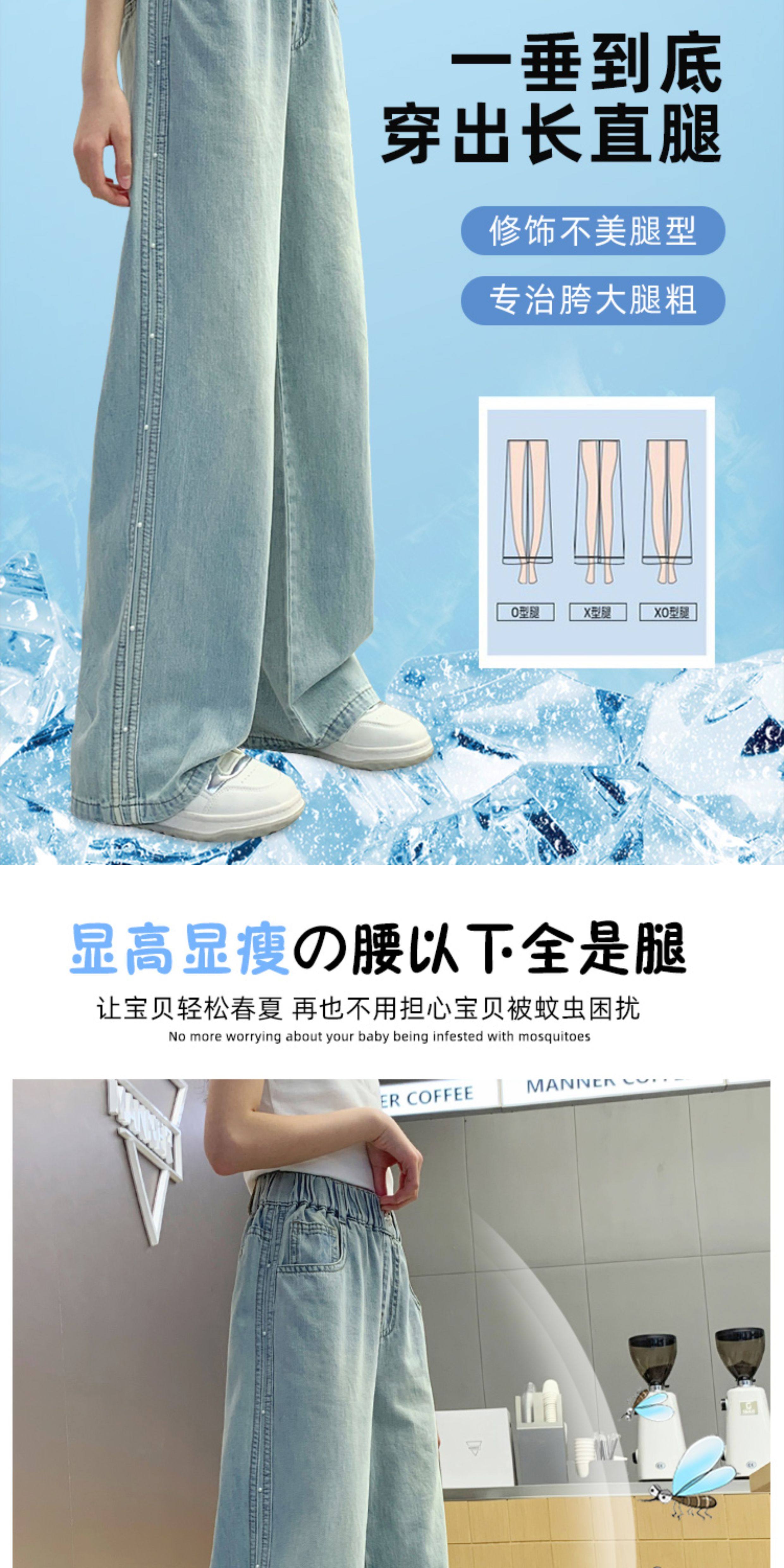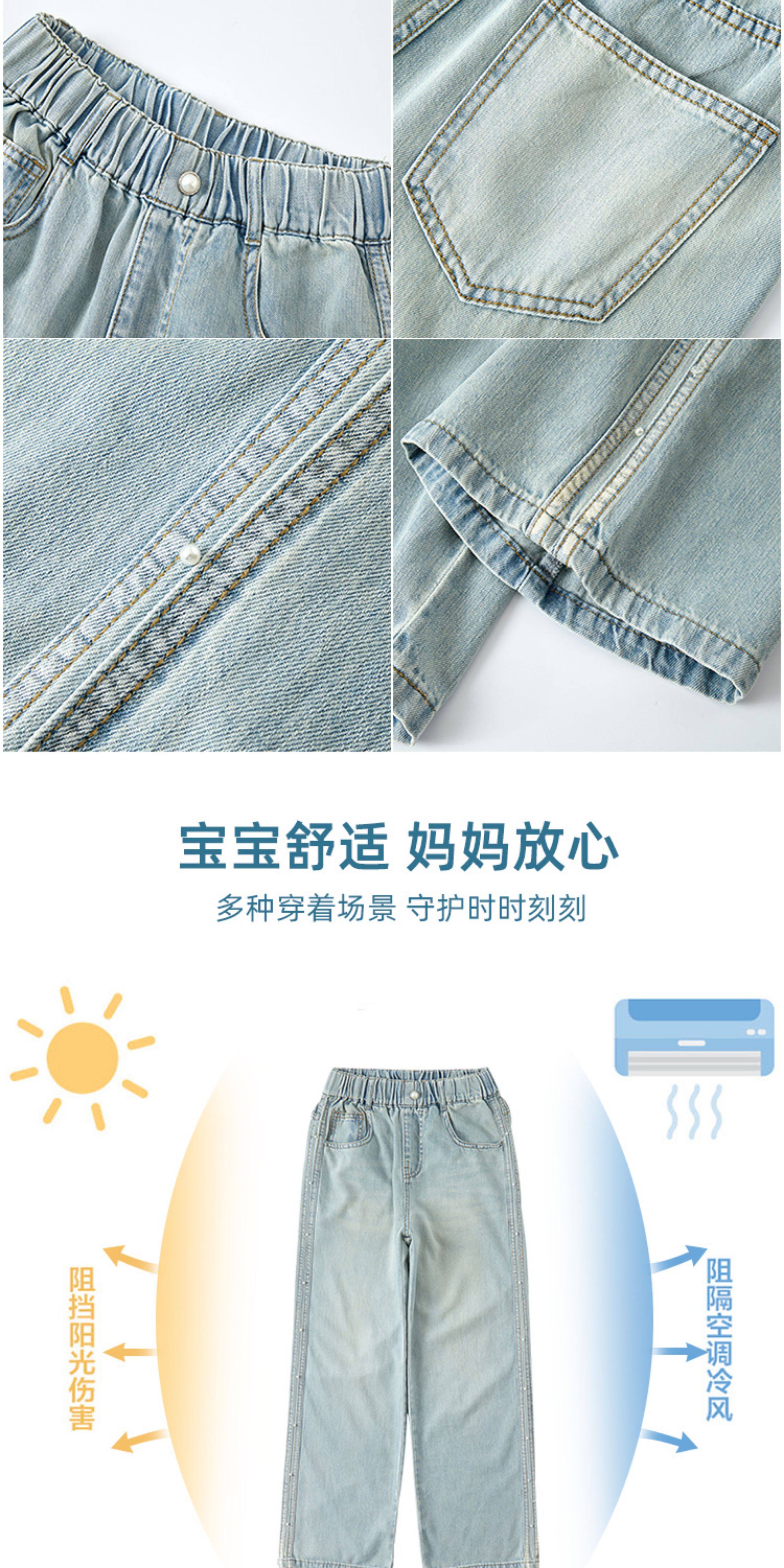 女童防蚊長褲牛仔女大童青少年初中生胖孩夏季新款2025兒童褲子薄