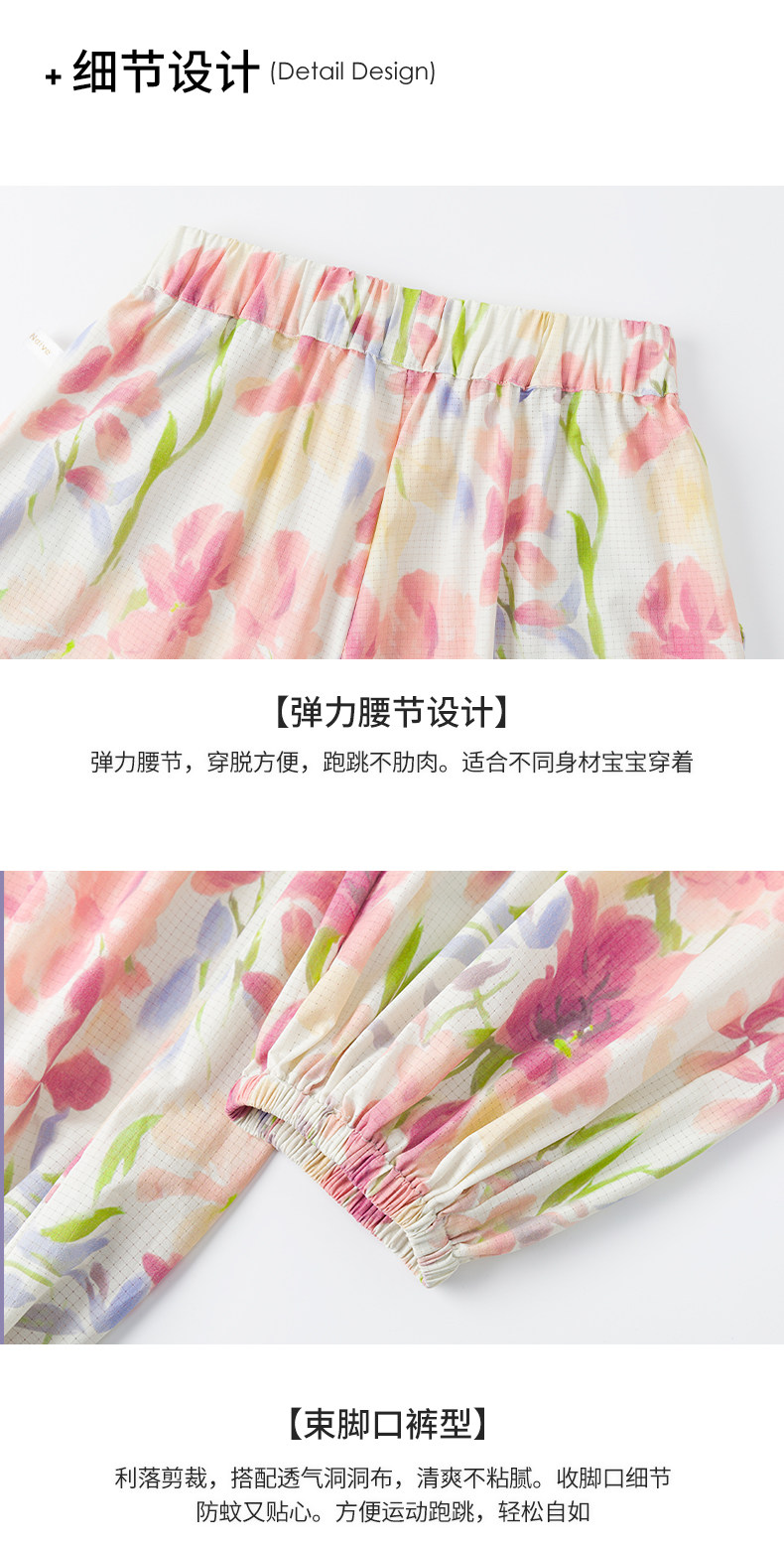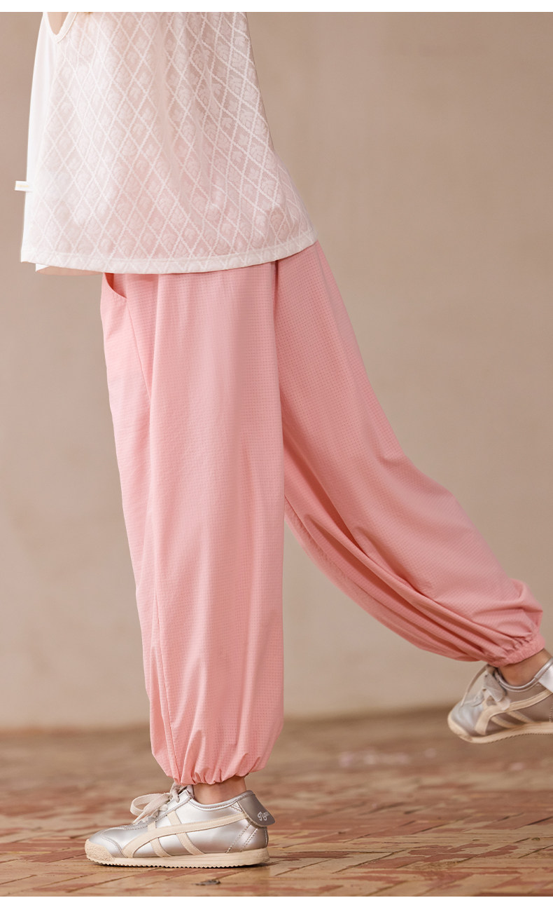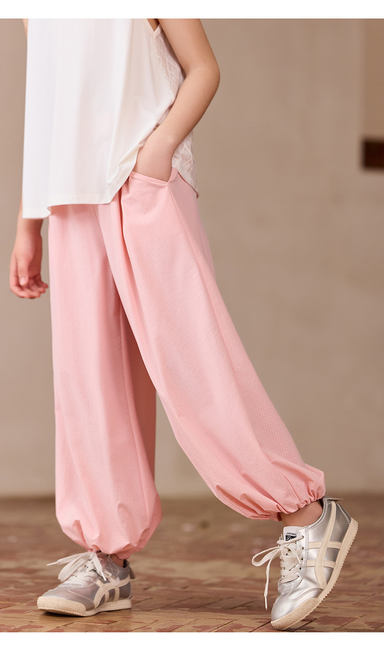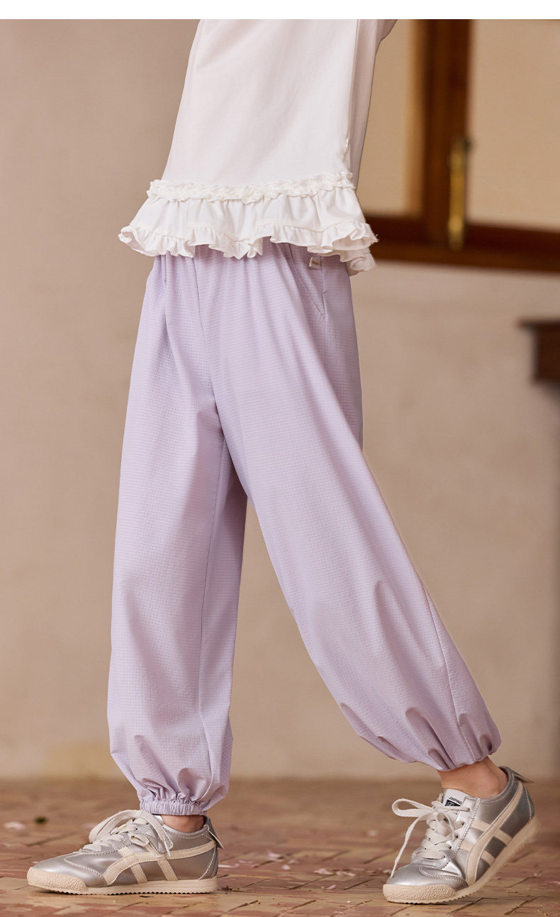 Little Naive女童百搭休閒褲春秋新款透氣防蚊褲兒童彈力束腳褲
