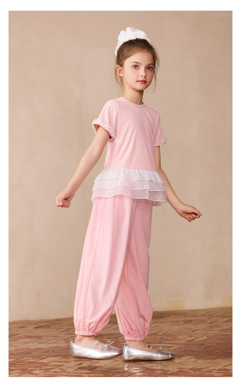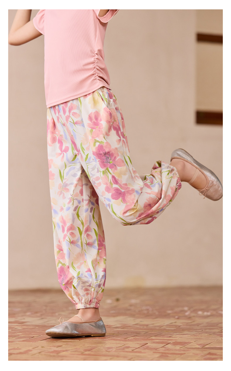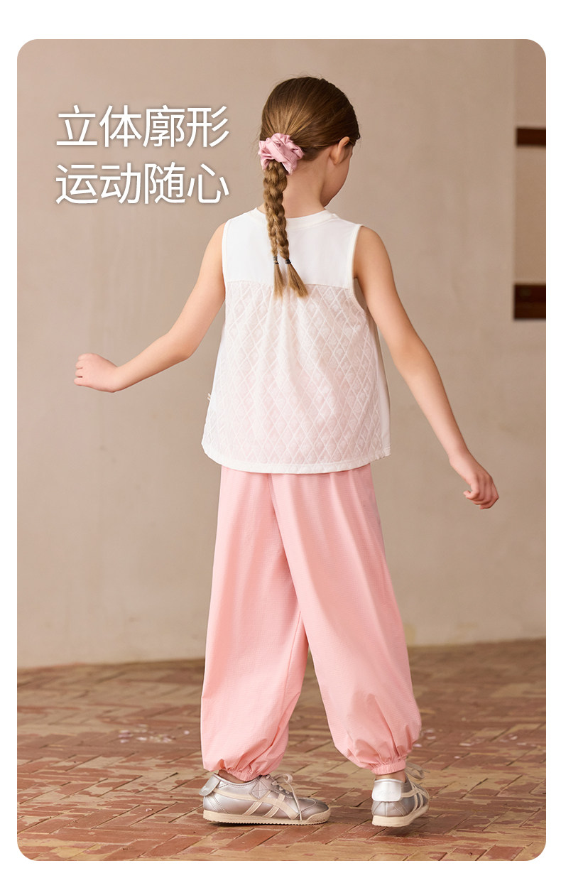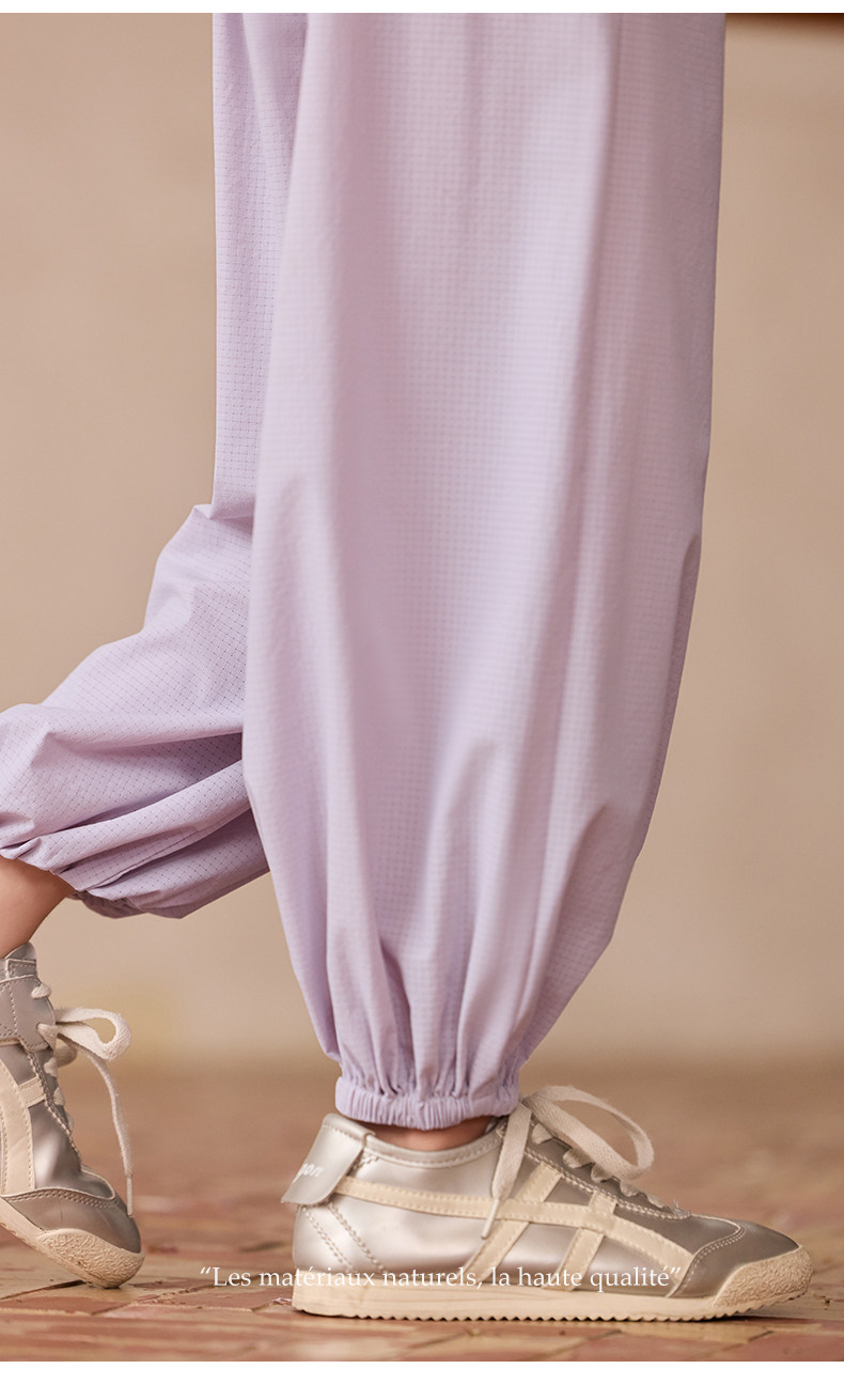 Little Naive女童百搭休閒褲春秋新款透氣防蚊褲兒童彈力束腳褲