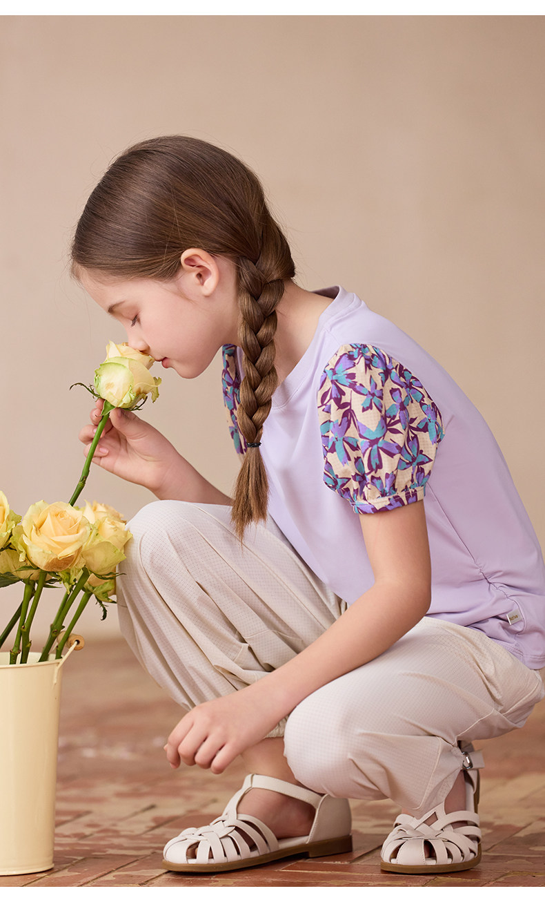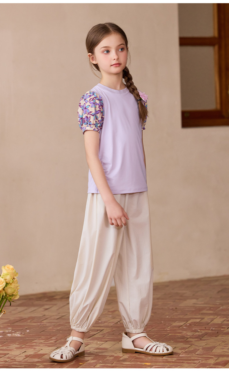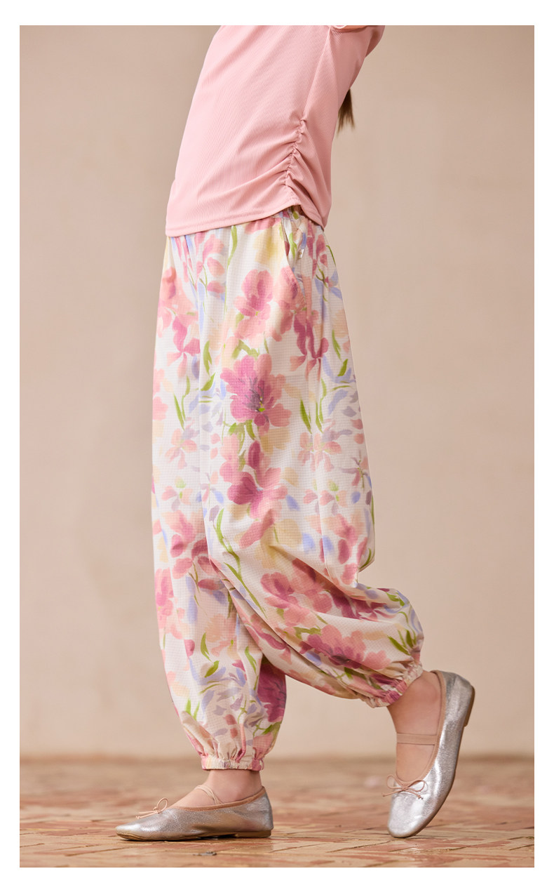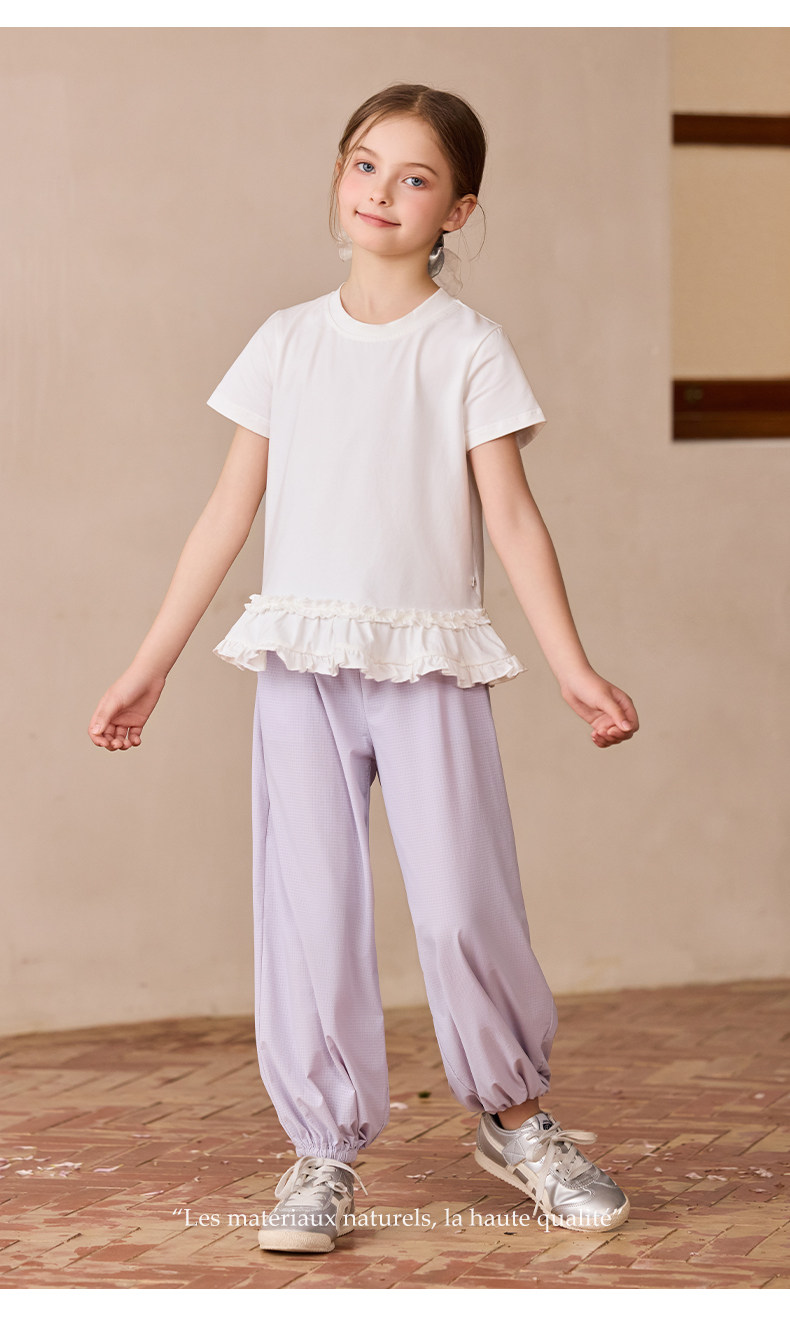 Little Naive女童百搭休閒褲春秋新款透氣防蚊褲兒童彈力束腳褲